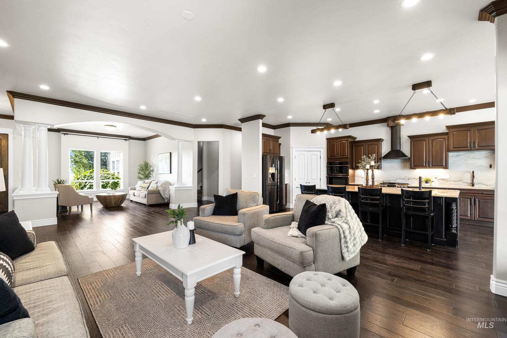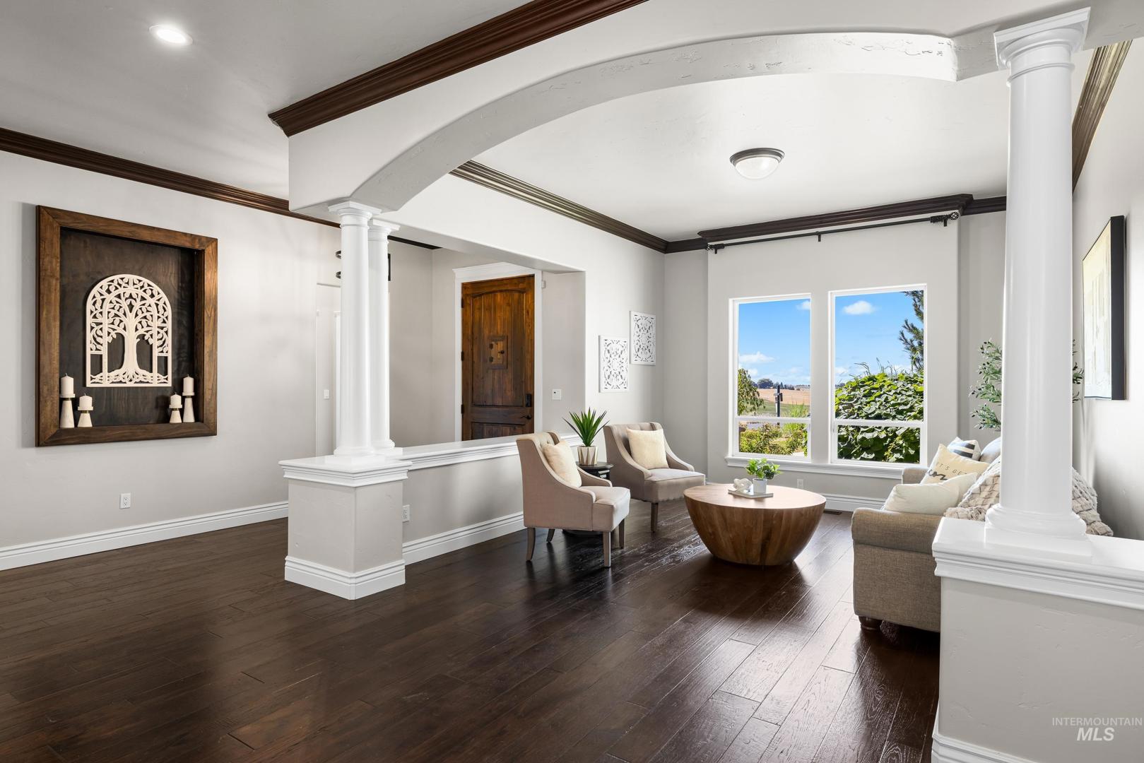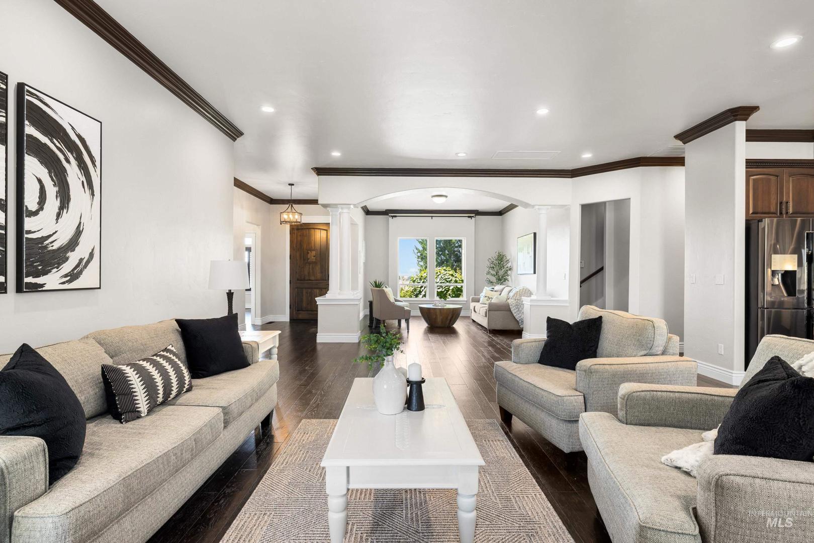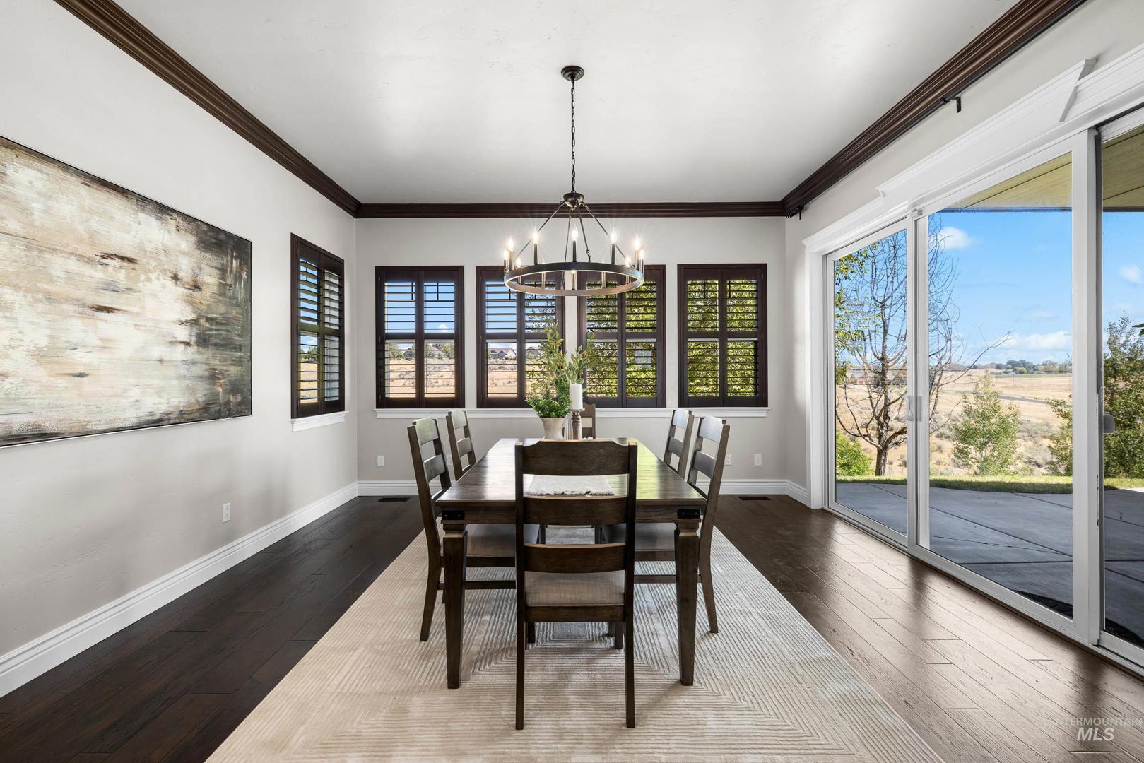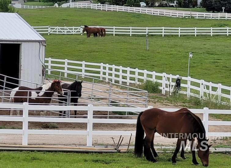 BRING YOUR HORSES! Nestled in the highly sought-after Hillsdale Estates, this beautifully remodeled home offers the perfect blend of luxury & tranquility. Situated on just over an acre, the property boasts breathtaking views & access to unparalleled neighborhood amenities, including an equestrian center with horse boarding currently at $68/month per stall, park, playing field, trails, public lands & fishing pond. The main level features a luxurious master ensuite, along with 3 additional bedrooms (or two plus office) & 2 bathrooms. The open-concept design seamlessly connects the gourmet kitchen, eating area, family room & versatile living or dining space. Upstairs features a HUGE bonus room, the 5th bedroom & full bath. Recent upgrades include engineered hardwood, custom kitchen with quartzite counters, upgraded appliances, baseboards, crown molding, modern lighting, refreshed guest bath & interior paint. Enjoy a spacious 3-car garage plus detached RV garage with bonus (convert to living space?).