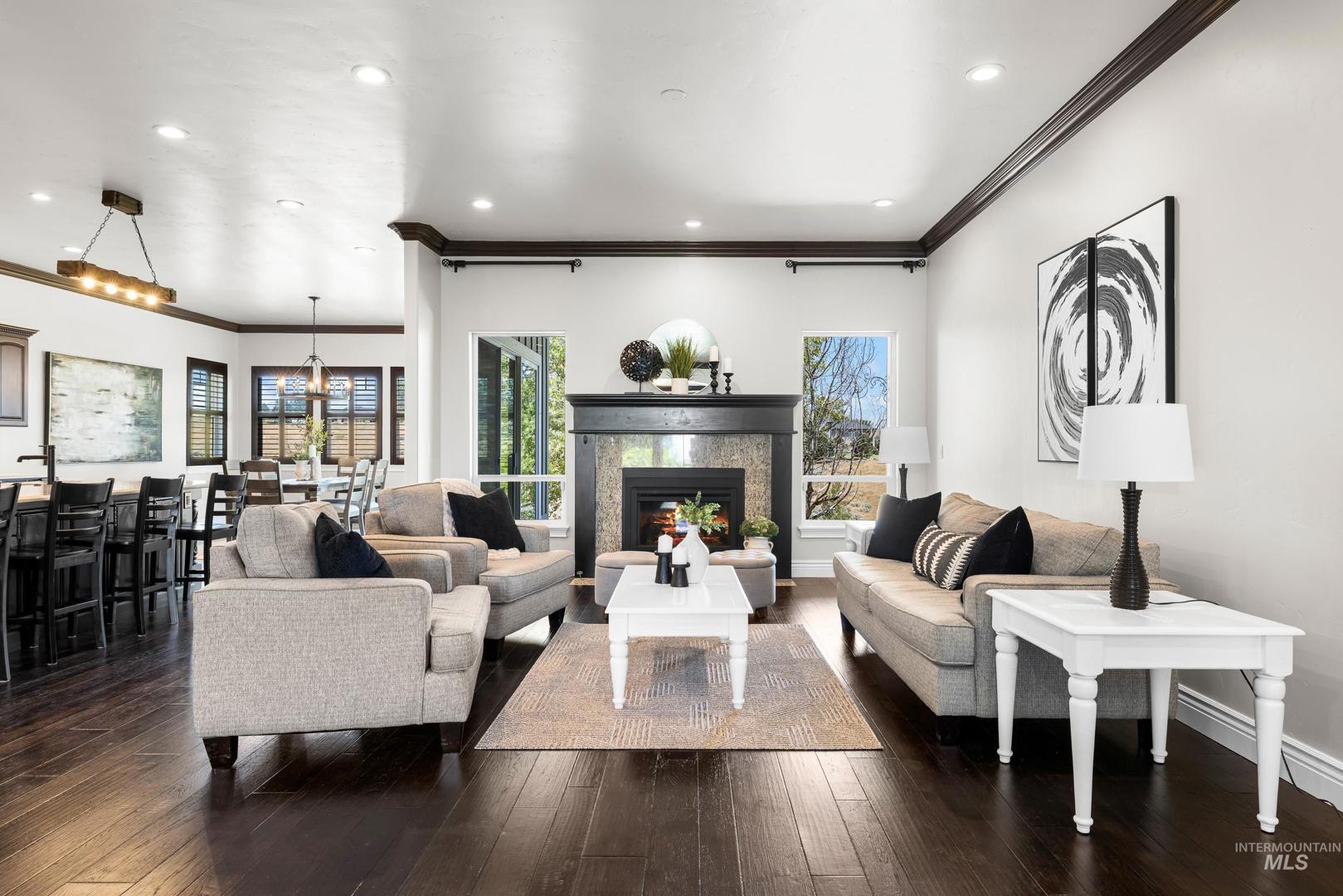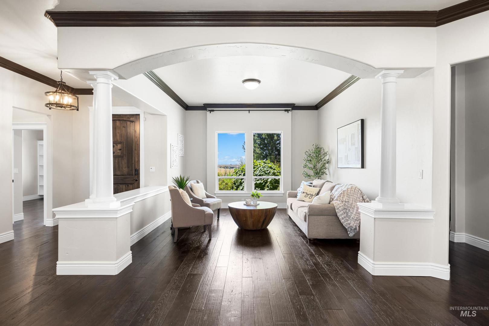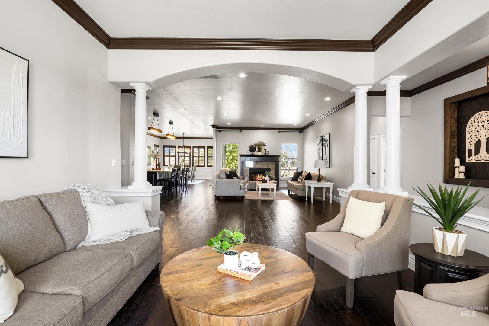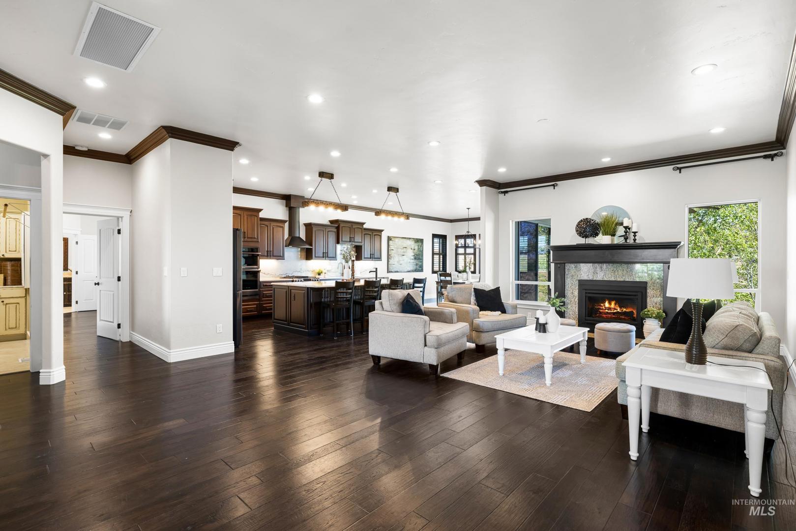 BRING YOUR HORSES! Nestled in the highly sought-after Hillsdale Estates, this beautifully remodeled home offers the perfect blend of luxury & tranquility. Situated on just over an acre, the property boasts breathtaking views & access to unparalleled neighborhood amenities, including an equestrian center with horse boarding currently at $68/month per stall, park, playing field, trails, public lands & fishing pond. The main level features a luxurious master ensuite, along with 3 additional bedrooms (or two plus office) & 2 bathrooms. The open-concept design seamlessly connects the gourmet kitchen, eating area, family room & versatile living or dining space. Upstairs features a HUGE bonus room, the 5th bedroom & full bath. Recent upgrades include engineered hardwood, custom kitchen with quartzite counters, upgraded appliances, baseboards, crown molding, modern lighting, refreshed guest bath & interior paint. Enjoy a spacious 3-car garage plus detached RV garage with bonus (convert to living space?).