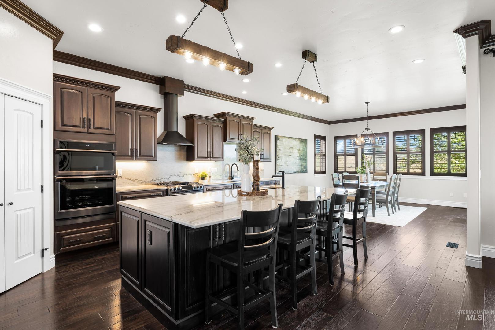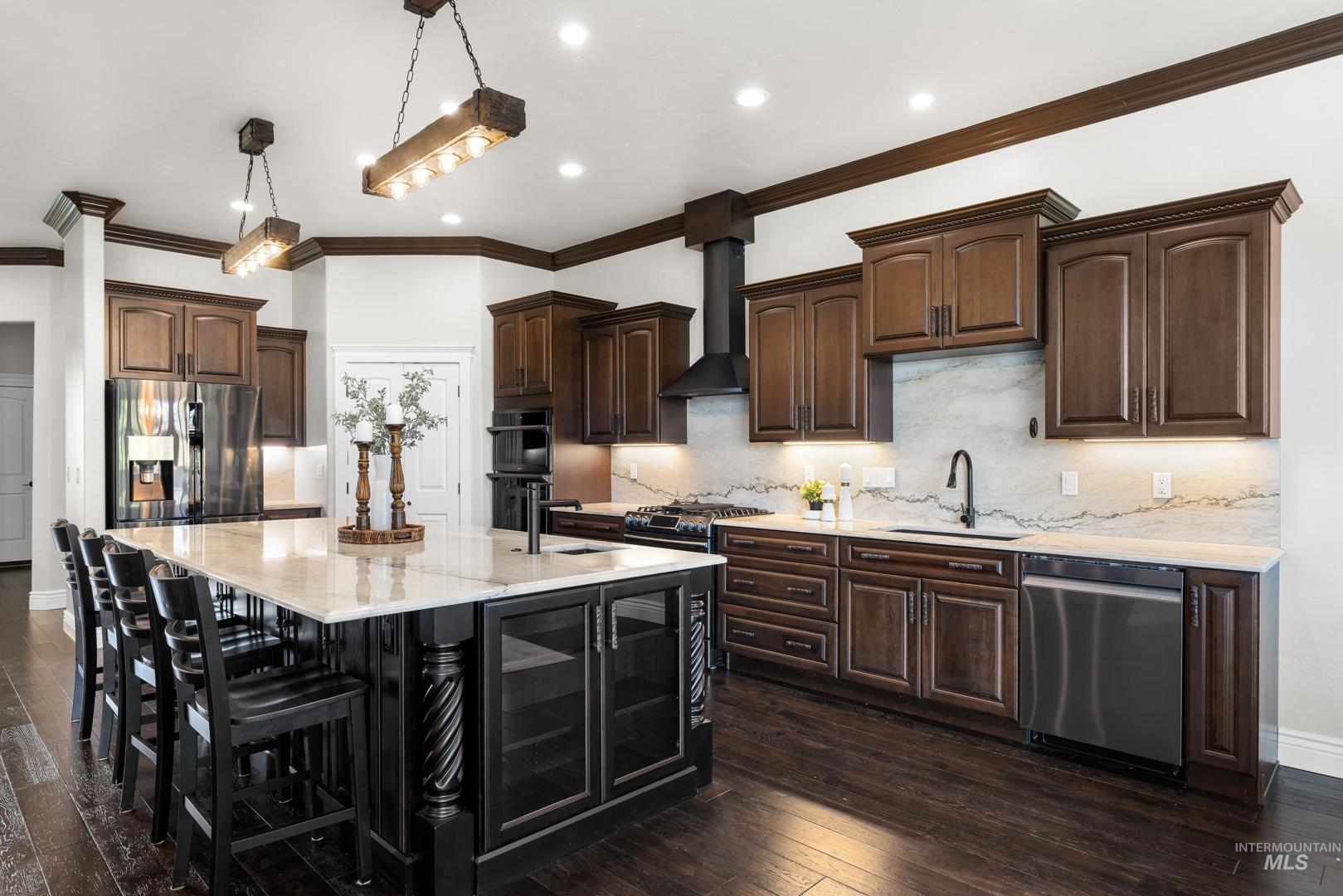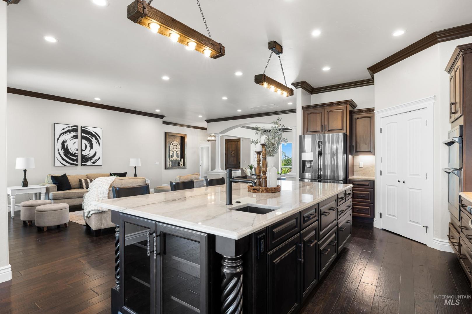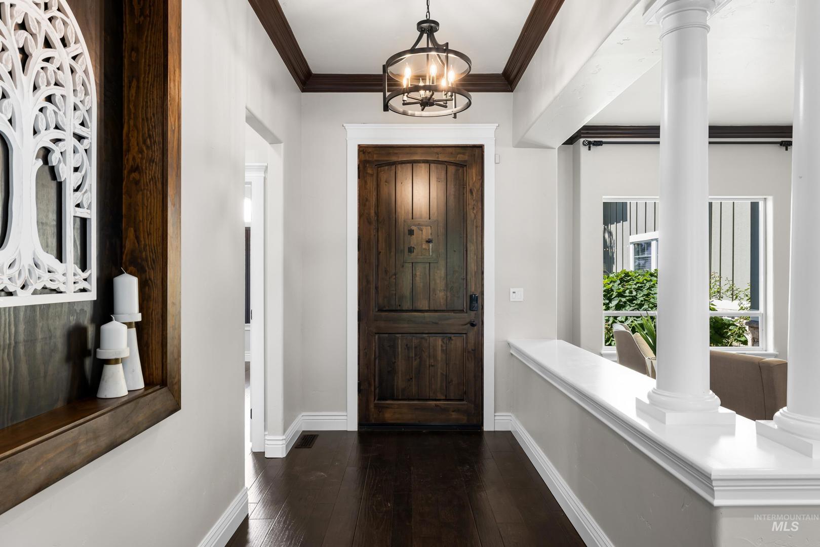 BRING YOUR HORSES! Nestled in the highly sought-after Hillsdale Estates, this beautifully remodeled home offers the perfect blend of luxury & tranquility. Situated on just over an acre, the property boasts breathtaking views & access to unparalleled neighborhood amenities, including an equestrian center with horse boarding currently at $68/month per stall, park, playing field, trails, public lands & fishing pond. The main level features a luxurious master ensuite, along with 3 additional bedrooms (or two plus office) & 2 bathrooms. The open-concept design seamlessly connects the gourmet kitchen, eating area, family room & versatile living or dining space. Upstairs features a HUGE bonus room, the 5th bedroom & full bath. Recent upgrades include engineered hardwood, custom kitchen with quartzite counters, upgraded appliances, baseboards, crown molding, modern lighting, refreshed guest bath & interior paint. Enjoy a spacious 3-car garage plus detached RV garage with bonus (convert to living space?).