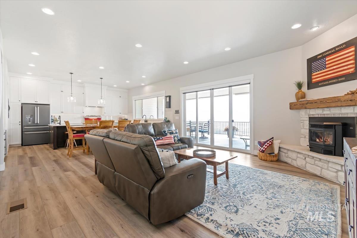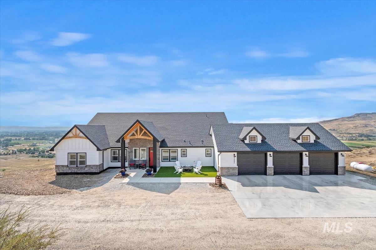 Soak in breathtaking sunset views from this like-new 2022 custom home, perfectly set on 5.15 private hillside acres. An expansive covered deck with a built-in outdoor kitchen creates the ultimate space for entertaining against a stunning backdrop. Inside, high-end finishes shine throughout the 4-bedroom, 3.5-bath plus office design, featuring a gourmet kitchen with a large island, butler`s pantry and an additional wall oven. The luxurious primary suite offers a custom steam shower, while a whole-house fan, tankless water heater and massive insulated storage below add comfort and convenience. Move-in ready and designed for both elegance and everyday living, this home is truly one of a kind!