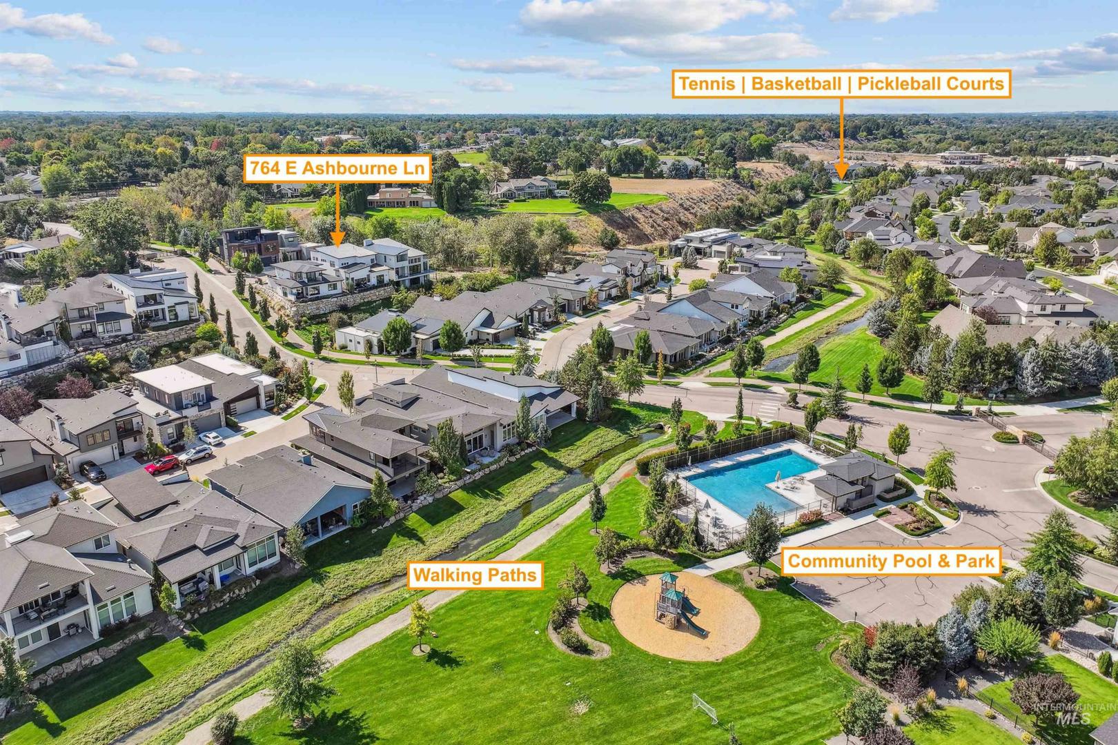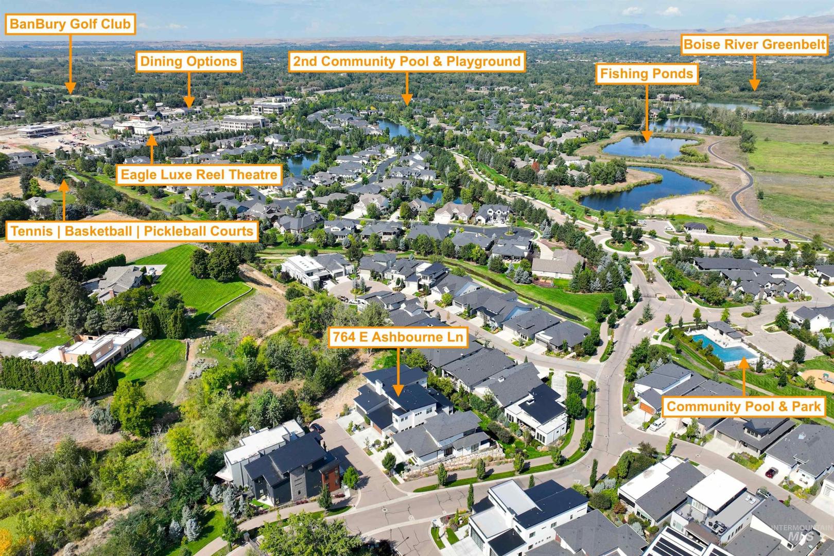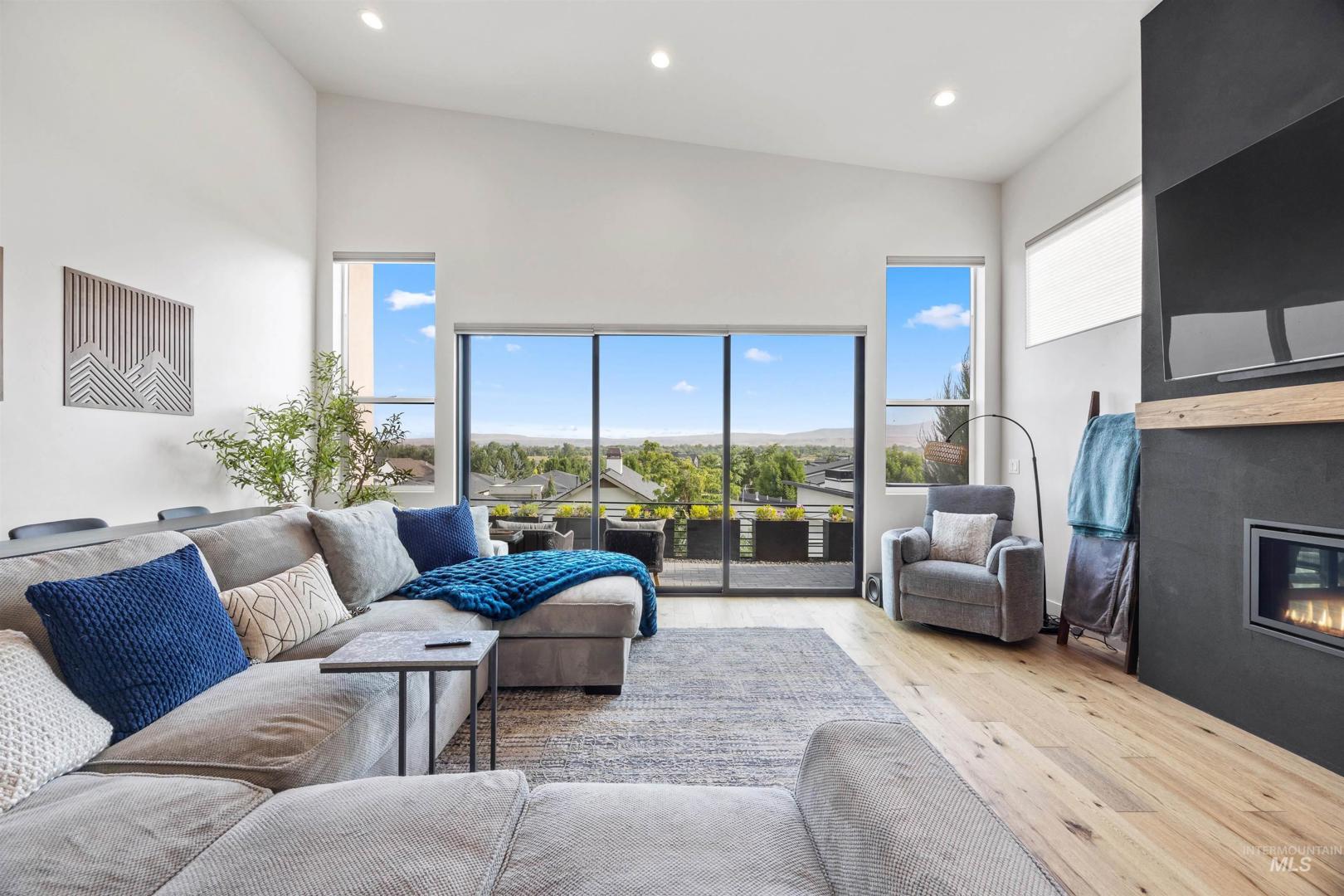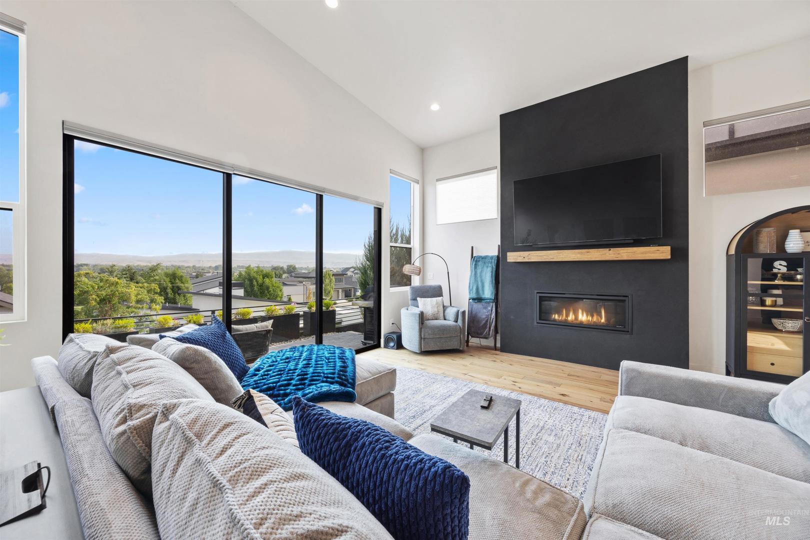Exquisite 4BD/3.5BA, 2,835 sq ft home in a gated Eagle community with stunning mountain & foothill views. Main-level master retreat offers comfort & privacy, while the great room features expansive stacking sliders that open to a patio with fireplace & BBQ area for seamless indoor-outdoor living. Chef’s kitchen showcases a unique horseshoe-shaped island & premium Fisher & Paykel appliance package. The 3-car garage includes epoxy floors, cabinetry, 220V power & a mini-split for year-round use. Flexible spaces are designed for entertaining & everyday comfort. Enjoy direct community access to the Boise Greenbelt, plus 2 pools, tennis & pickleball courts, lush parks & walking paths. Centered in a prime location near upscale dining, shopping & conveniences, this home blends luxury & lifestyle in one of Eagle’s most sought-after neighborhoods.