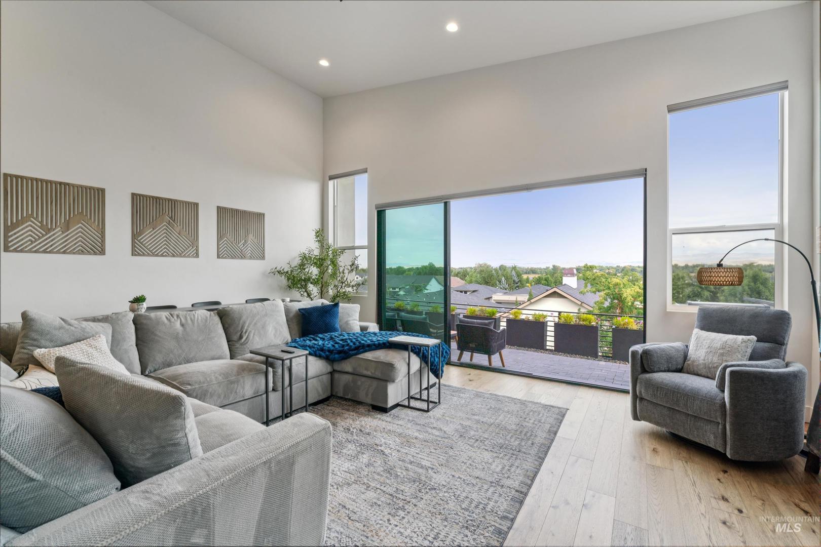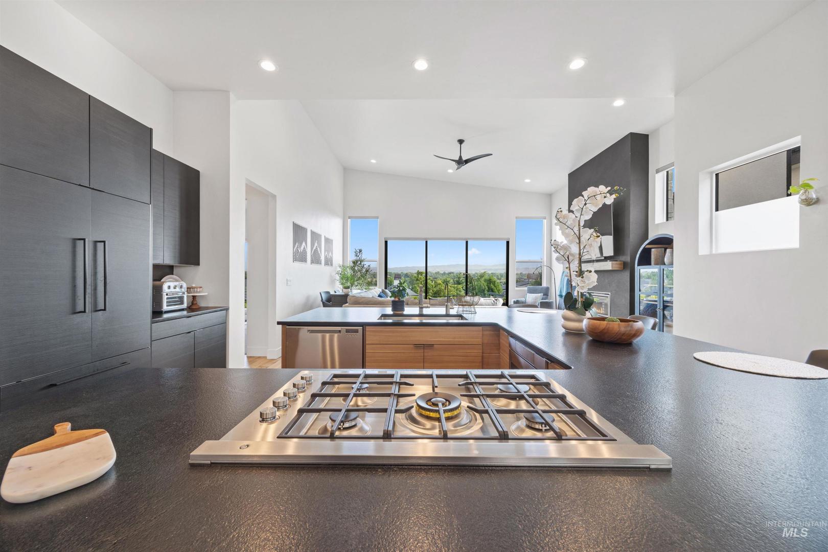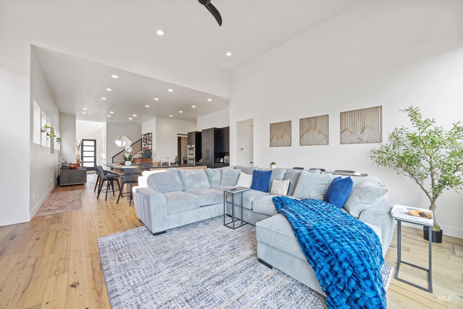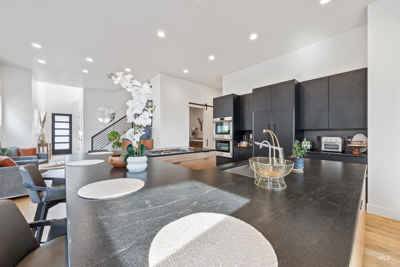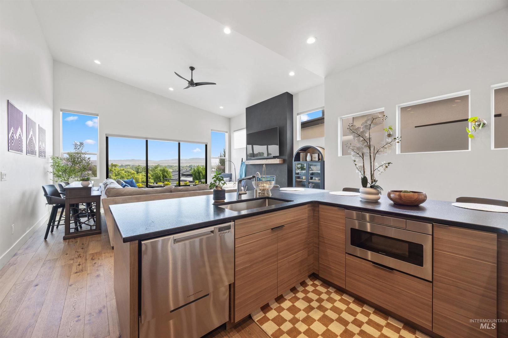Exquisite 4BD/3.5BA, 2,835 sq ft home in a gated Eagle community with stunning mountain & foothill views. Main-level master retreat offers comfort & privacy, while the great room features expansive stacking sliders that open to a patio with fireplace & BBQ area for seamless indoor-outdoor living. Chef’s kitchen showcases a unique horseshoe-shaped island & premium Fisher & Paykel appliance package. The 3-car garage includes epoxy floors, cabinetry, 220V power & a mini-split for year-round use. Flexible spaces are designed for entertaining & everyday comfort. Enjoy direct community access to the Boise Greenbelt, plus 2 pools, tennis & pickleball courts, lush parks & walking paths. Centered in a prime location near upscale dining, shopping & conveniences, this home blends luxury & lifestyle in one of Eagle’s most sought-after neighborhoods.
