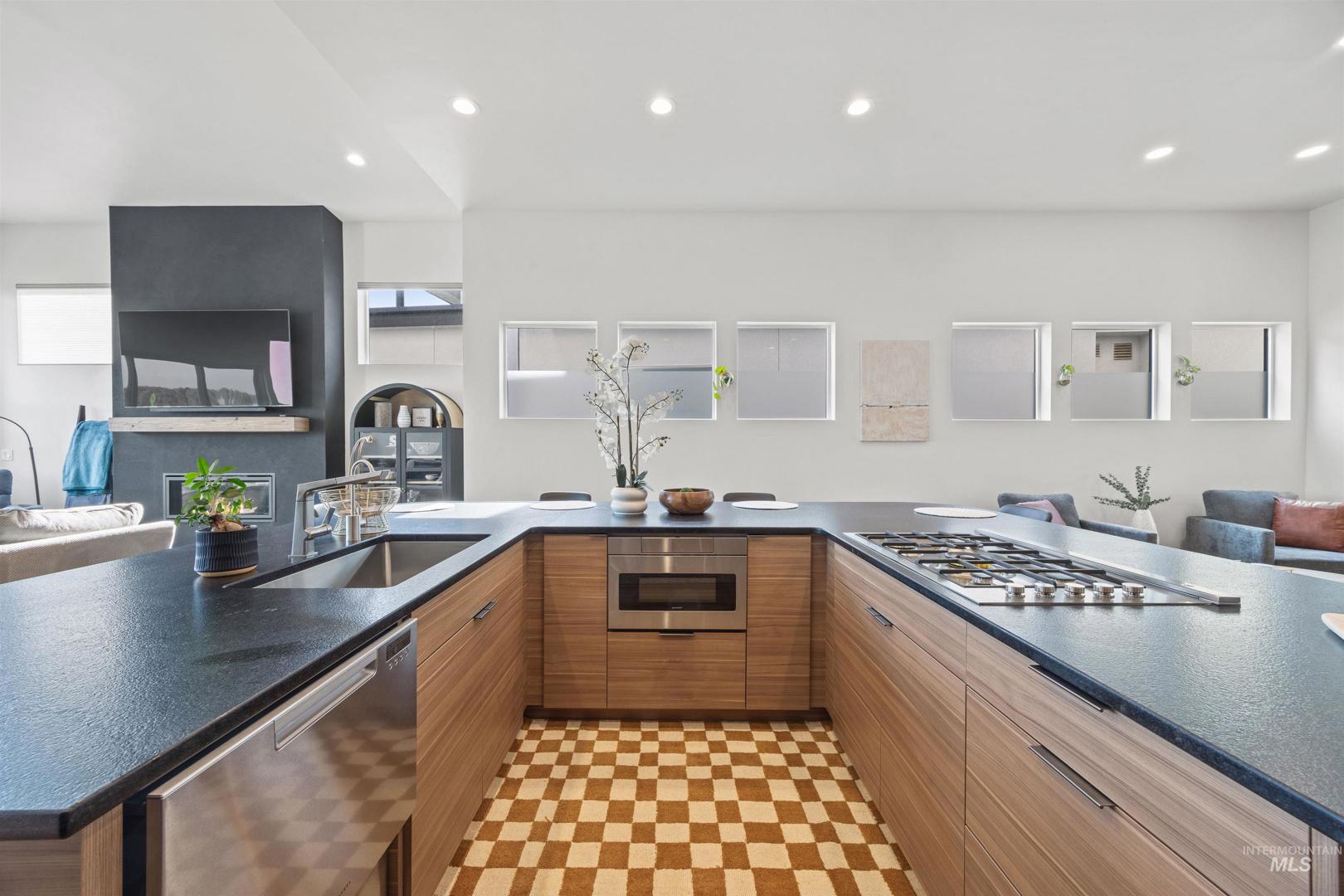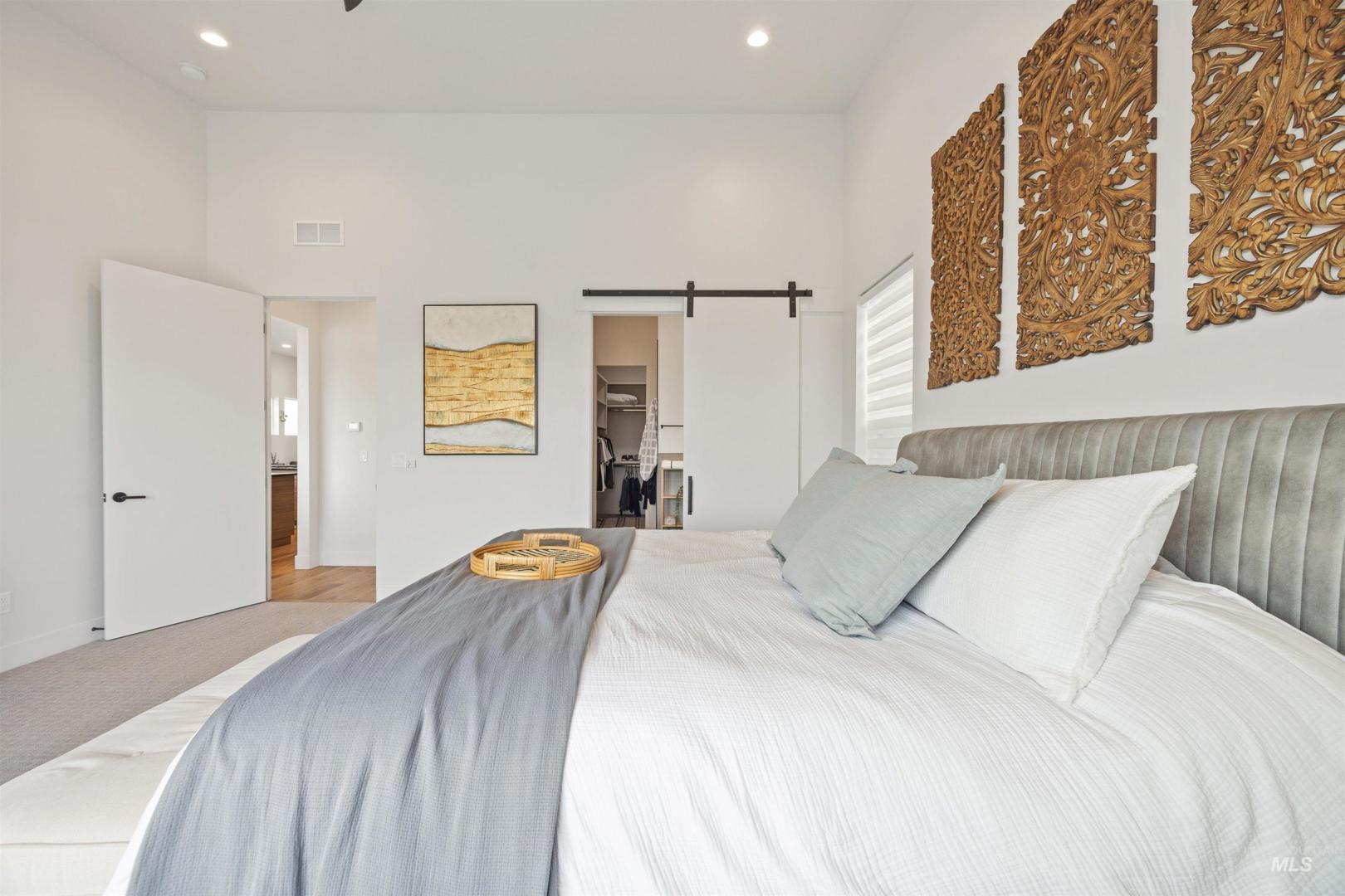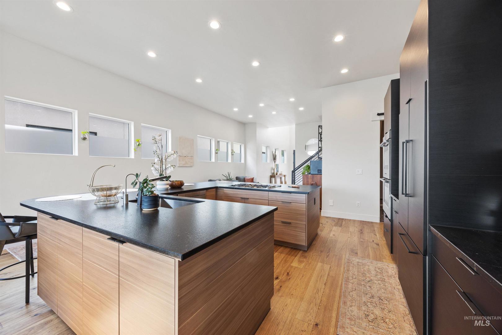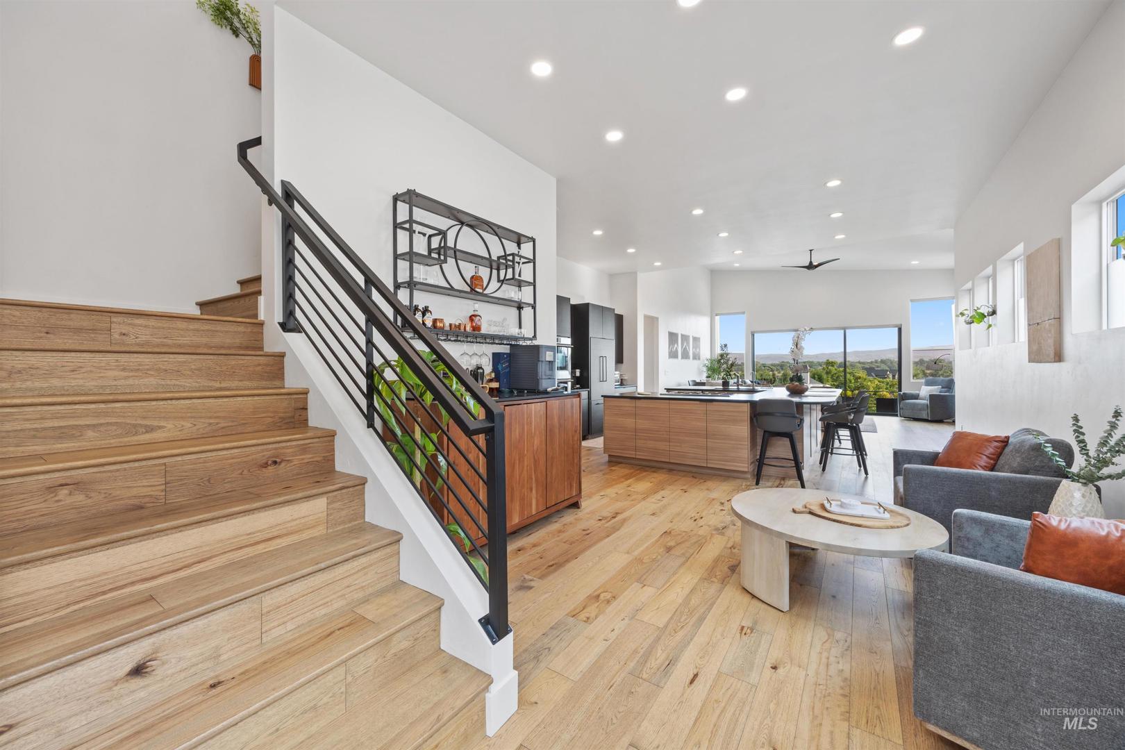 Exquisite 4BD/3.5BA, 2,835 sq ft home in a gated Eagle community with stunning mountain & foothill views. Main-level master retreat offers comfort & privacy, while the great room features expansive stacking sliders that open to a patio with fireplace & BBQ area for seamless indoor-outdoor living. Chef’s kitchen showcases a unique horseshoe-shaped island & premium Fisher & Paykel appliance package. The 3-car garage includes epoxy floors, cabinetry, 220V power & a mini-split for year-round use. Flexible spaces are designed for entertaining & everyday comfort. Enjoy direct community access to the Boise Greenbelt, plus 2 pools, tennis & pickleball courts, lush parks & walking paths. Centered in a prime location near upscale dining, shopping & conveniences, this home blends luxury & lifestyle in one of Eagle’s most sought-after neighborhoods.