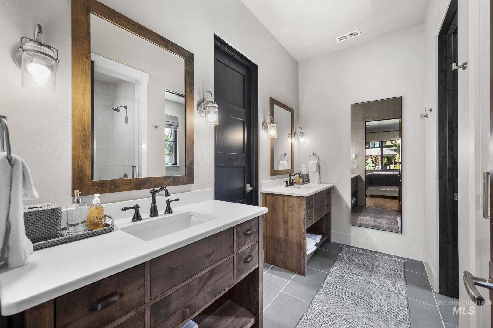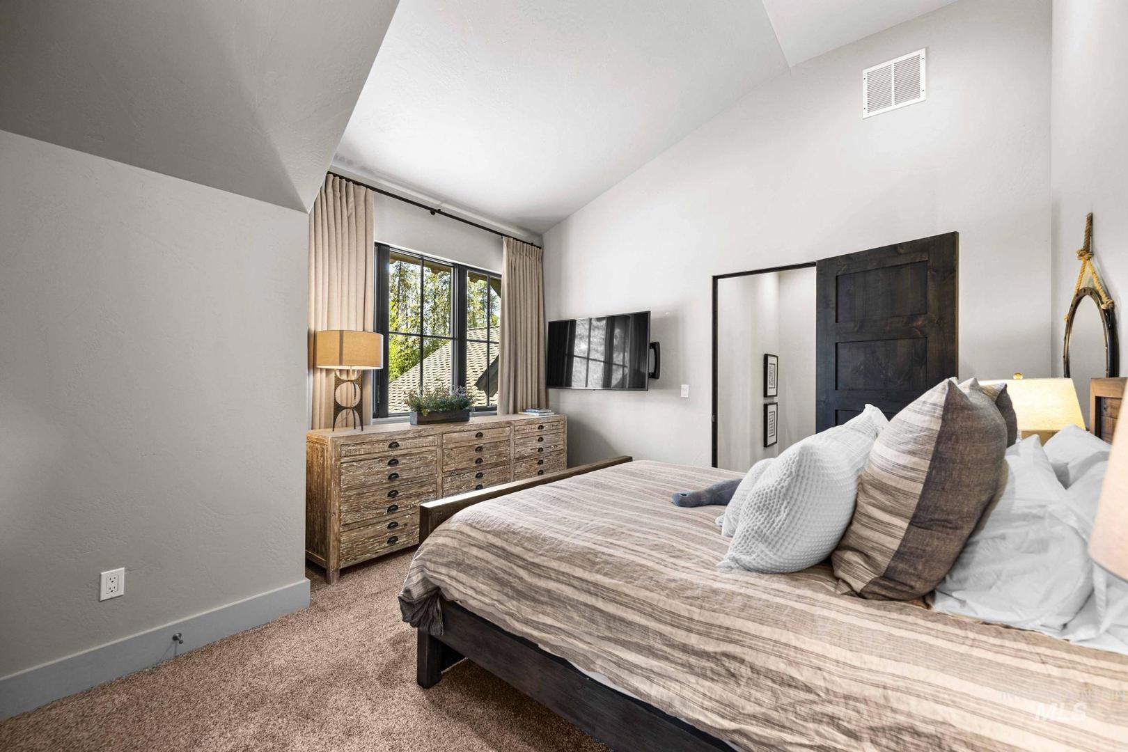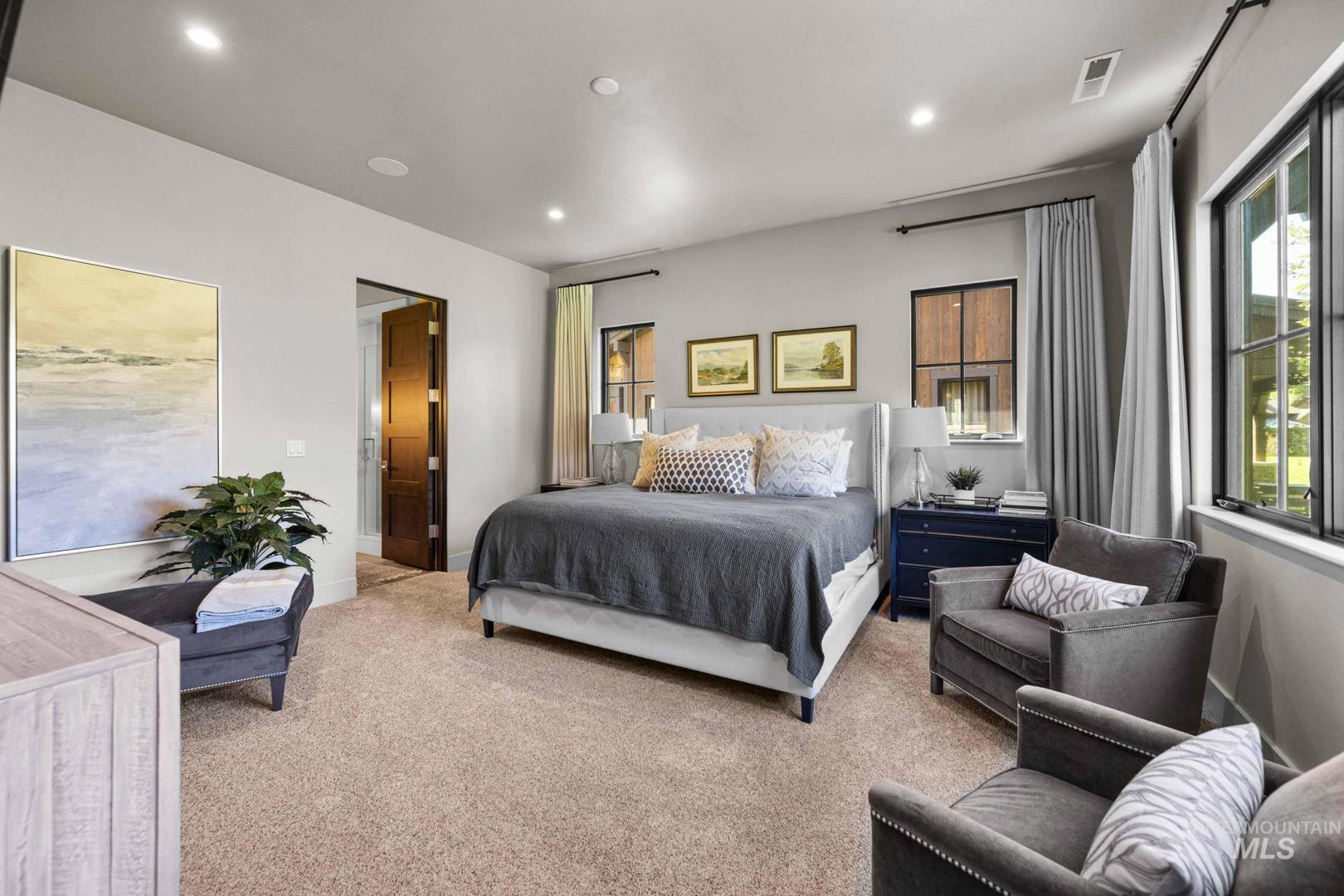 Whitetail Club Shore Lodge Cottage showcasing a bright, open floor plan with abundant natural light and professionally designed interiors. This turn-key home is beautifully furnished and move-in ready. The main level features a private primary suite with walk-in closet and spa-like bath, while the upper level includes additional suites with a Jack & Jill bathroom. Finishes include solid wood doors, Jeld-Wen windows, custom shaker cabinetry, Carrara quartz countertops, Grohe and Kohler fixtures, white oak floors, Wolf and Bosch appliances, and a stone-accented fireplace. A 1.5-car garage offers generous storage, while the covered patio—complete with outdoor furniture and a barbecue—creates a perfect space for entertaining. Just steps from the Whitetail Club Lakefront Clubhouse and private dock, this cottage combines comfort, elegance, and convenience, making it an ideal full-time residence or vacation retreat to create lasting memories.