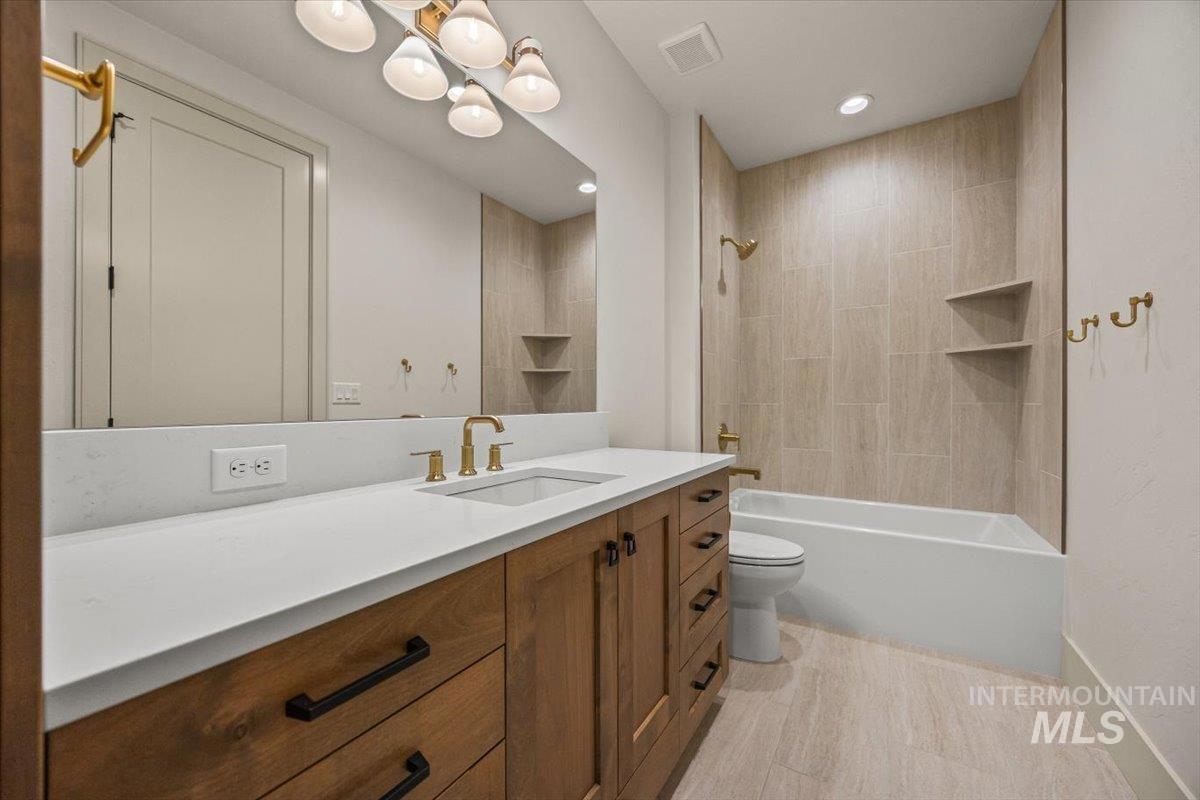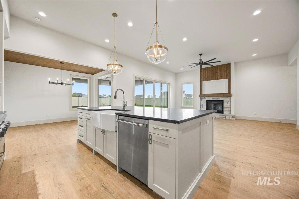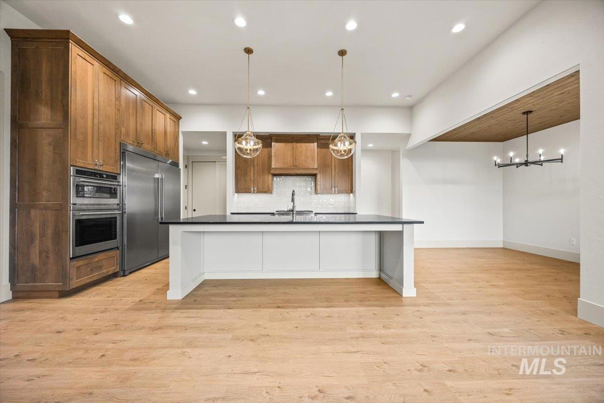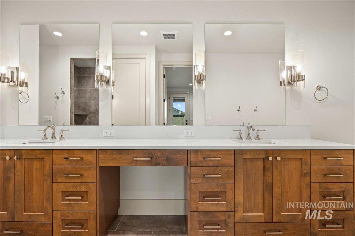 From the striking blend of stone and wood accents to the expansive 51` RV bay, the attention to detail and craftsmanship by Prominent Homes shines throughout. Step inside to a light-filled great room with soaring ceilings, statement fireplace, and large sliding doors that lead to a private, covered back patio, offering views of the fully landscaped 0.470-acre corner lot w/room for add`l toys or shop. The open kitchen boasts custom cabinetry, sleek dark quartz countertops, butler`s pantry, and high-end stainless steel appliances, incl a side-by-side fridge/freezer. Beautiful connecting dining space incorporating wood accents. Each bedroom includes its own full bath, ensuring privacy for all. The luxurious primary suite offers dual vanities, a freestanding tub, a large tile shower, and a walk-in closet with direct access to the laundry room. Don`t miss the dedicated den off the entryway providing added flexibility. Located in the sought-after Brittania Heights with easy access to the 10-Mile Interchange.