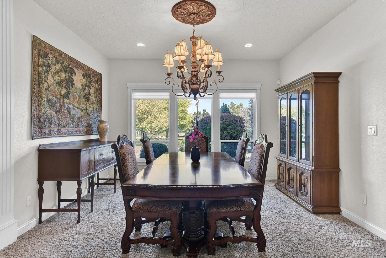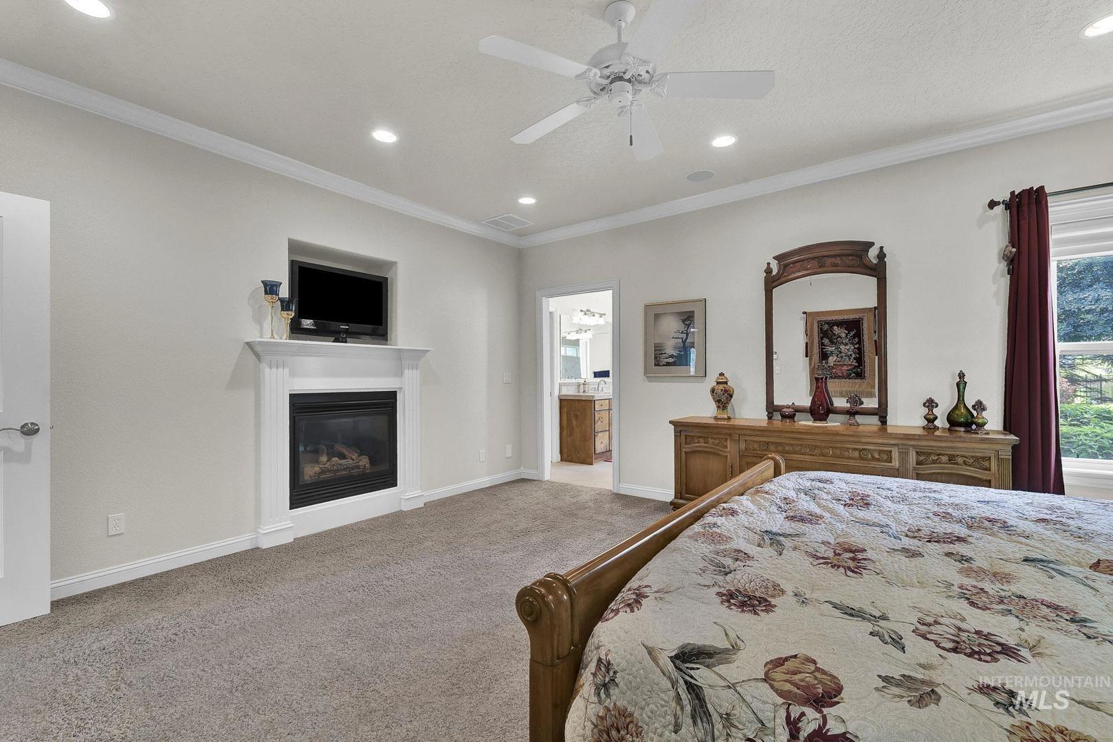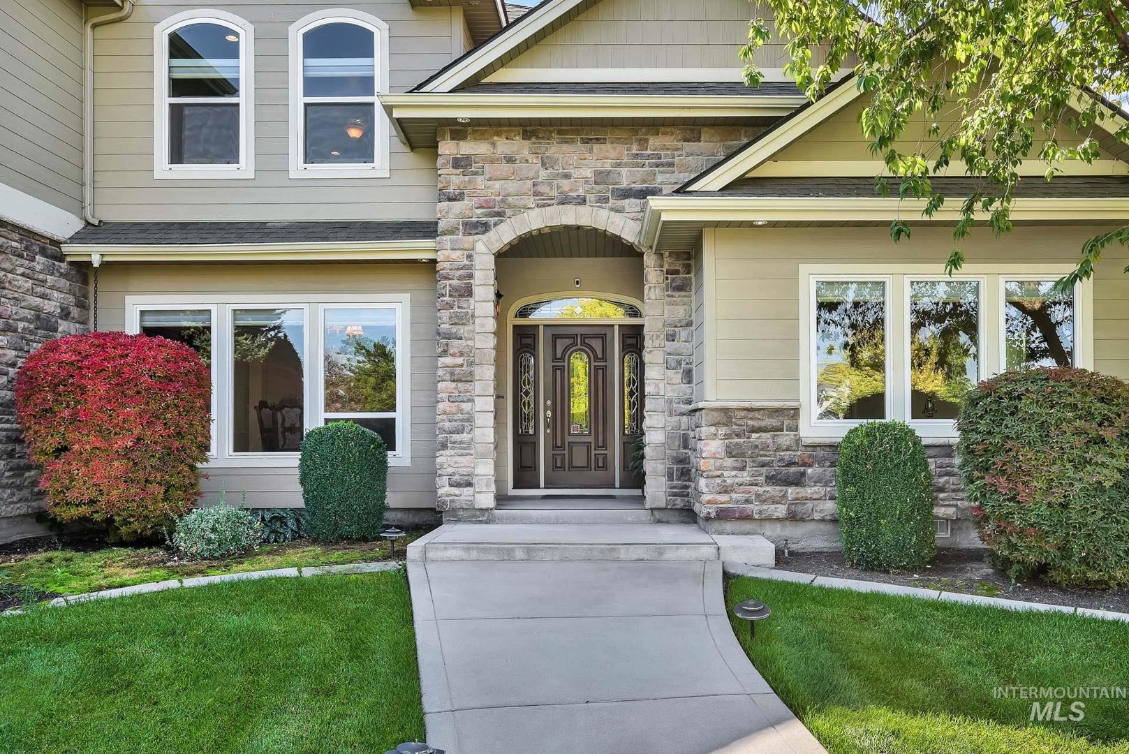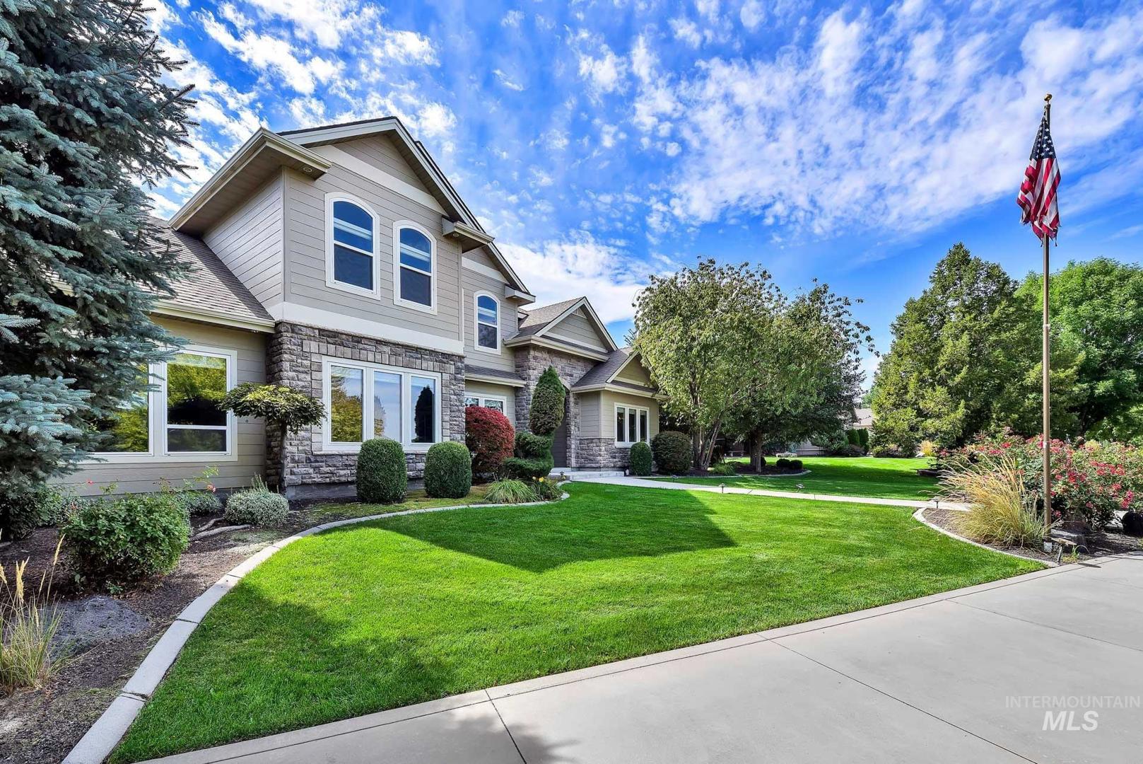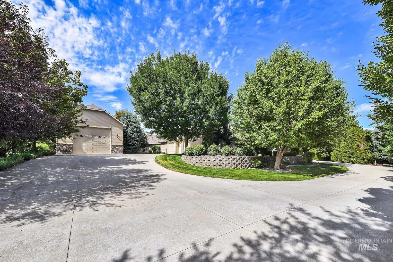 This is the first time this Luxurious Home has been on the market. This 3768 sqft home was custom built in 2006 and has been both loved and meticulously cared for since by one owner. This home boasts a gourmet kitchen, custom cabinets and wood working, Built-in custom entertainment center, built-in china hutch, 2 gas fireplaces, 2 primary suites on the main level, 2 separate living spaces, and no shortage of storage. Along with the three car garage with a private rear facing driveway you will find a 28` x 46` detached RV Garage / Shop, and a beautiful rose garden. Don`t miss this chance to own this amazing home located in Carriage Hill The Ridge, one of Nampa`s most desirable communities.