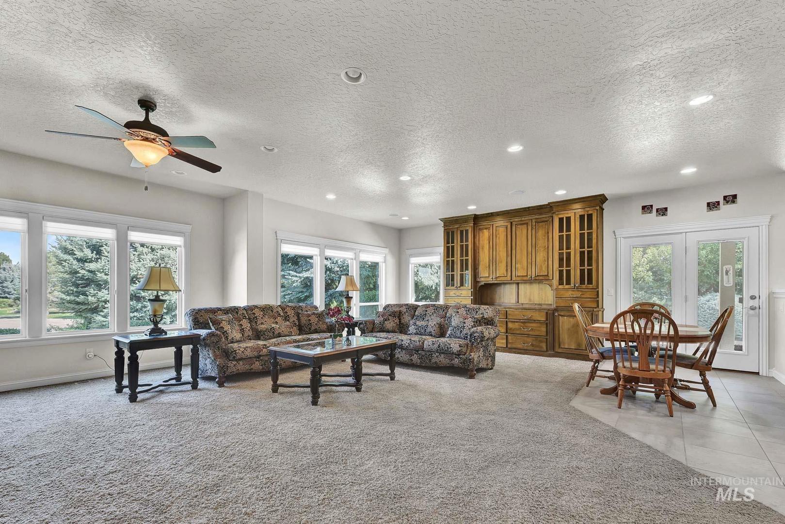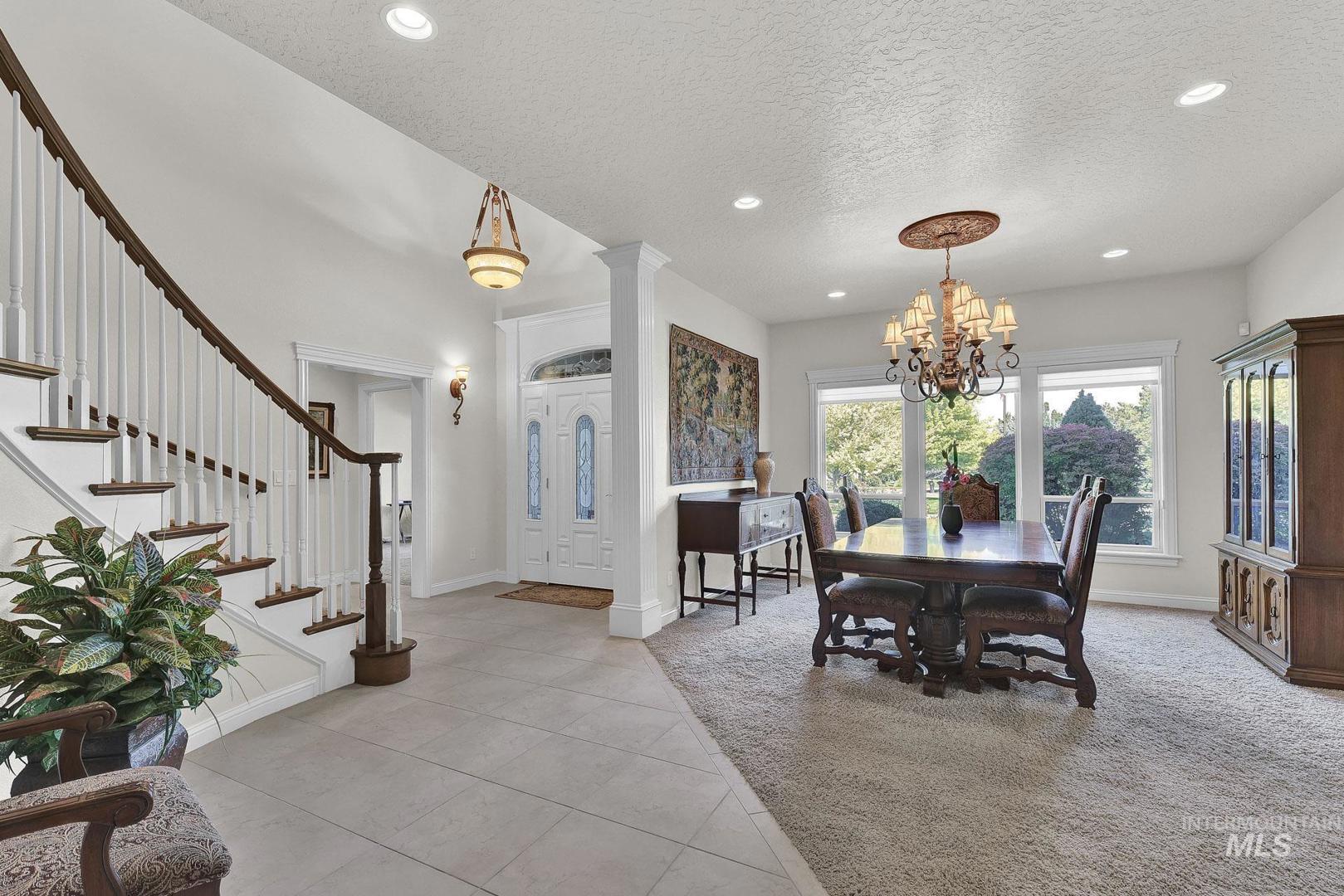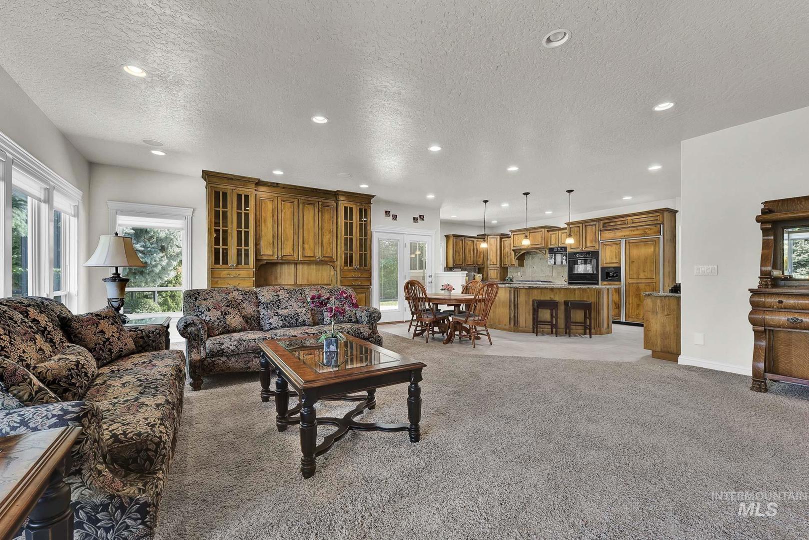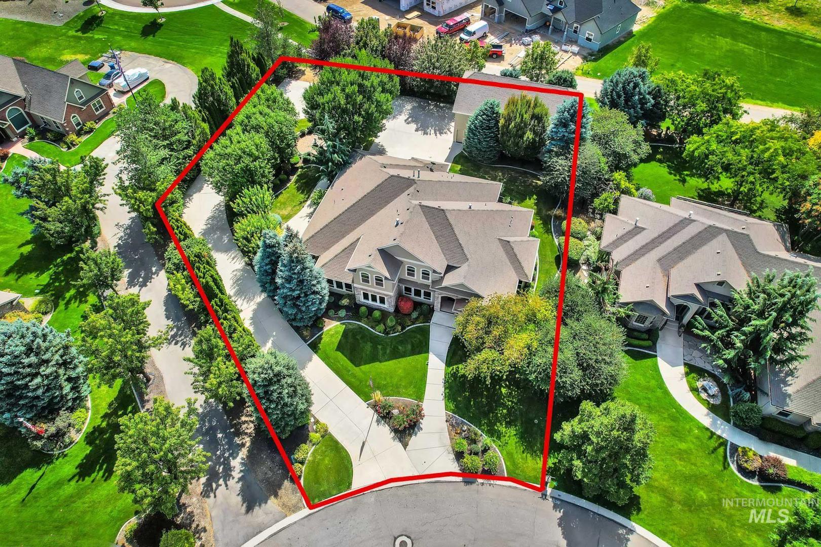 This is the first time this Luxurious Home has been on the market. This 3768 sqft home was custom built in 2006 and has been both loved and meticulously cared for since by one owner. This home boasts a gourmet kitchen, custom cabinets and wood working, Built-in custom entertainment center, built-in china hutch, 2 gas fireplaces, 2 primary suites on the main level, 2 separate living spaces, and no shortage of storage. Along with the three car garage with a private rear facing driveway you will find a 28` x 46` detached RV Garage / Shop, and a beautiful rose garden. Don`t miss this chance to own this amazing home located in Carriage Hill The Ridge, one of Nampa`s most desirable communities.