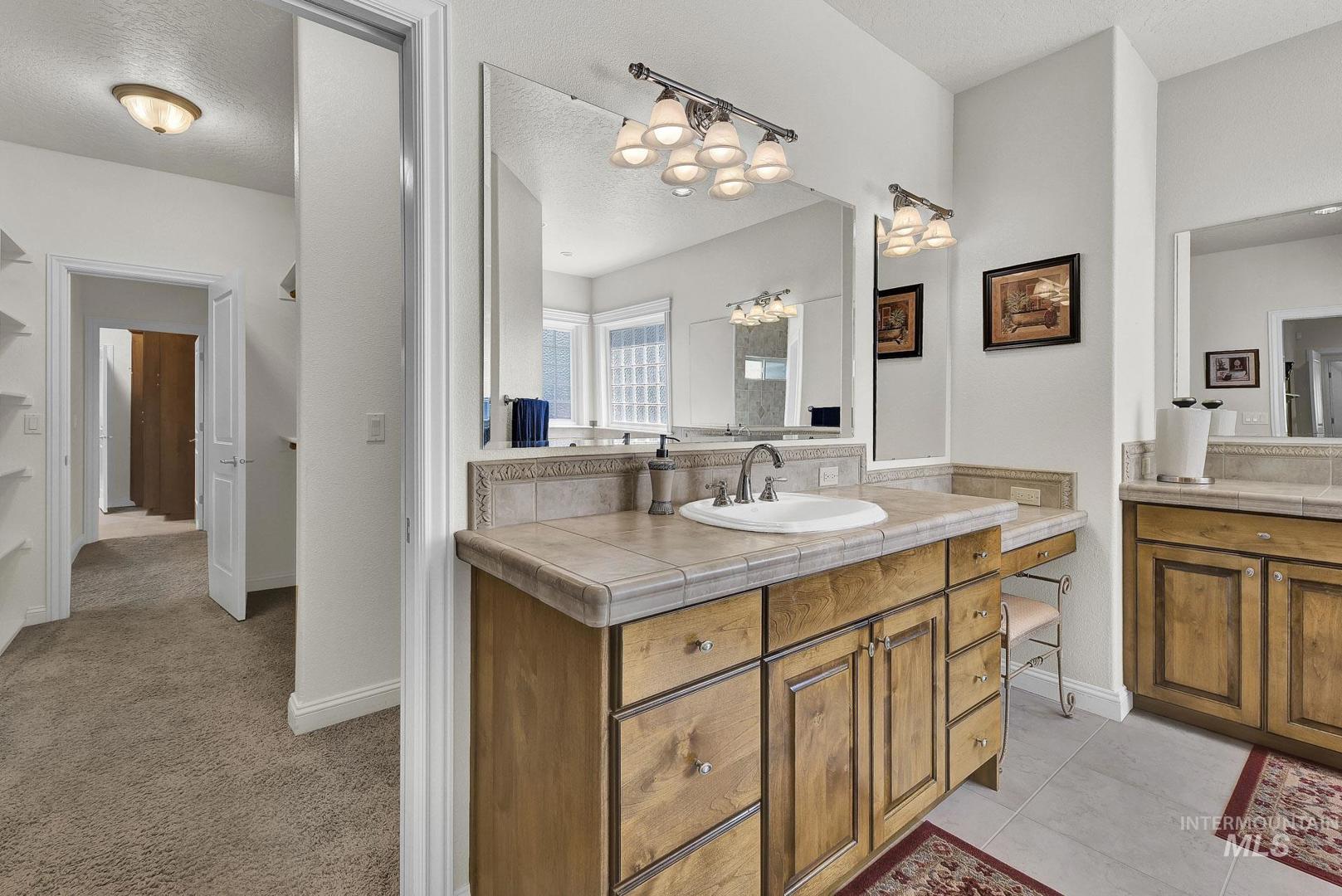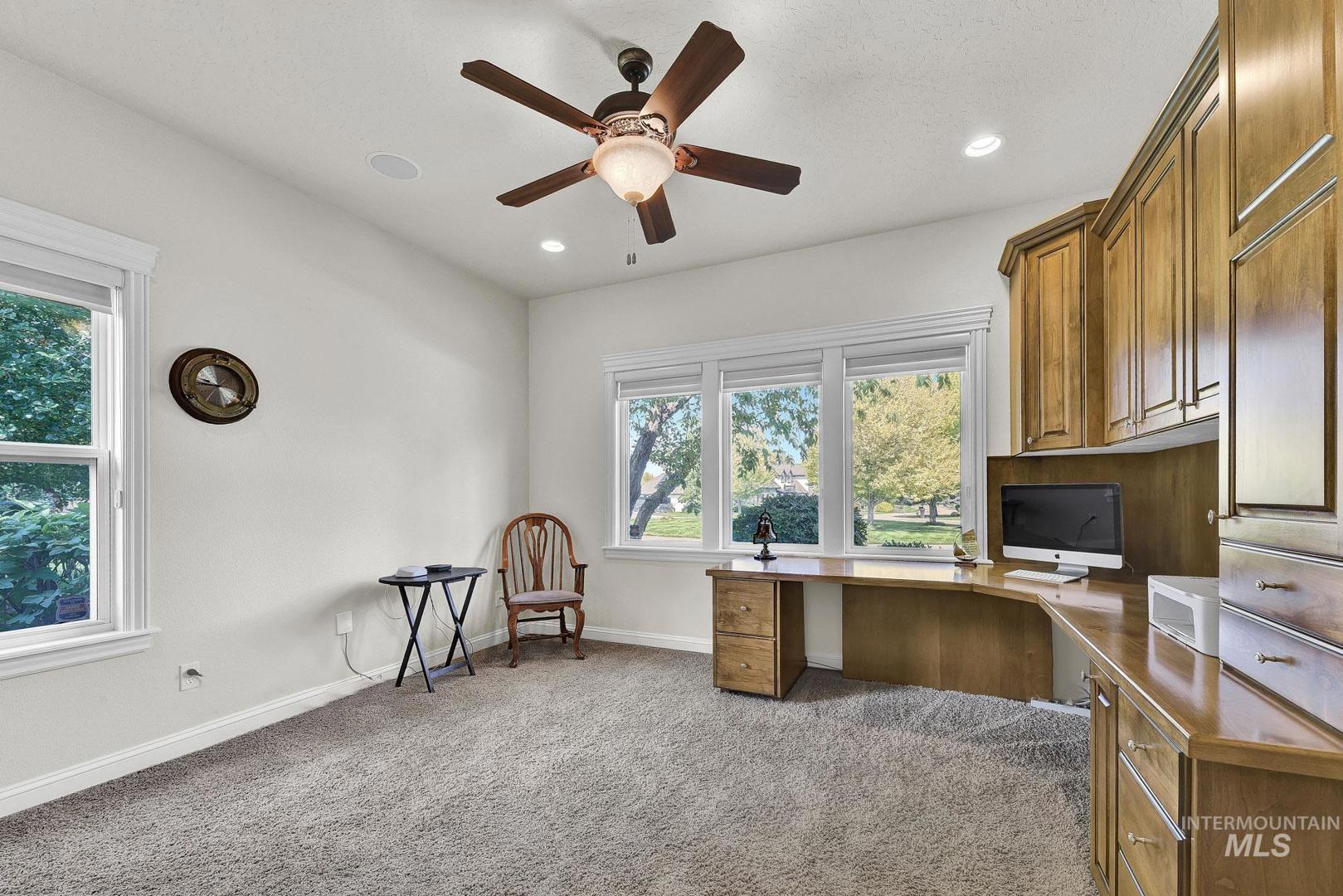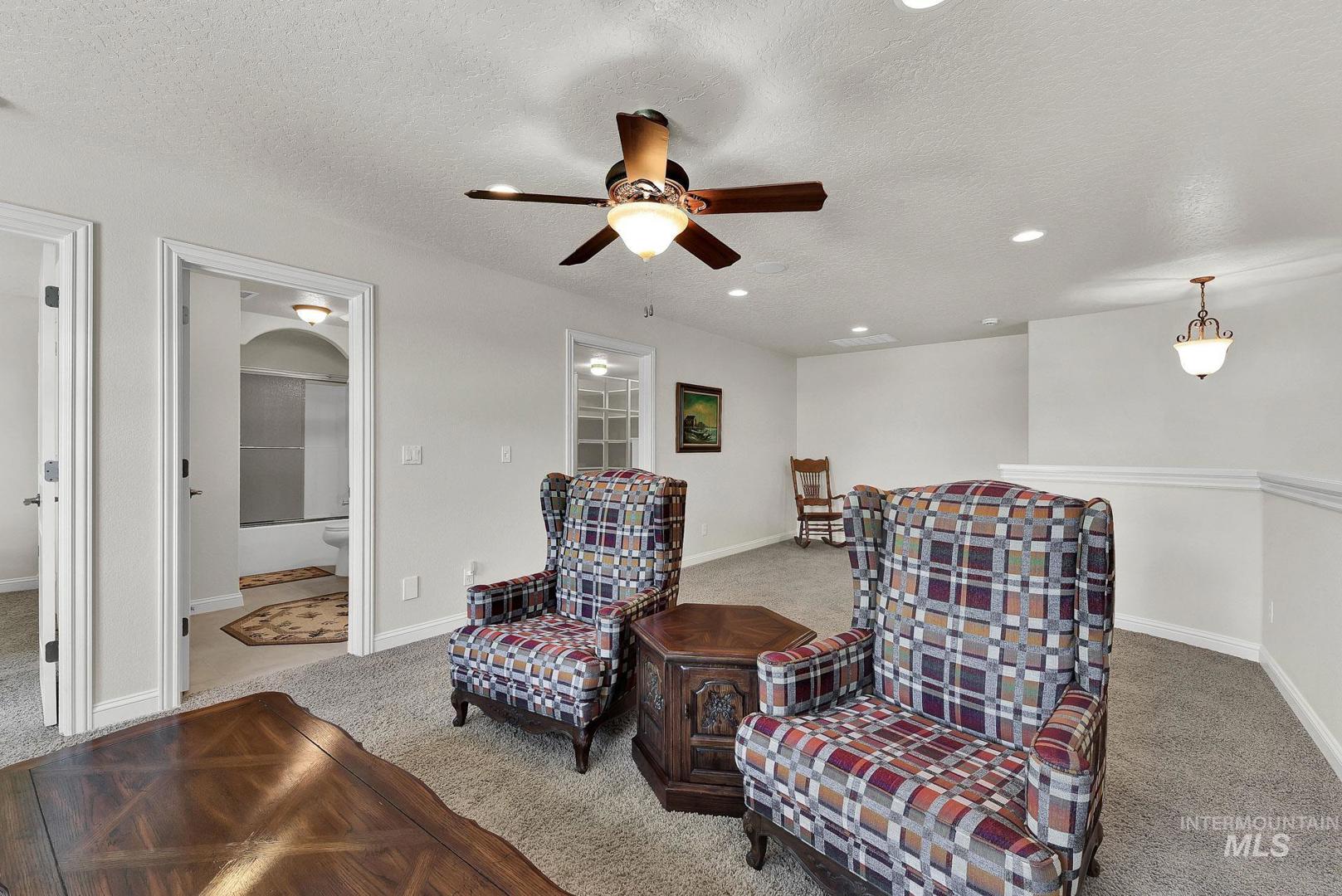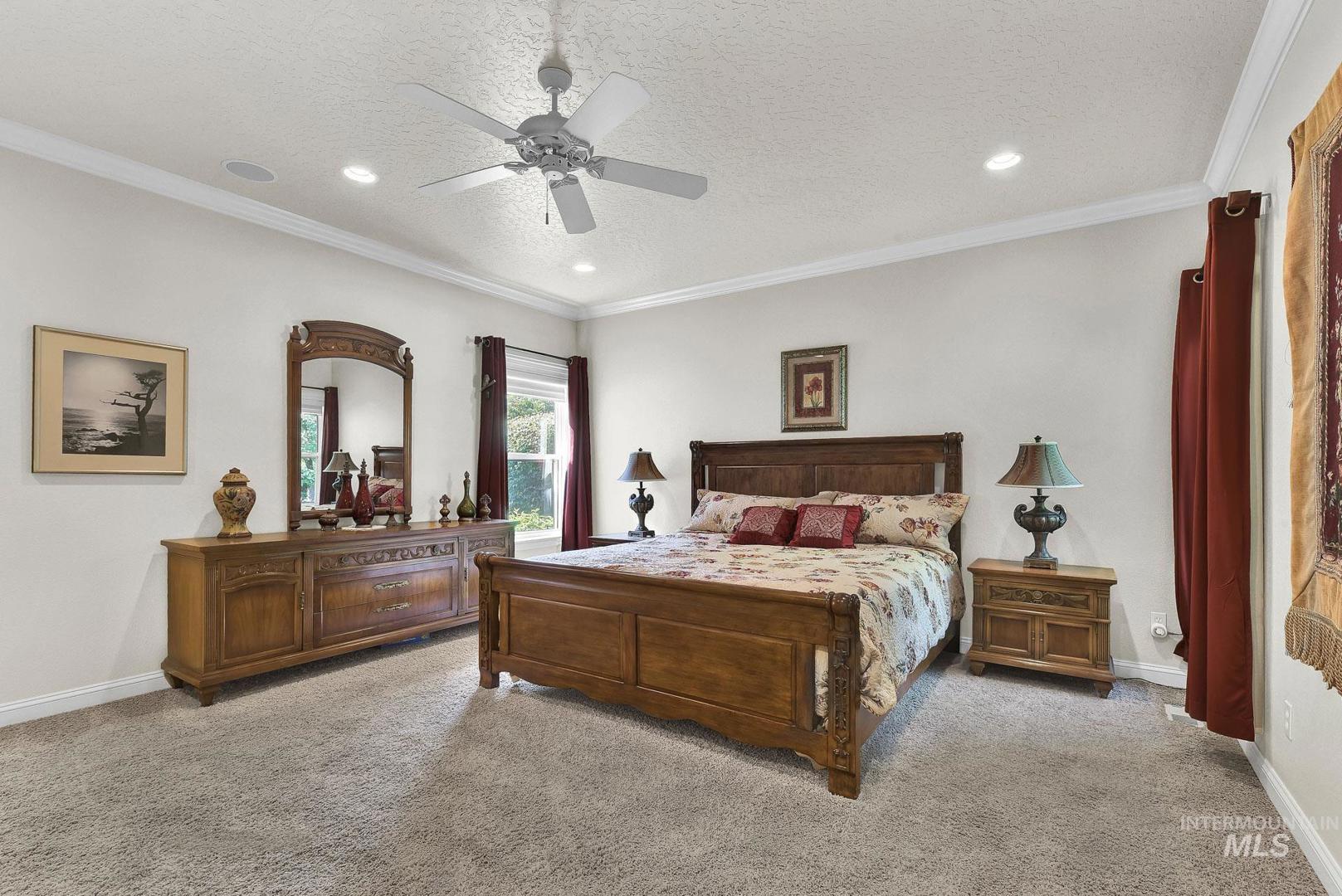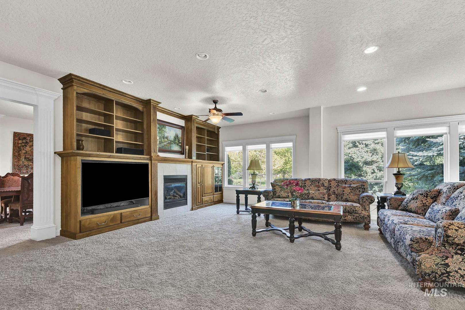 This is the first time this Luxurious Home has been on the market. This 3768 sqft home was custom built in 2006 and has been both loved and meticulously cared for since by one owner. This home boasts a gourmet kitchen, custom cabinets and wood working, Built-in custom entertainment center, built-in china hutch, 2 gas fireplaces, 2 primary suites on the main level, 2 separate living spaces, and no shortage of storage. Along with the three car garage with a private rear facing driveway you will find a 28` x 46` detached RV Garage / Shop, and a beautiful rose garden. Don`t miss this chance to own this amazing home located in Carriage Hill The Ridge, one of Nampa`s most desirable communities.