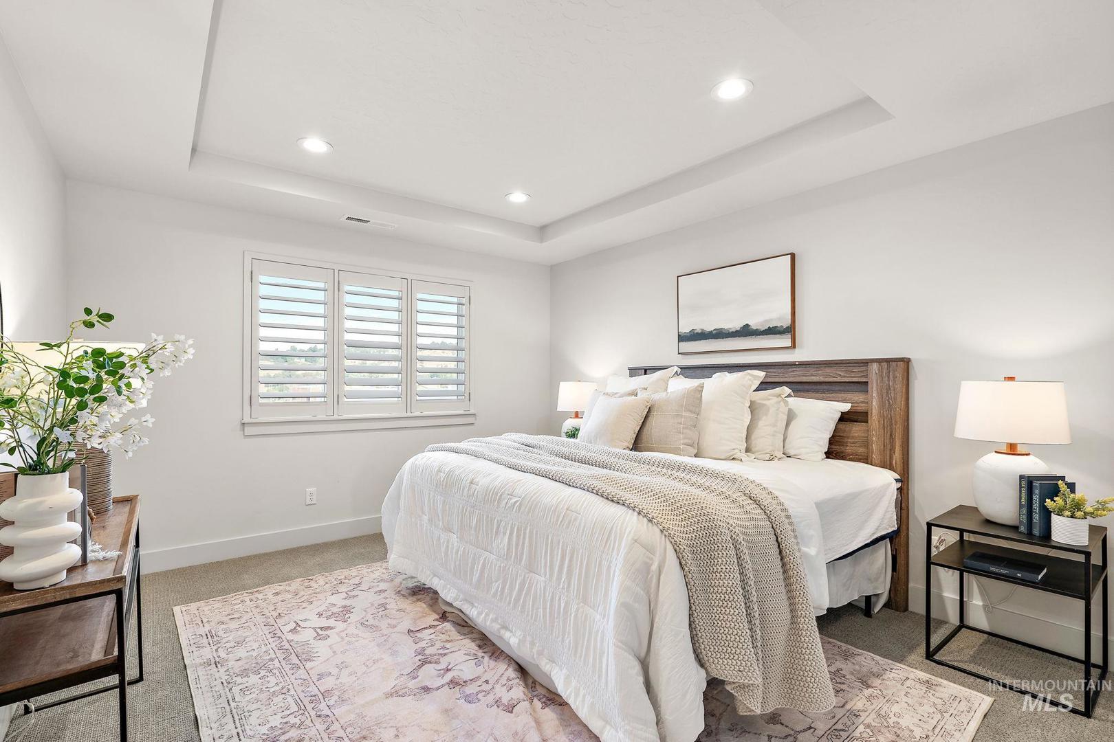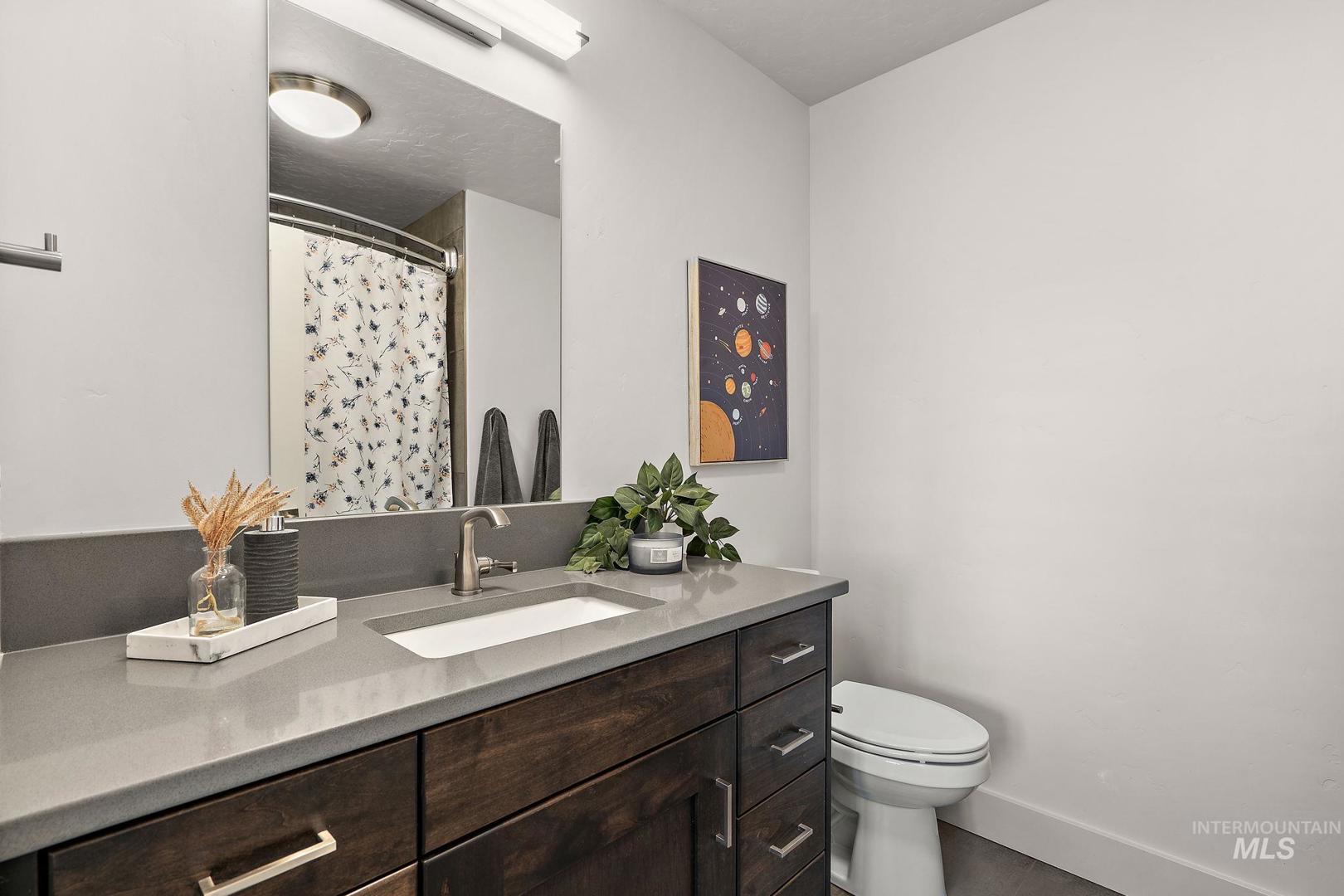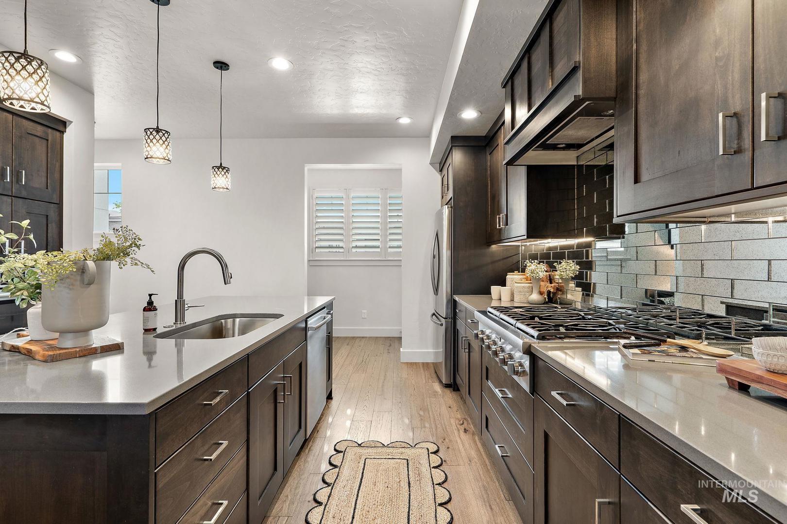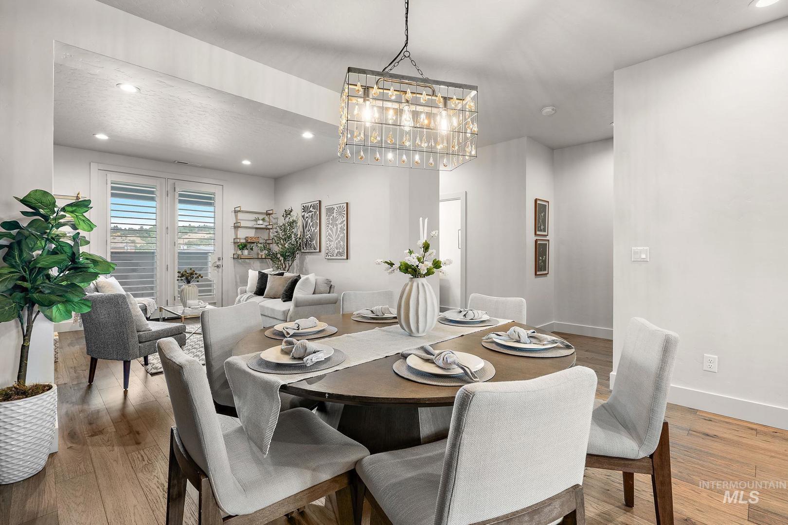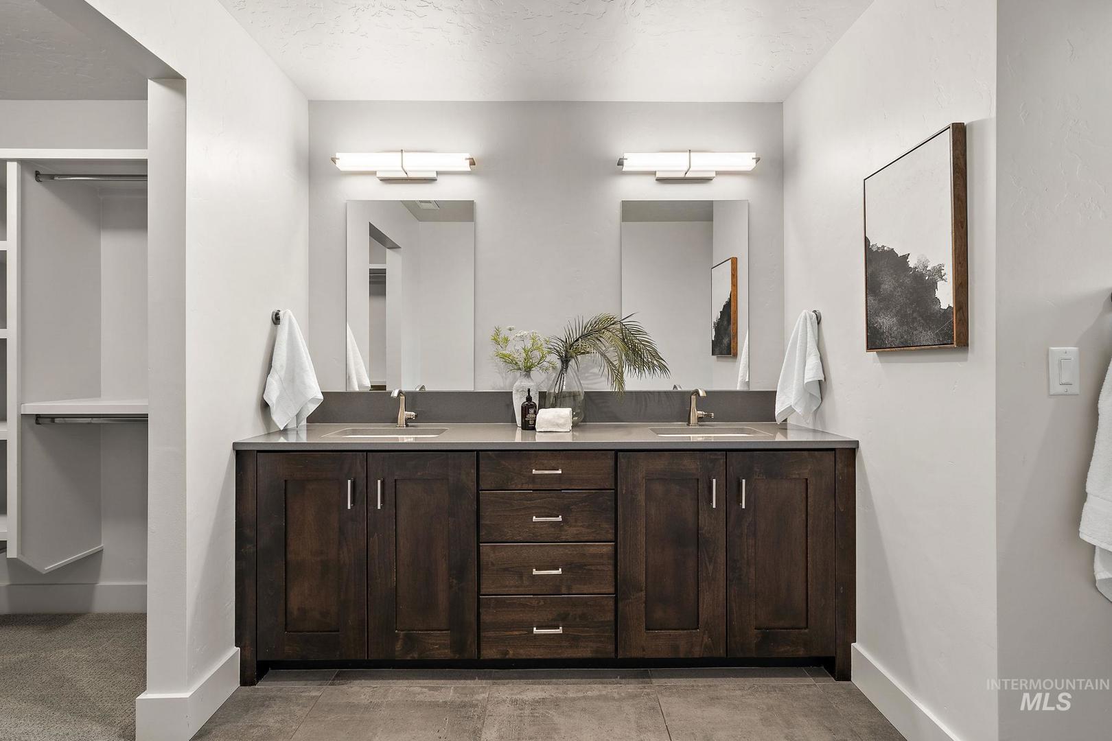 Stylish Harris Ranch Townhome Beautifully designed 3-bedroom, 3.5-bath townhome with oversized 2-car garage in the sought-after BLVD at Harris Ranch. Showcasing gorgeous, up-to-the-minute finishes, this home features quartz countertops, custom cabinetry, custom plantation shutters, stunning light fixtures, and a chic brick accent wall that brings an urban loft vibe. Dual primary suites upstairs plus a private bedroom and full bath on the main level create a versatile layout perfect for comfort and privacy. Open gathering areas make entertaining easy, while the low-maintenance design offers a lock-and-leave lifestyle. Located in the heart of Harris Ranch with premier access to community pools, the Boise River Greenbelt, foothills Ridge-to-Rivers trails, shops, restaurants, and the Idaho Shakespeare Festival. Immaculately maintained and move-in ready—this home truly shows like new!