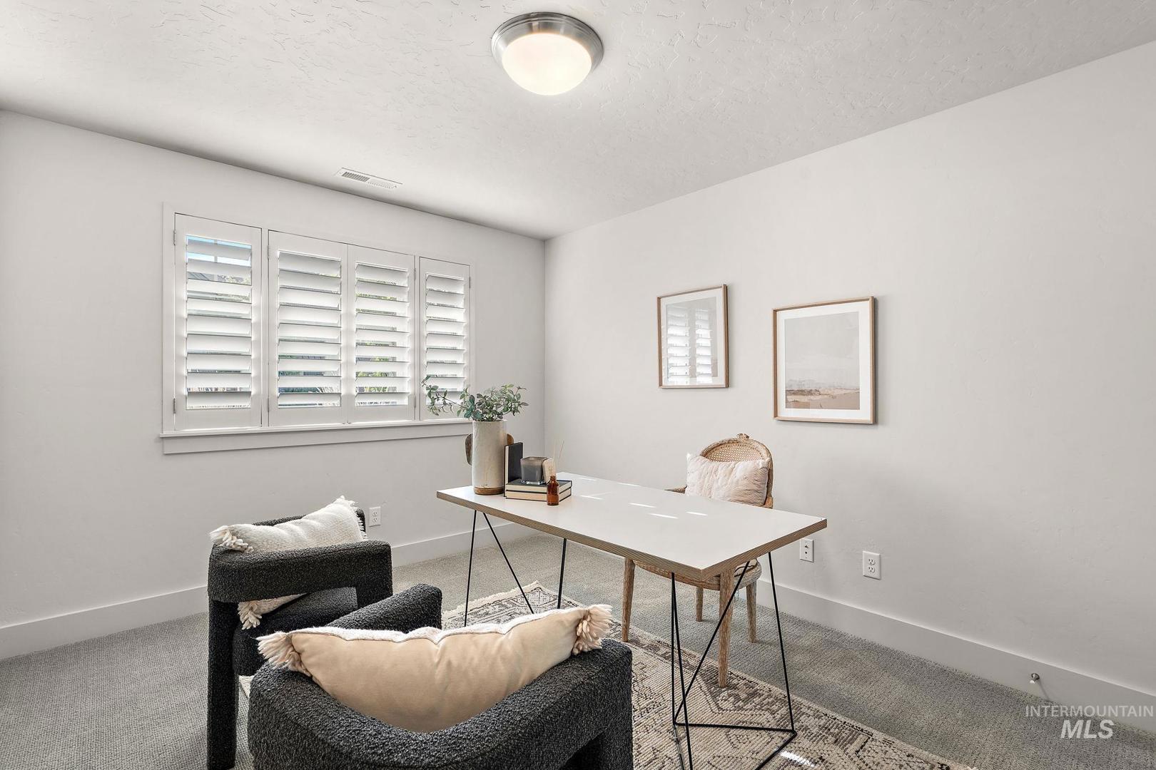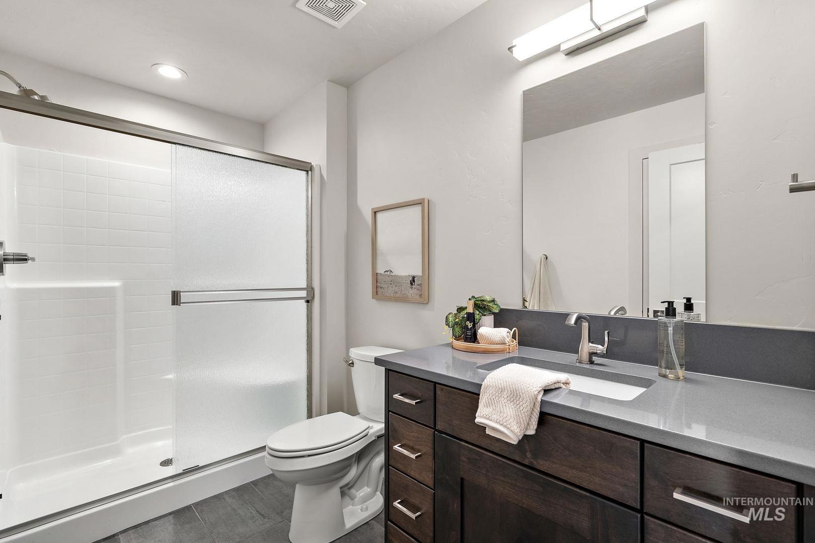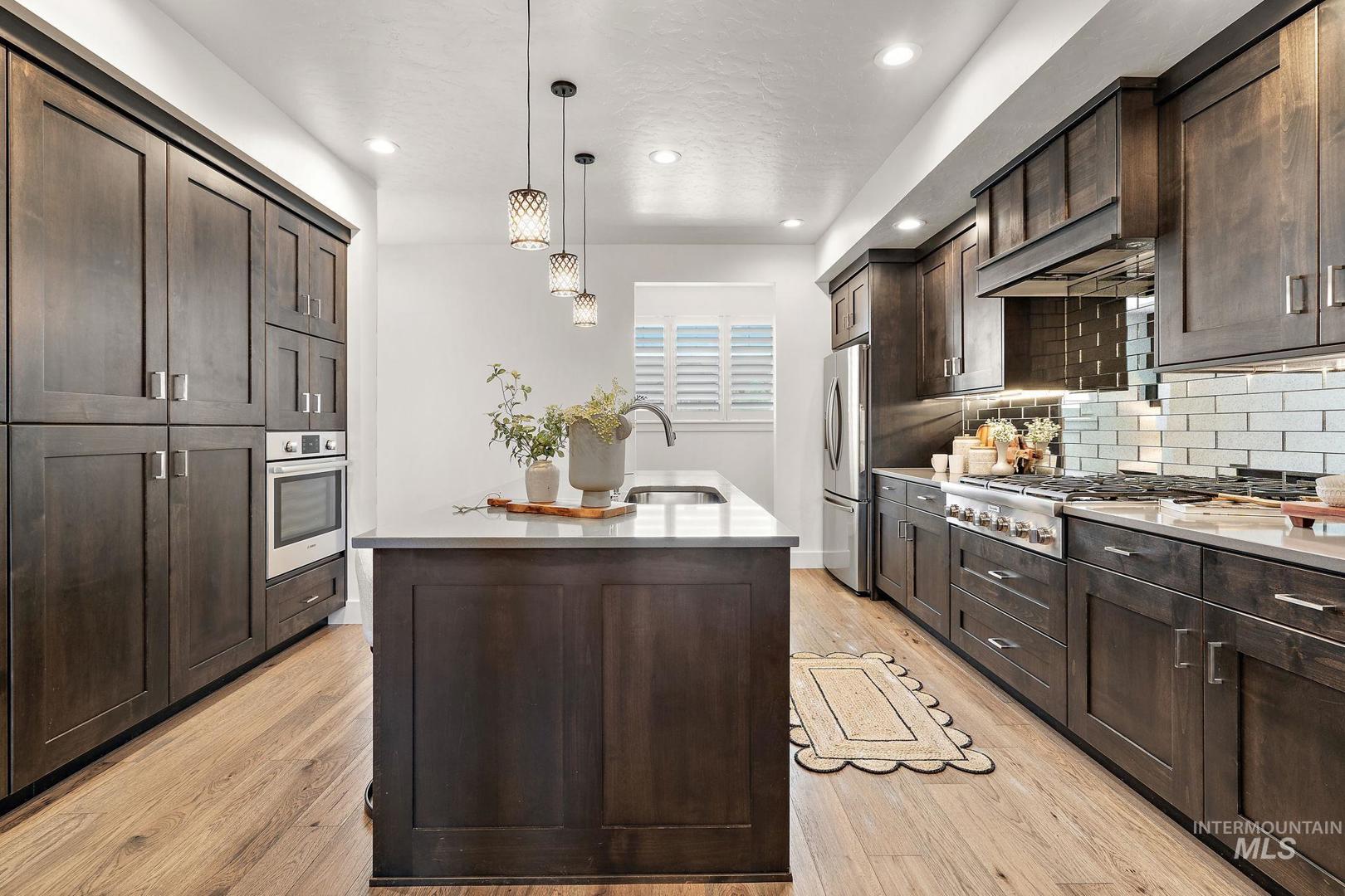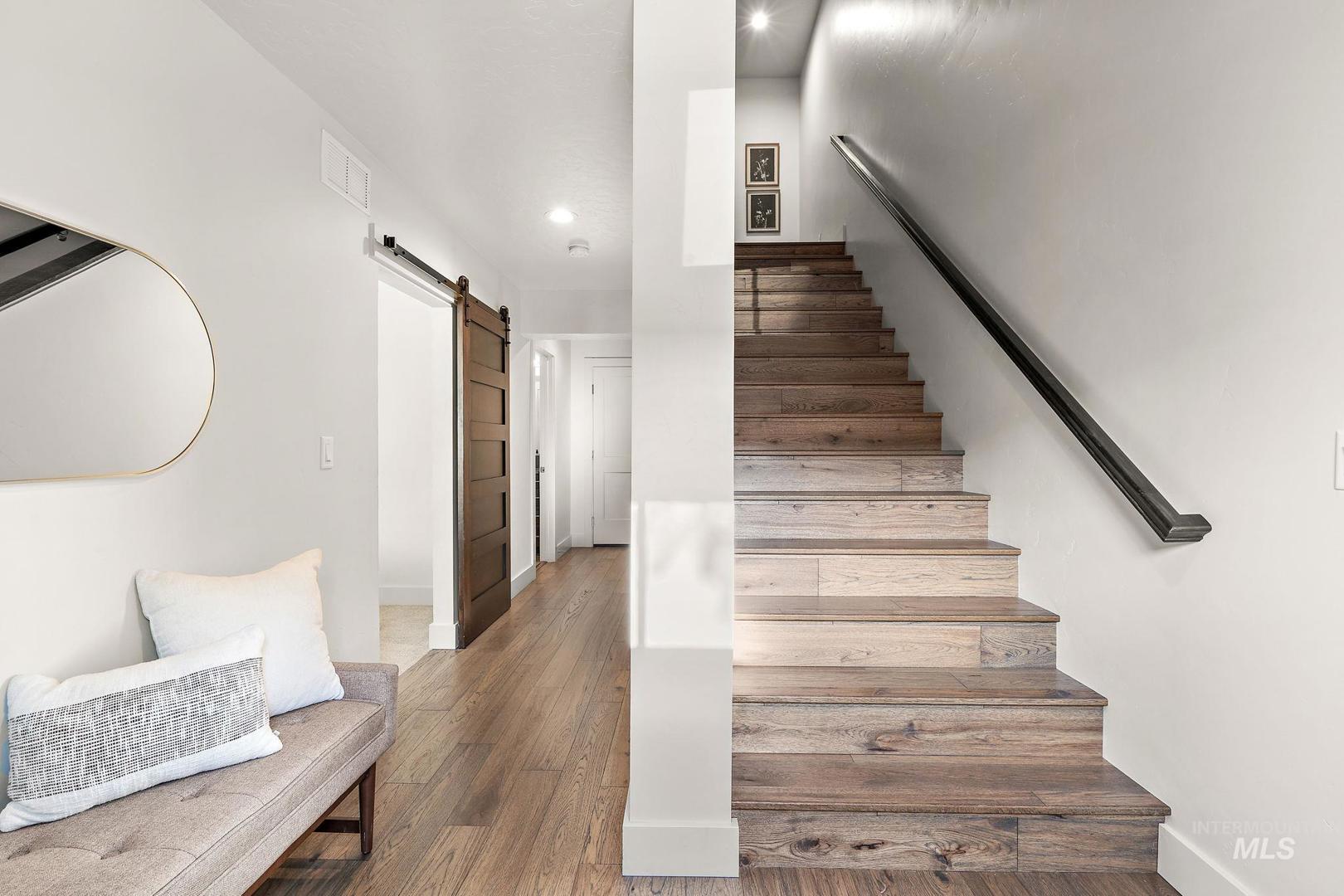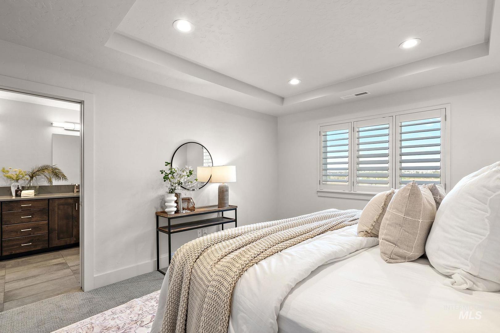 Stylish Harris Ranch Townhome Beautifully designed 3-bedroom, 3.5-bath townhome with oversized 2-car garage in the sought-after BLVD at Harris Ranch. Showcasing gorgeous, up-to-the-minute finishes, this home features quartz countertops, custom cabinetry, custom plantation shutters, stunning light fixtures, and a chic brick accent wall that brings an urban loft vibe. Dual primary suites upstairs plus a private bedroom and full bath on the main level create a versatile layout perfect for comfort and privacy. Open gathering areas make entertaining easy, while the low-maintenance design offers a lock-and-leave lifestyle. Located in the heart of Harris Ranch with premier access to community pools, the Boise River Greenbelt, foothills Ridge-to-Rivers trails, shops, restaurants, and the Idaho Shakespeare Festival. Immaculately maintained and move-in ready—this home truly shows like new!