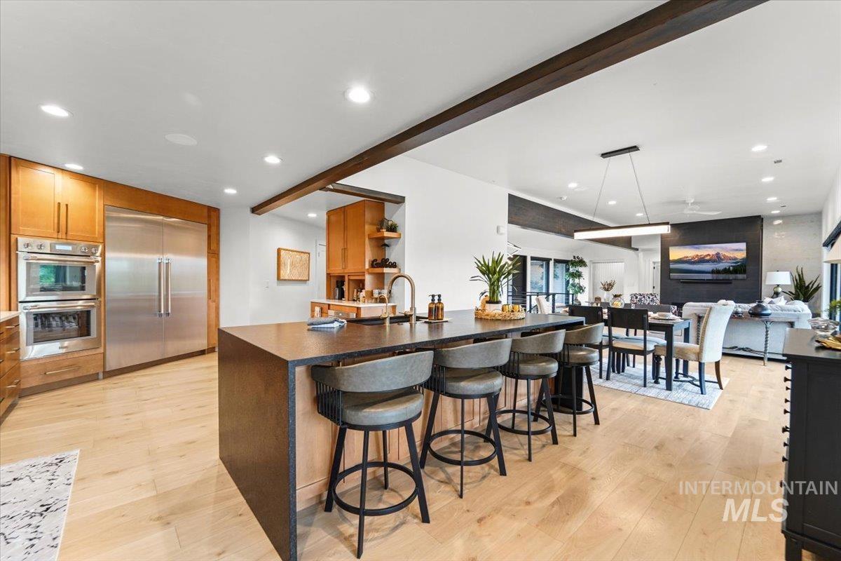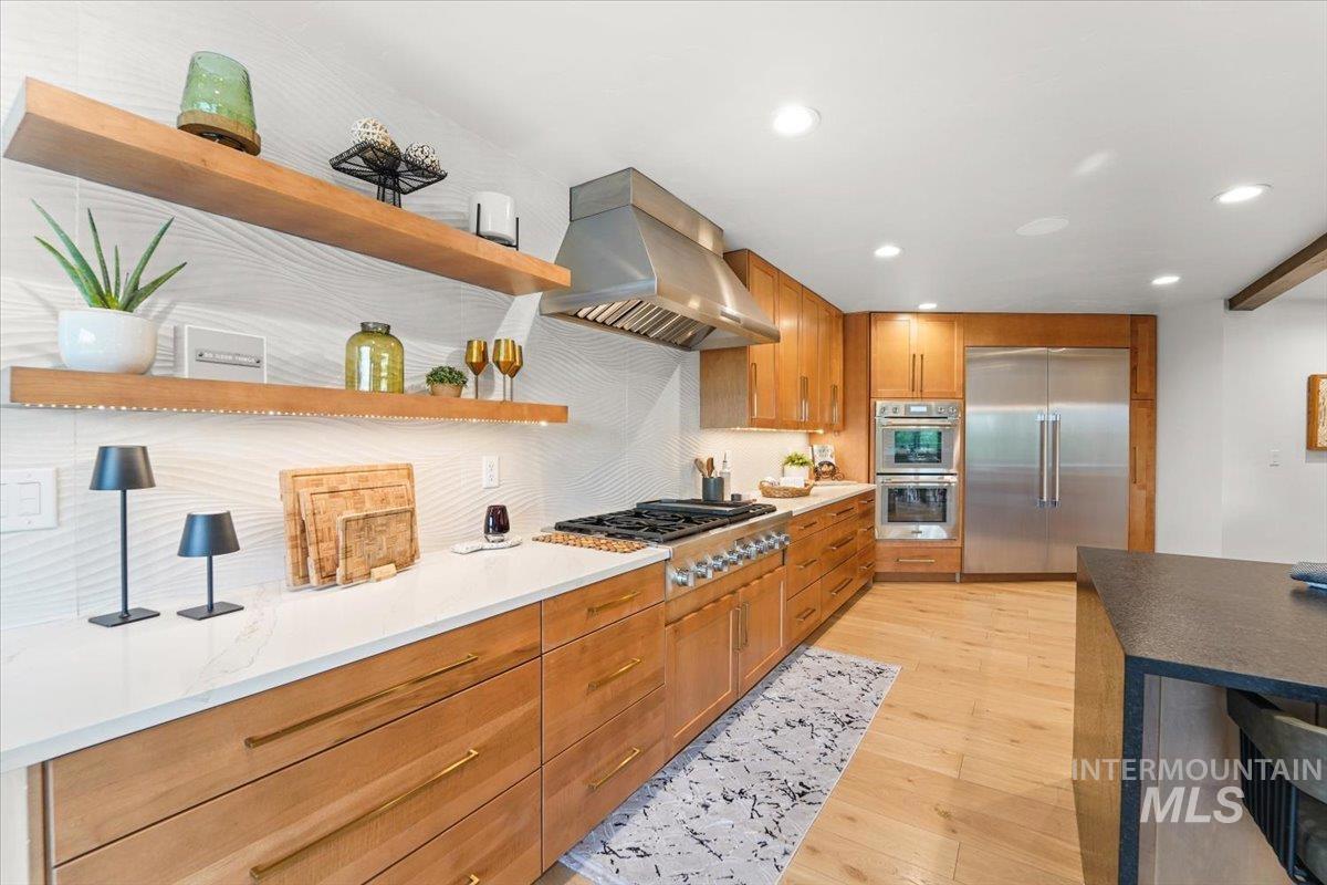 Location is the word of the day with this luxurious fully remodeled estate on desirable Mountain View Drive centrally located for extraordinary convenience. This beauty boasts breathtaking views and unmatched amenities. Exquisitely designed for multi-generational living, should you have this need, with two main house kitchens and a separate apartment. This stunning home showcases high-end finishes, a chef’s kitchen with Thermador appliances, and a gas fireplace. The main floor is thoughtfully designed for ultimate privacy in the primary suite; its own private retreat with a spa-inspired en suite that includes a glass-enclosed walk-in shower and tub, spacious walk-in closet, plus large sliding doors which lead out to two decks—one with a hot tub and sauna with red-light therapy. Experience stellar views from almost every corner of this home. The daylight basement offers views, an outdoor deck that leads to the pool plus two bedrooms, a kitchen, family room, recreation room and 2.5 baths. The breathtaking outdoor living areas include a built-in pool, fruit trees, multiple decks for entertaining plus a play area with trampoline, play set and tree house for outdoor fun. Plenty of parking for your RV and other toys. A shed and a dream shop with apartment round out this resort-style retreat with a private gate that opens to the home`s entrance. This is a rare beauty in a stellar location