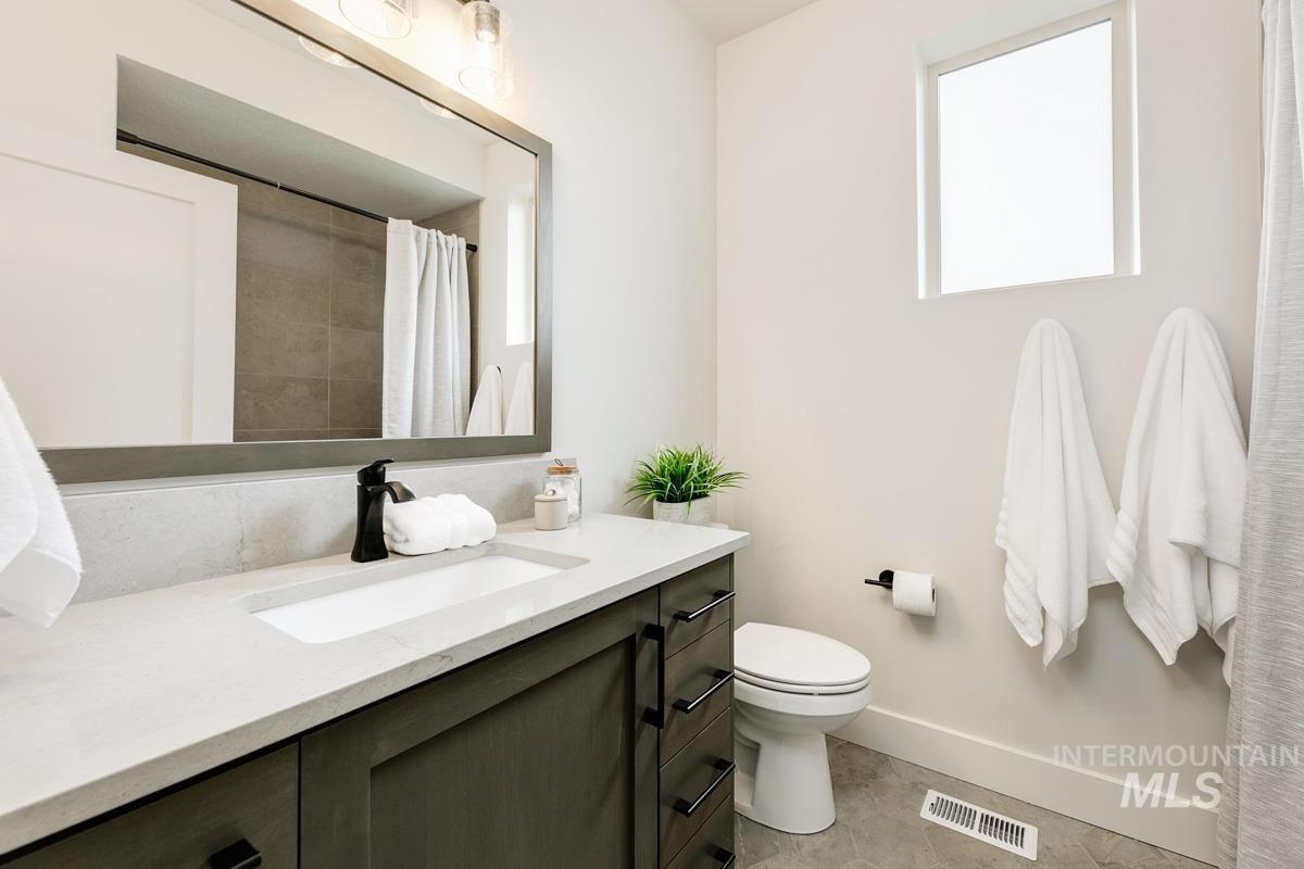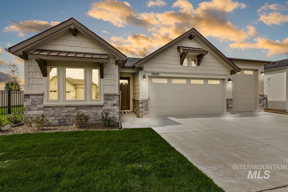 The GREYHAWK MODEL| Blackrock Homes. All new plan featuring 31` deep RV/Boat Bay with 9` x 11` door + additional shop/work area. East facing backyard. Apart of the Pinnacle Collection at Skybreak- Enjoy COMMUNITY POOL, pickle ball courts, playground + community dog parks! Upgraded finishes include custom cabinets, all quartz countertops, hardwood (lvp), upgraded trim detail including ceiling beams in living room, SS appliances including built-in 5 burner industrial gas range, built in Bosch oven, microwave & dishwasher. Walk-in butler`s pantry + tons of additional storage throughout. Light & airy floor plan w/lots of natural light & cozy fireplace. Tile floors in laundry, secondary & primary baths. * photos similar but not of actual home. actual seletions are Medi package.