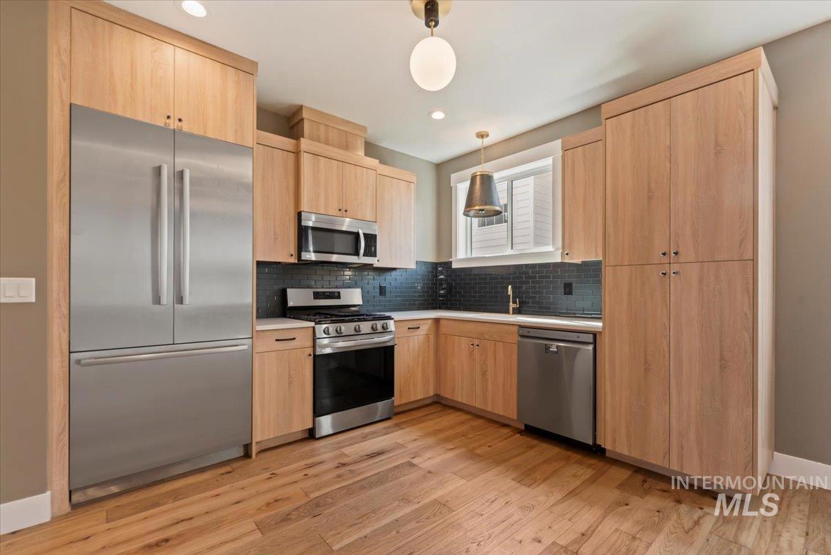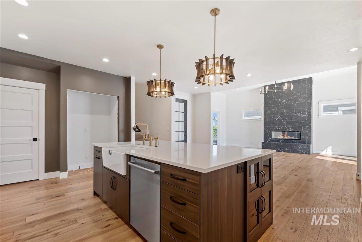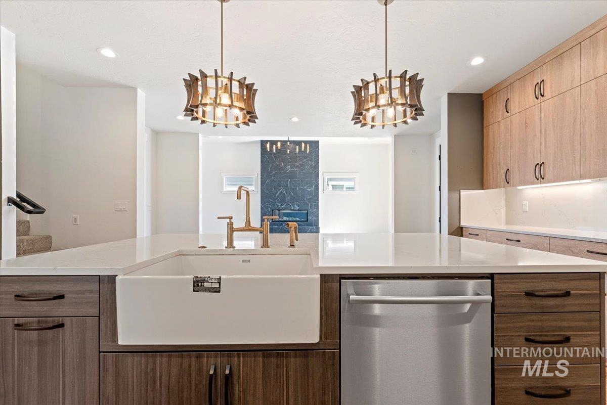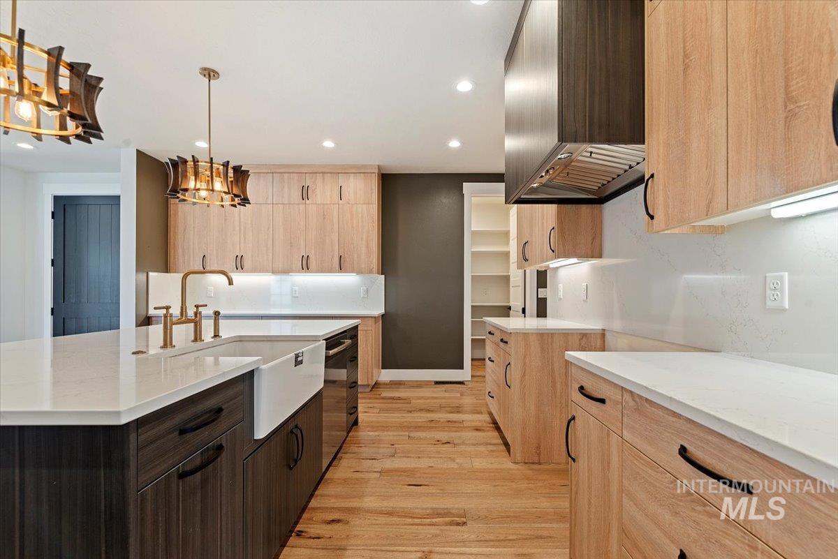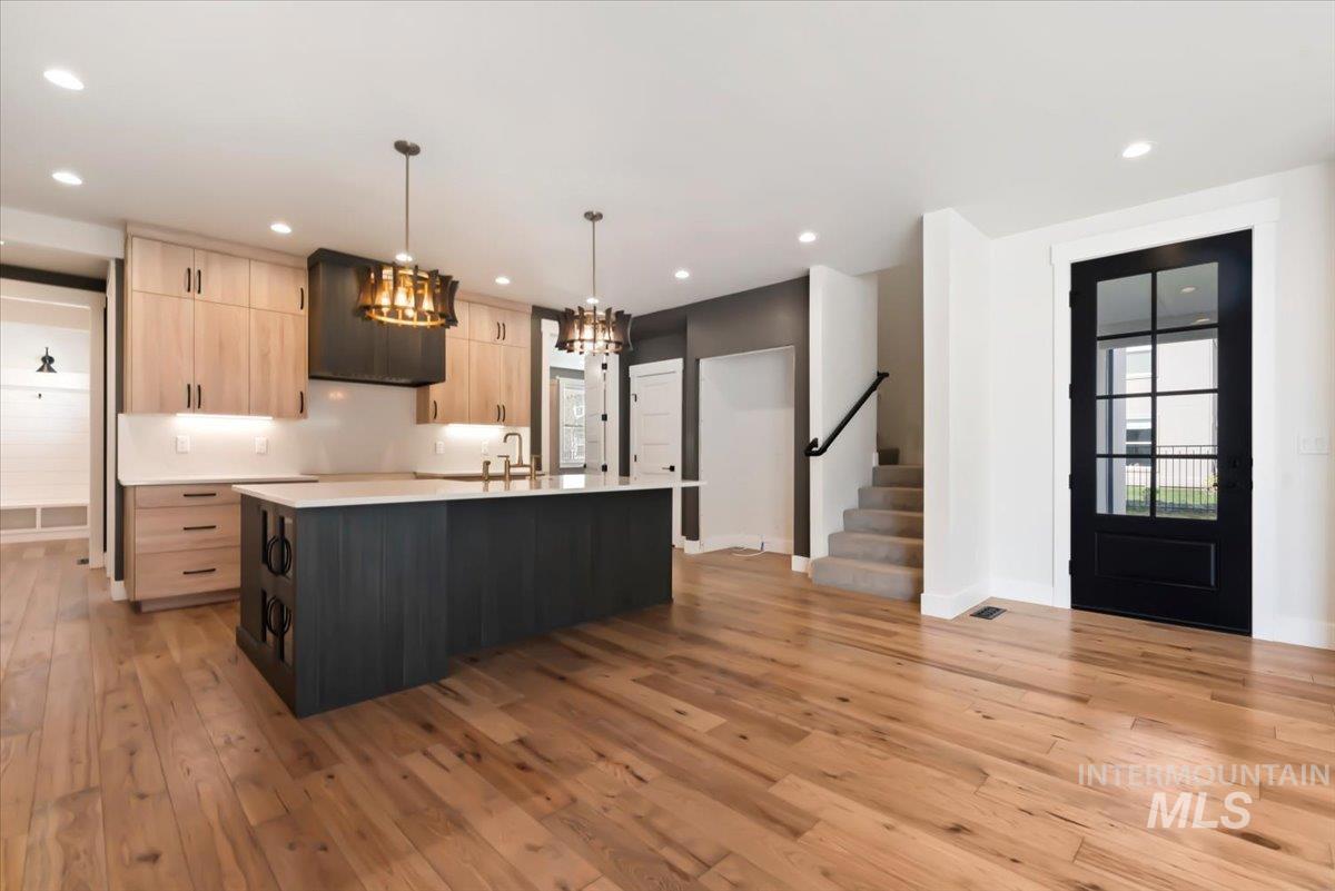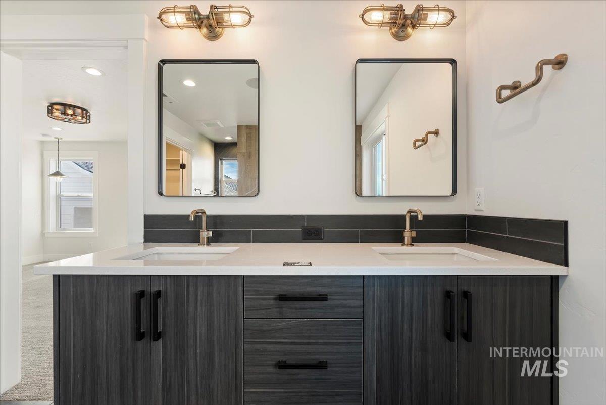 Impressive multigenerational home in Legacy subdivision! Wide open entry leading to a 26`x15` great room with 12` ceilings, floor to ceiling tiled fireplace and expansive sliding glass doors leading out to covered patio. Gourmet kitchen with abundant custom cabinetry, quartz countertops and massive center island. Spacious main floor suite with its own full kitchen including LG smart appliances, sitting/dining area and private patio access offering both comfort and independence. Second floor has another owner`s suite with private balcony and beautifully designed bathroom & walk in closet along with two additional bedrooms, loft area and workspace with built in desk and cabinets. Spacious laundry with sink, cabinets. Engineered wood floors throughout living area, Brizo faucets, high end lighting, quartz on all countertops, Navien tankless water heater, 3 car side entry garage. Legacy amenities include community pools, miles of manicured walking paths, tennis & pickleball courts, playgrounds.