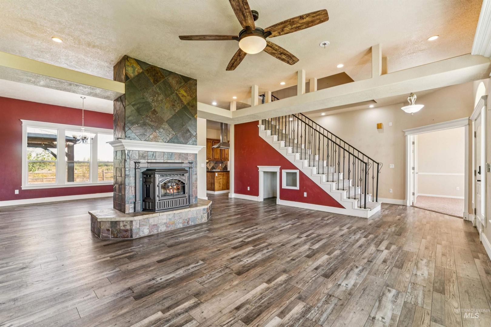 Seller offering concession at closing with a reasonable offer! Amazing custom home on 5 acres that boasts a custom pool and an efficient, well-thought-out design floorplan with 5 bedrooms, 3.5 bath & office. The stunning staircase at the entry makes a grand statement. The Master Suite is a true retreat, offering a separate sitting room, walk-in closet, & a stunning slate walk-in shower. The kitchen offers plenty of room for ALL your cooks in the family, featuring birch cabinets and granite countertops. The great room, with its slate fireplace/new pellet stove, is an ideal gathering space. Outside, you`ll find a large North facing concrete patio w/attractive gazebo that offers beautiful views of the Butte Mountains. The property also includes (2) 40X60 large metal shops, one of which provides a 1000 sq. ft. ADU with 1 bedroom/1 bath. Features an artesian well, additional well head, epoxy garage floors, water softener, raised garden beds, fruit trees, and grapes. No CCR`s or HOA. Partially fenced, squeeze chute & round pen for livestock.