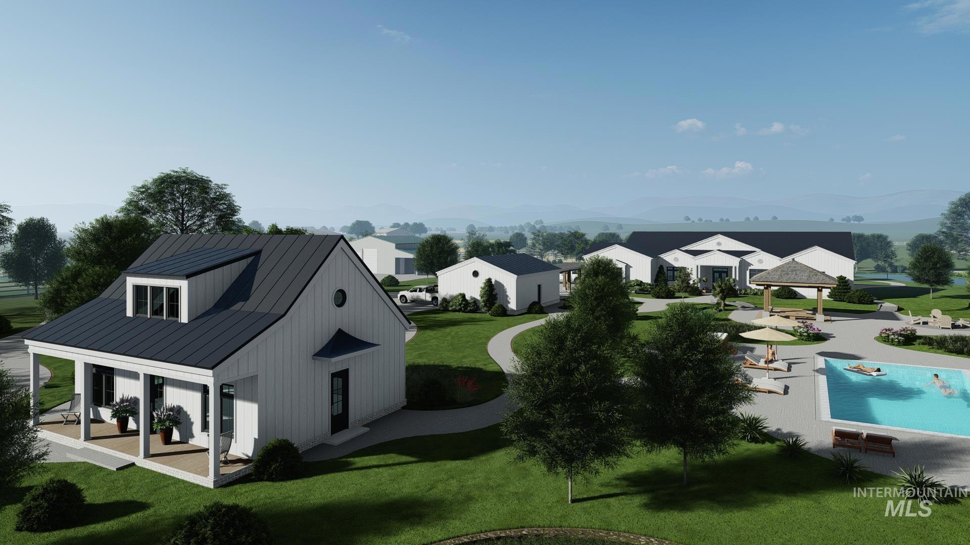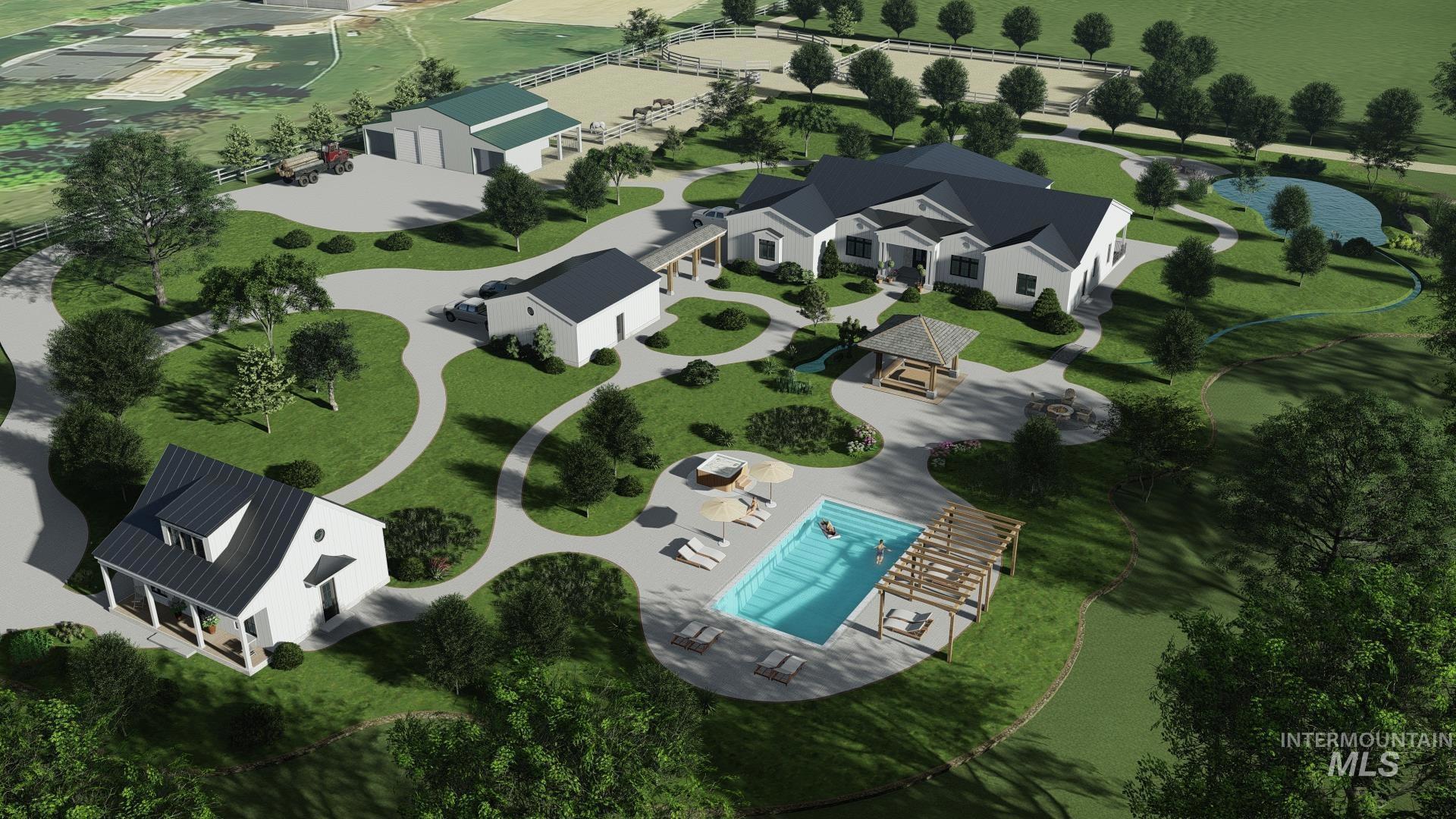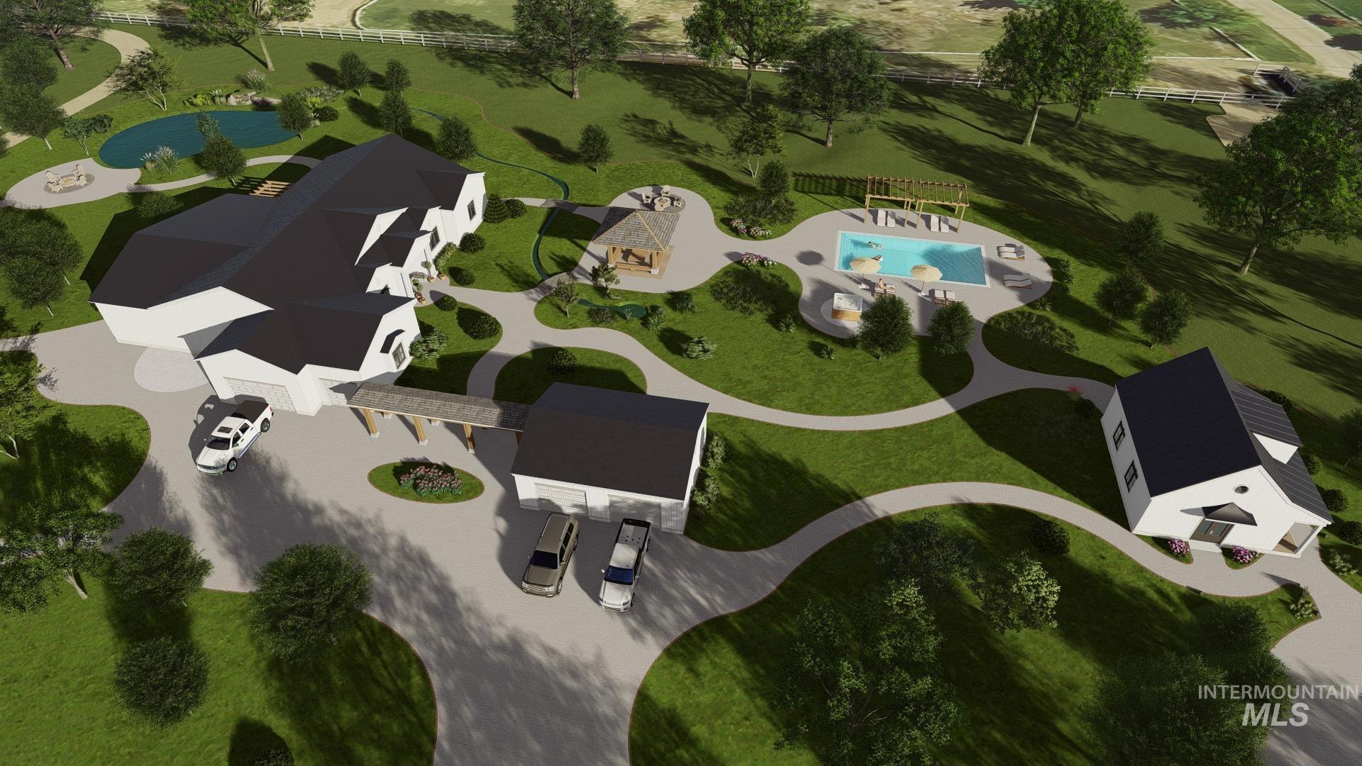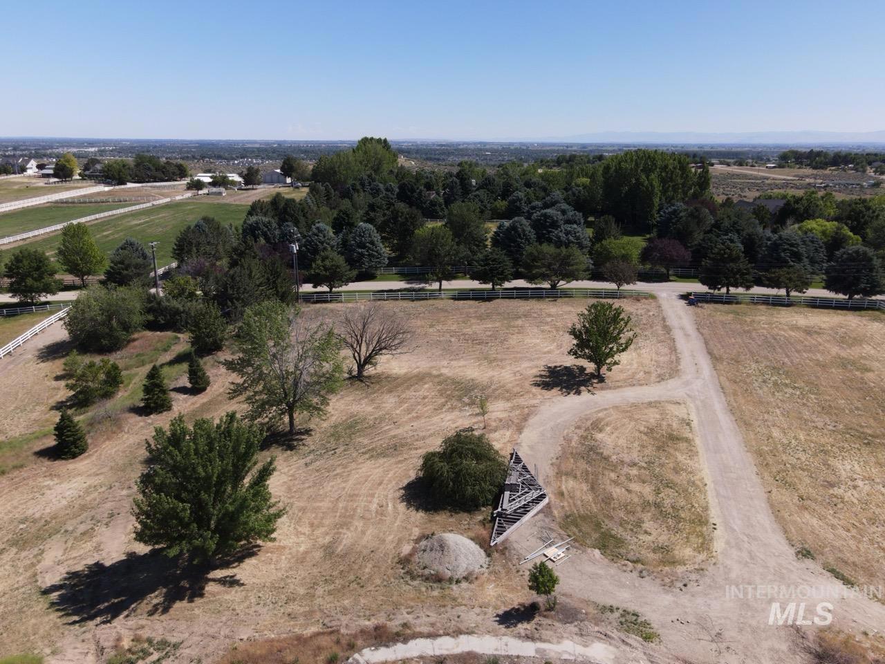 Stunning views of Bogus Basin and Squaw Butte on 10 beautiful acres of flat enough land to be entirely usable but gently rolling enough for big views! Whether you choose to build your dream estate from scratch or utilize the existing foundation, this land offers endless possibilities. Artist renderings of landscaping and building plans illustrate the potential beauty of your future home. The property is well-equipped with a well, septic system, power, and natural gas already in place. A large barn/shop with electricity and several mature trees enhance the charm of the land. The HOA provides pressurized irrigation for the entire lot, ensuring your landscaping thrives. Located in a fantastic, quiet, picturesque, equestrian-friendly neighborhood, this parcel cannot be split, offering you privacy and space in a great location within the West Ada School District. You’ll be just minutes away from grocery stores, shops, restaurants, and a planned championship golf course. Agent is owner.