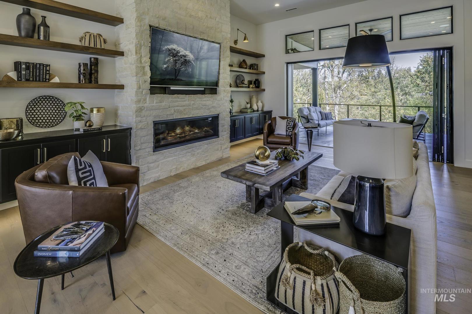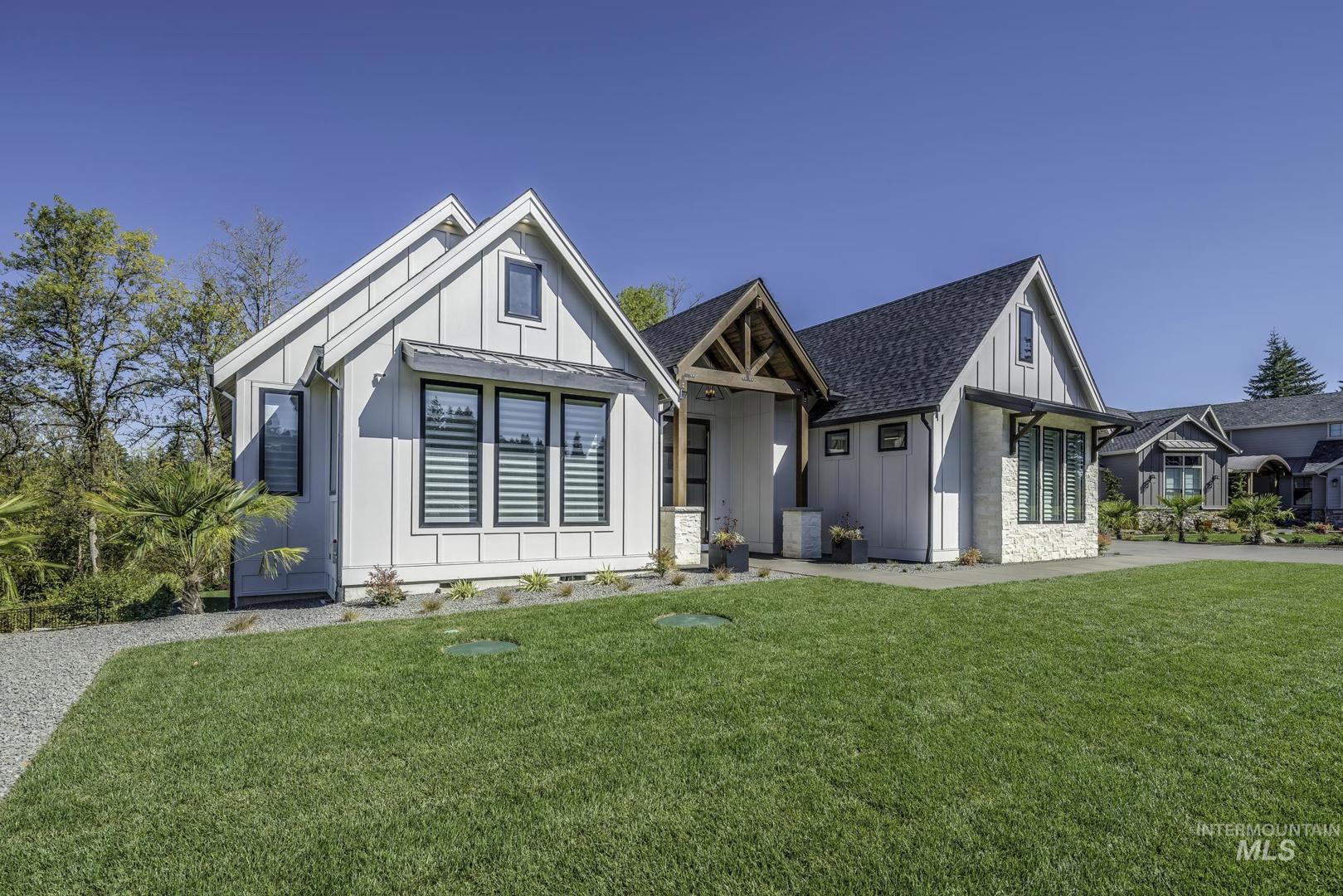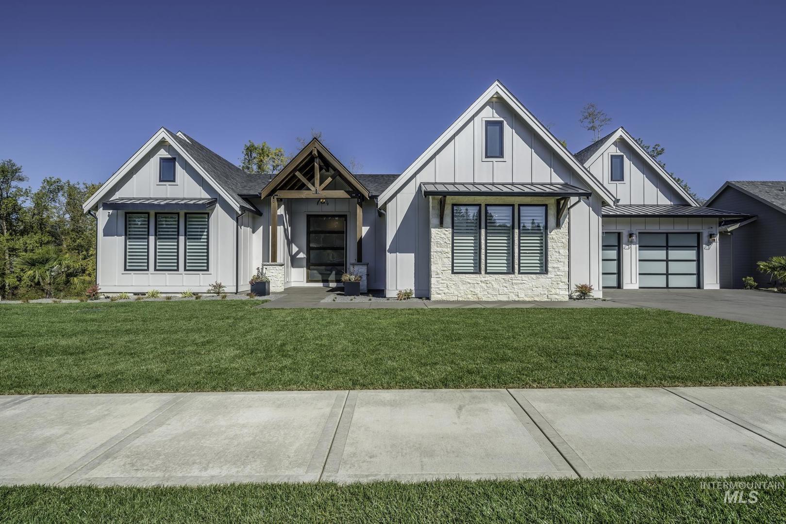 Come home to comfort in this to-be-built single-level home, with time still available to customize your dream design. Offering 4 bedrooms (or 3 plus an office) and 2.5 baths, this thoughtfully designed residence blends luxury with livability. Step through the entry where soaring 12’ ceilings lead into the heart of the home, with 10’ ceilings throughout the rest. Warm wood floors, rich stonework, built-ins, and a cozy fireplace create an inviting atmosphere. The chef’s kitchen impresses with designer finishes, an expansive fridge, double ovens, and a generous pantry. The primary suite is a true retreat, showcasing a spa-like bath with double walk-in shower, relaxing soaker tub, and a spacious walk-in closet complete with its own island. Outdoor living shines with a covered patio overlooking one of the community’s private ponds. All this just a short walk to the Boise River and minutes from downtown Middleton. *Photos not actual, and do not depict the Boat Bay that will be built on this home*.