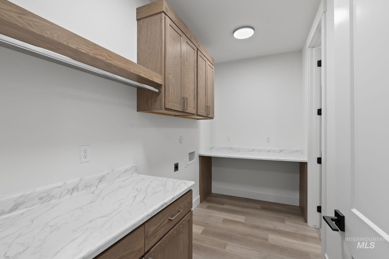 The ALPINE by Bear Homes is a single level home that comes with huge living and dining areas plus an office OR 4th bedroom. The spacious kitchen has stainless steel appliances, a large walk in pantry and all cabinetry comes with soft close hinges and dovetail cabinet drawers. The great room offers ample entertaining space that will allow guests to mingle. Gorgeous Master bath w/ walk in tile shower and convenient pass through to the laundry room. Spacious fully covered patio to sit and enjoy your evenings! Quartz & LVP surfaces throughout. Interior architecture includes 9 foot ceilings and hand textured walls. 3 Car Garage. Annual conservation fee of $60.