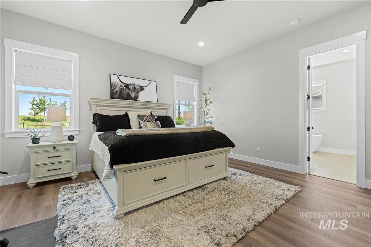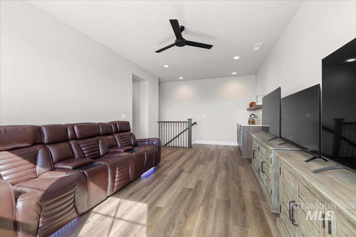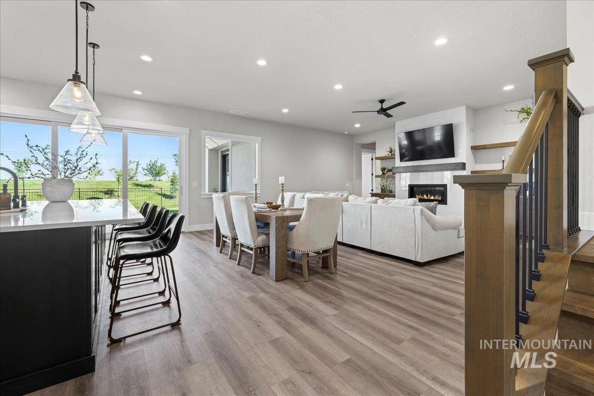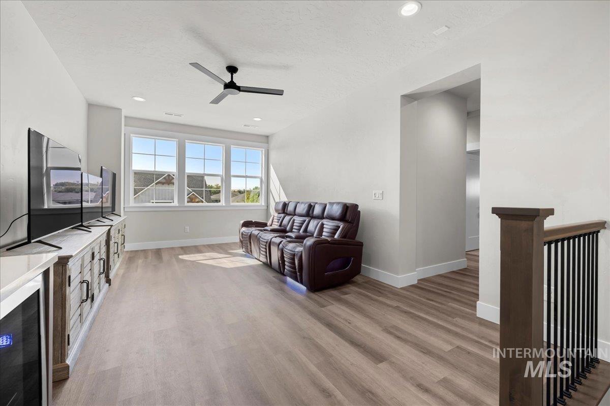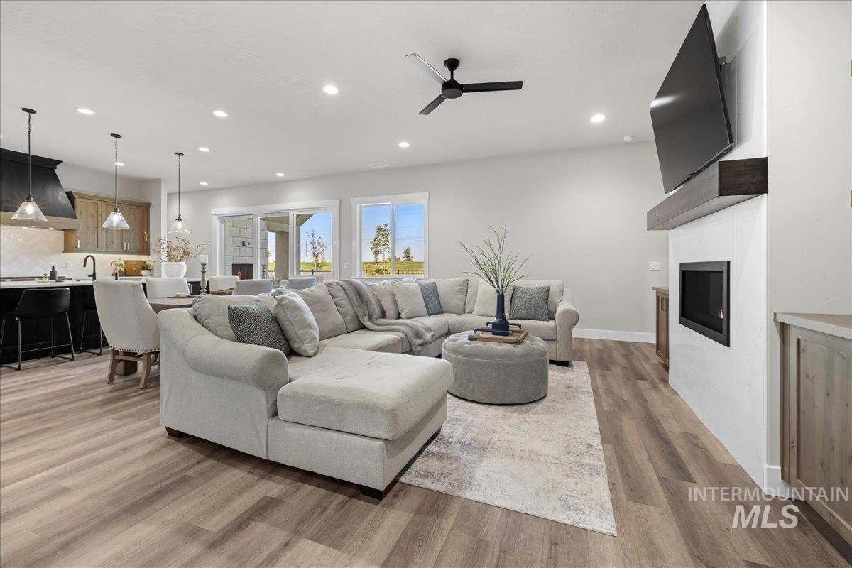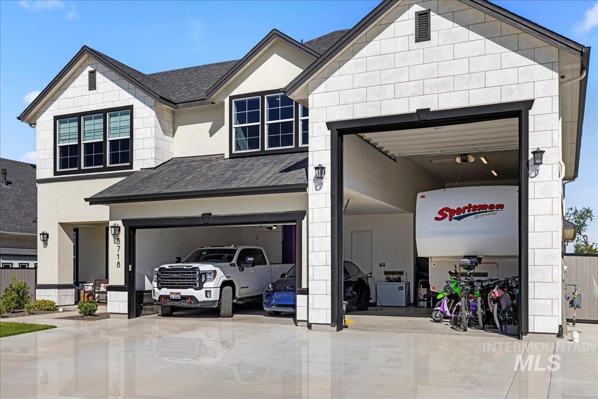 $10,000 seller credit offered with acceptable offer. Better than new and impeccably maintained, this home in sought-after Bald Eagle Point offers a builder warranty and a rare 48’ RV garage. Ideally located just steps from the Boise Greenbelt and backing to open space with no rear neighbors, it also features an extended driveway and oversized side yard (approx. 70’ x 16’) perfect for trailer, boat, or toys. The smart floor plan includes a main-level guest suite with en-suite bath, while the primary suite boasts a spa-like retreat, walk-in closet, and direct laundry access. Upstairs, enjoy an entertainment loft with built-in wet bar—complete with sink, beverage fridge, and counter space—ideal for relaxing or hosting. Outdoor living shines with a large covered patio and gas fireplace for year-round enjoyment. Community amenities include pool/spa, courts, ponds, and direct Greenbelt access. Enjoy the confidence of new construction—this home was finished in February 2025 and remains under the builder`s warranty. Save money on a Home inspection, completed in 2025.