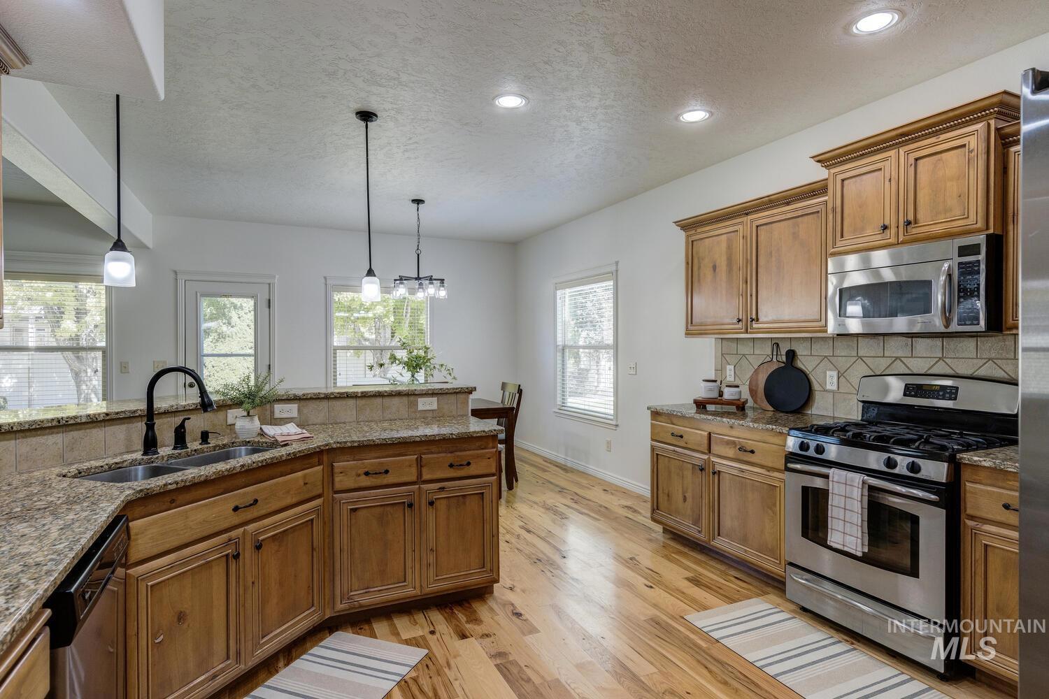 WOW! Great Deal!! Talk about pride in ownership!! This amazing home sits on nearly a half-acre lot & offers 6 bedrooms, 4 bathrooms & multiple living spaces. It feels so warm & inviting the minute you open the front door. Main level living room & an additional family room upstairs, plus an office. One of the bedrooms off Master could make a darling nursery or a secondary office. Beautiful hardwood flooring that looks new, nice high ceilings lend a large open feel. All new carpet, new exterior & interior paint plus 2 HVAC units. Kitchen has granite counters, beautiful custom cabinets, gas stove & pantry. Main level master has a soaker tub, tile shower, dual vanities & a large walk-in closet. Loads of storage throughout the home - even two upstairs bedrooms have walk-in closets. Big backyard with room for a pool, chickens, garden or pets plus a large RV pad & 4 car garage with room for all your toys & 16x12 Storage shed/shop. Best location - just 100 yds to a wonderful park. So close to I84 and all new shopping and dining!