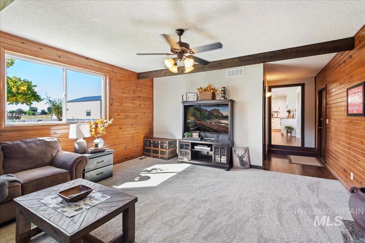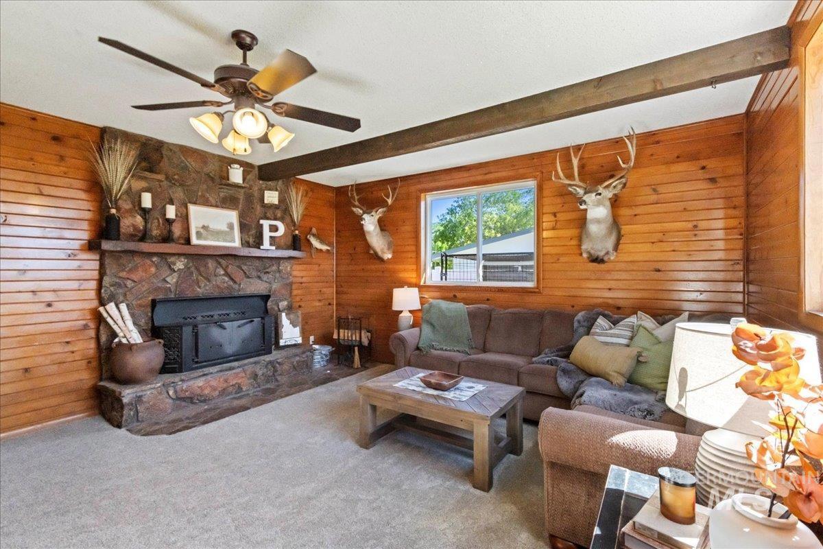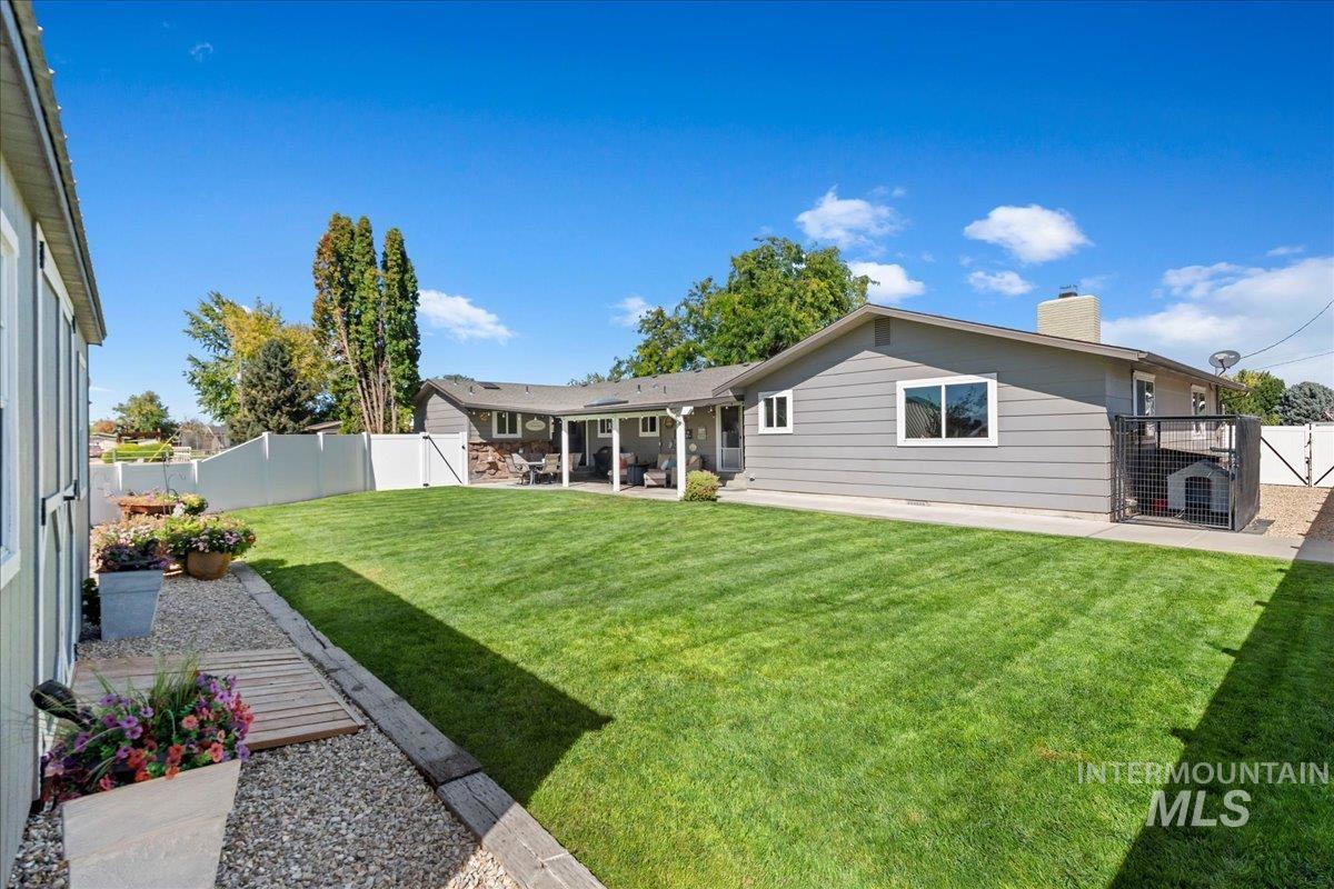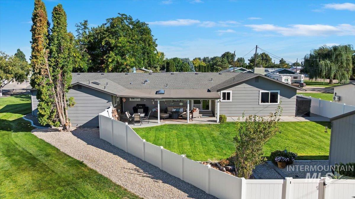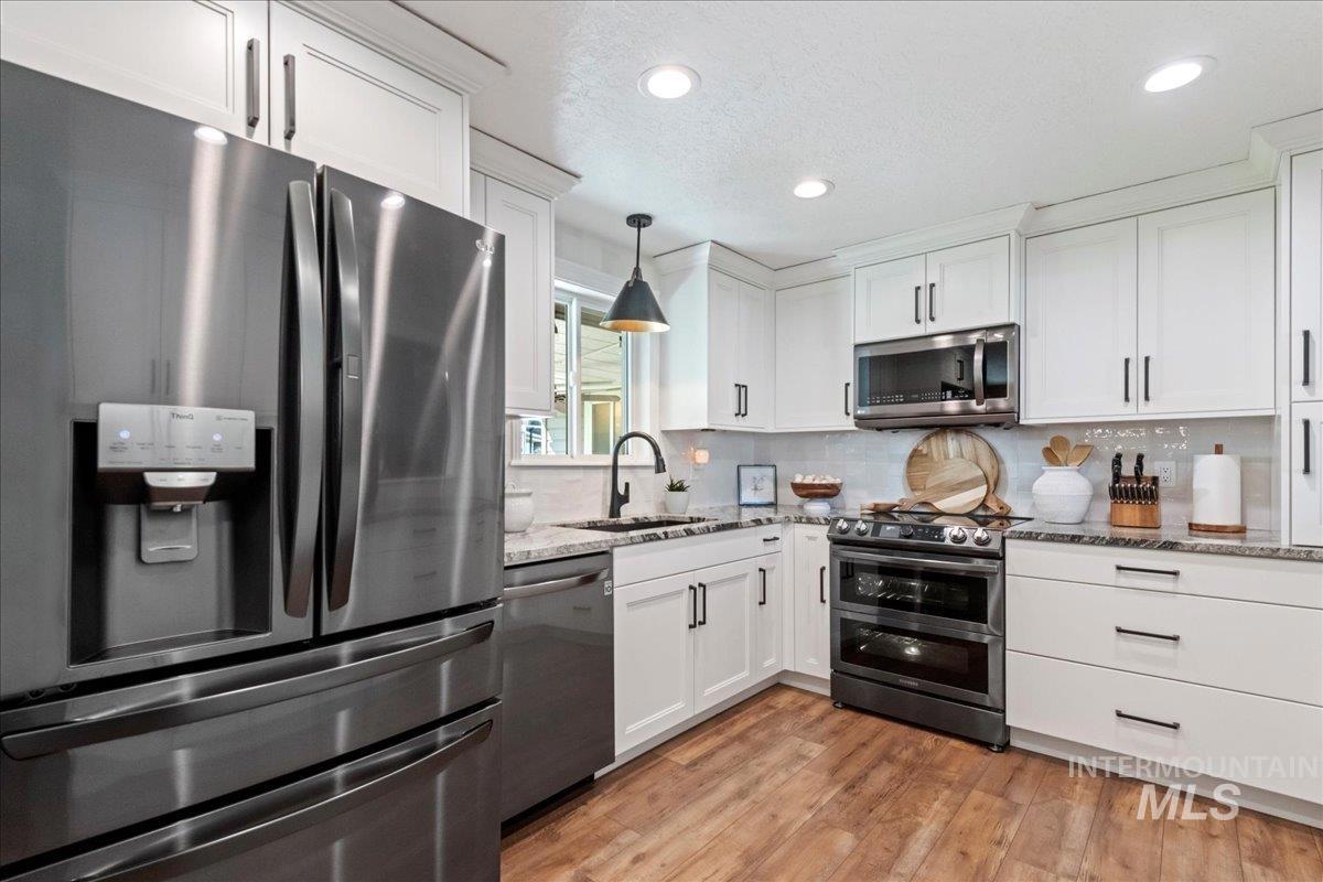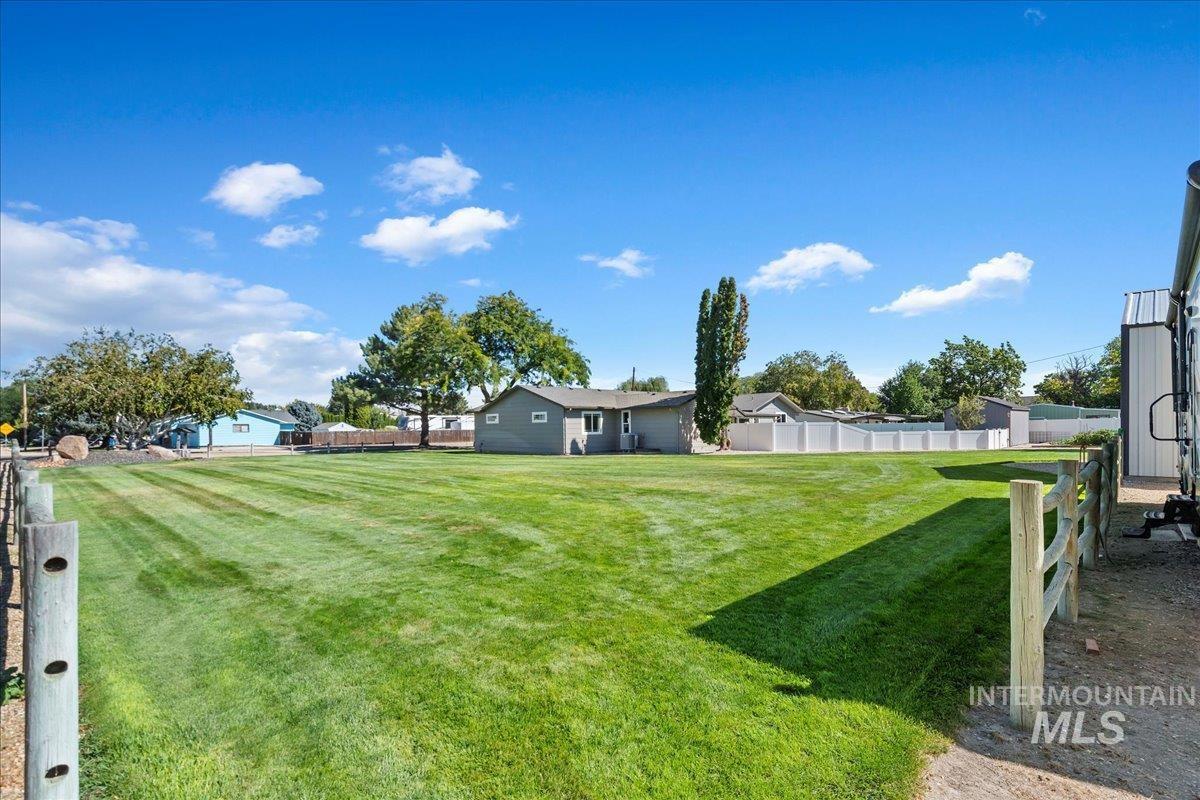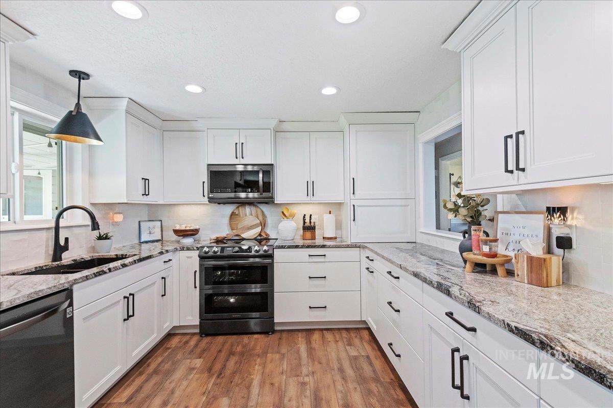Immaculate single-level home on nearly an acre. This beautifully updated 5 bedroom, 2 bath, 2314` home sits on .94 acres with fresh curb appeal, mature trees, & TONS of space. Inside, the remodeled kitchen shines with black stainless steel appliances, Gorgeous granite counters, subway tile backsplash, custom soft-close cabinetry, & modern fixtures. Enjoy two spacious living areas--one bright & open with stylish finishes, the other a cozy retreat with wood paneled walls, & a wood burning insert surrounded by stone. The large primary suite offers dual vanity, walk-in shower, walk-in closet & sliding doors to the covered patio. Additional highlights include a dream laundry room with sink, storage, & pantry. Step outside to a fully fenced back yard, 16x20 storage shed, garden space, & covered patio plumbed for a hot tub with 110 power. The 30x40 SHOP features 220 service, insulated walls, cement floor, Wi-Fi compatible automatic openers & a dedicated 30-amp RV plug. Bring cars, RVs, Boats....