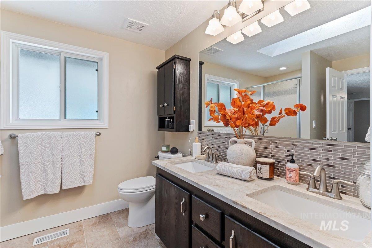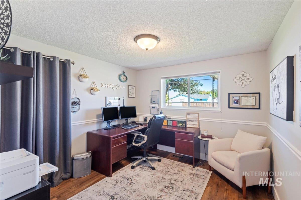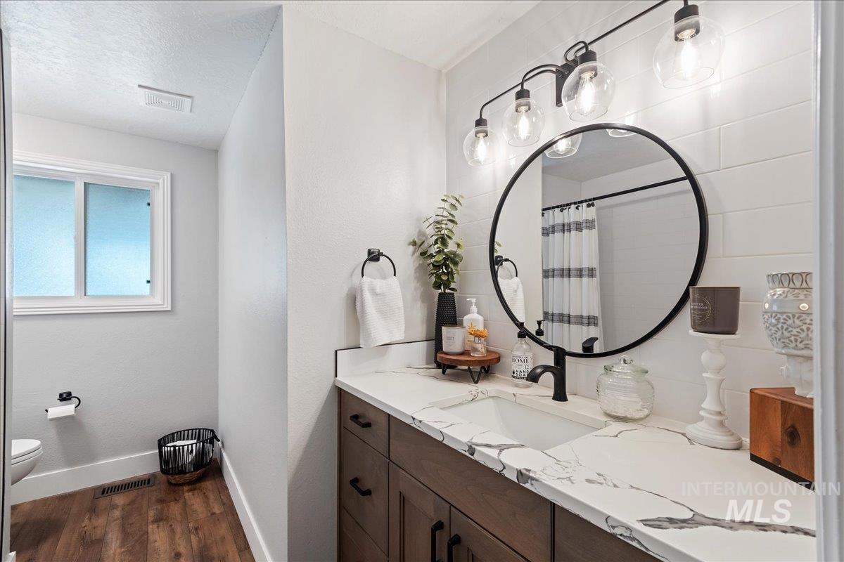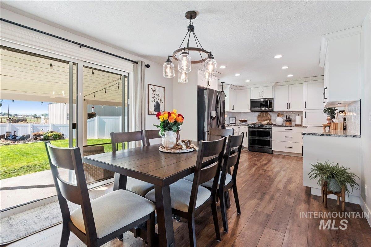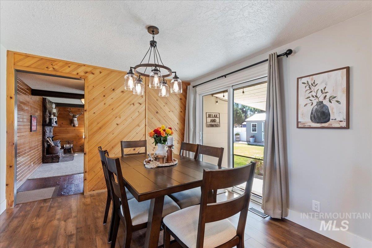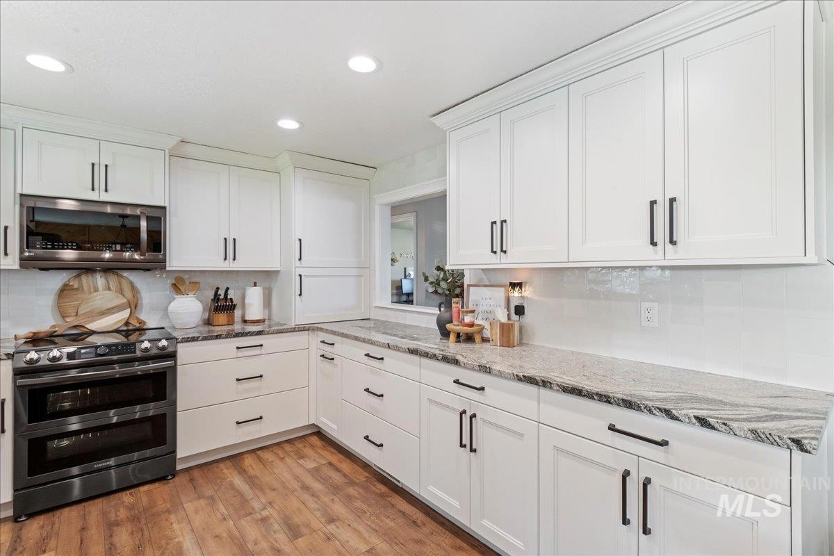 Immaculate single-level home on nearly an acre. This beautifully updated 5 bedroom, 2 bath, 2314` home sits on .94 acres with fresh curb appeal, mature trees, & TONS of space. Inside, the remodeled kitchen shines with black stainless steel appliances, Gorgeous granite counters, subway tile backsplash, custom soft-close cabinetry, & modern fixtures. Enjoy two spacious living areas--one bright & open with stylish finishes, the other a cozy retreat with wood paneled walls, & a wood burning insert surrounded by stone. The large primary suite offers dual vanity, walk-in shower, walk-in closet & sliding doors to the covered patio. Additional highlights include a dream laundry room with sink, storage, & pantry. Step outside to a fully fenced back yard, 16x20 storage shed, garden space, & covered patio plumbed for a hot tub with 110 power. The 30x40 SHOP features 220 service, insulated walls, cement floor, Wi-Fi compatible automatic openers & a dedicated 30-amp RV plug. Bring cars, RVs, Boats....