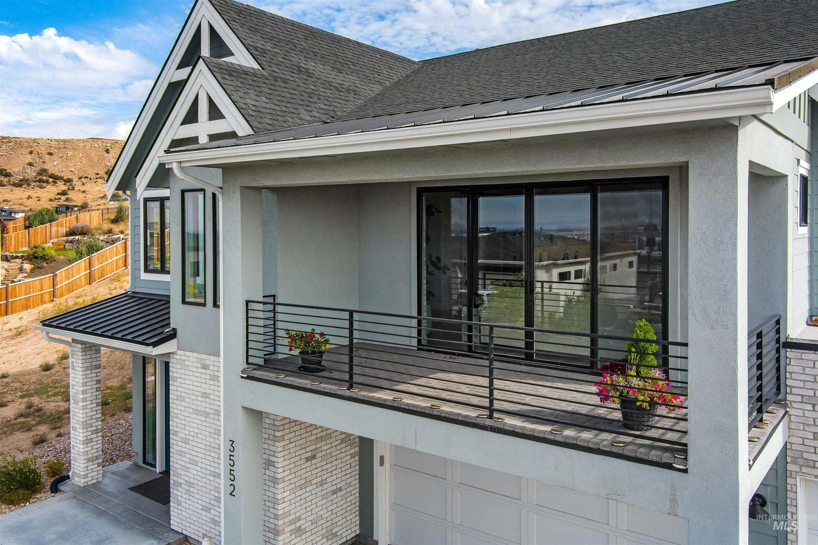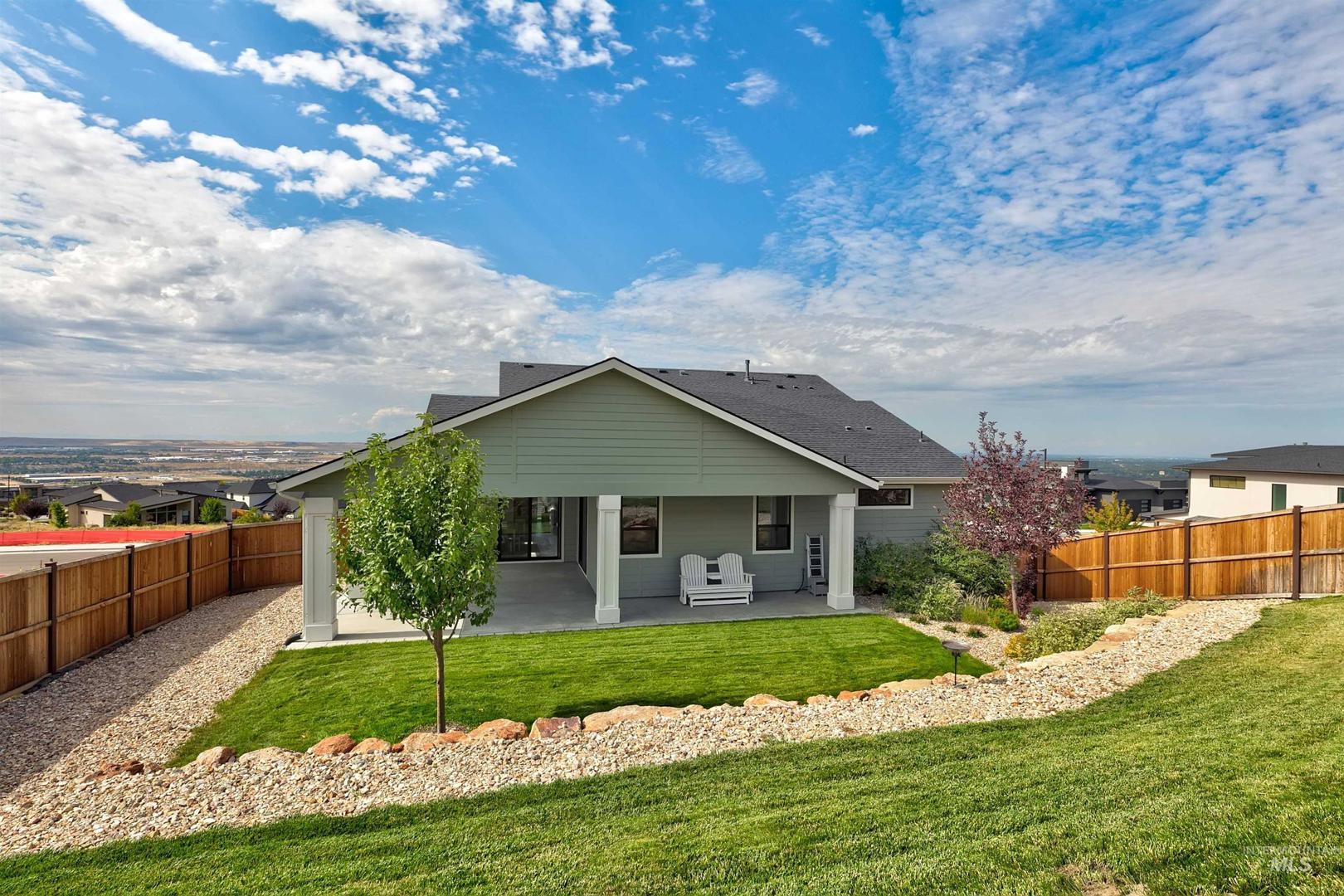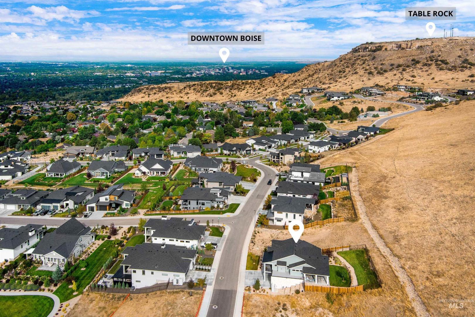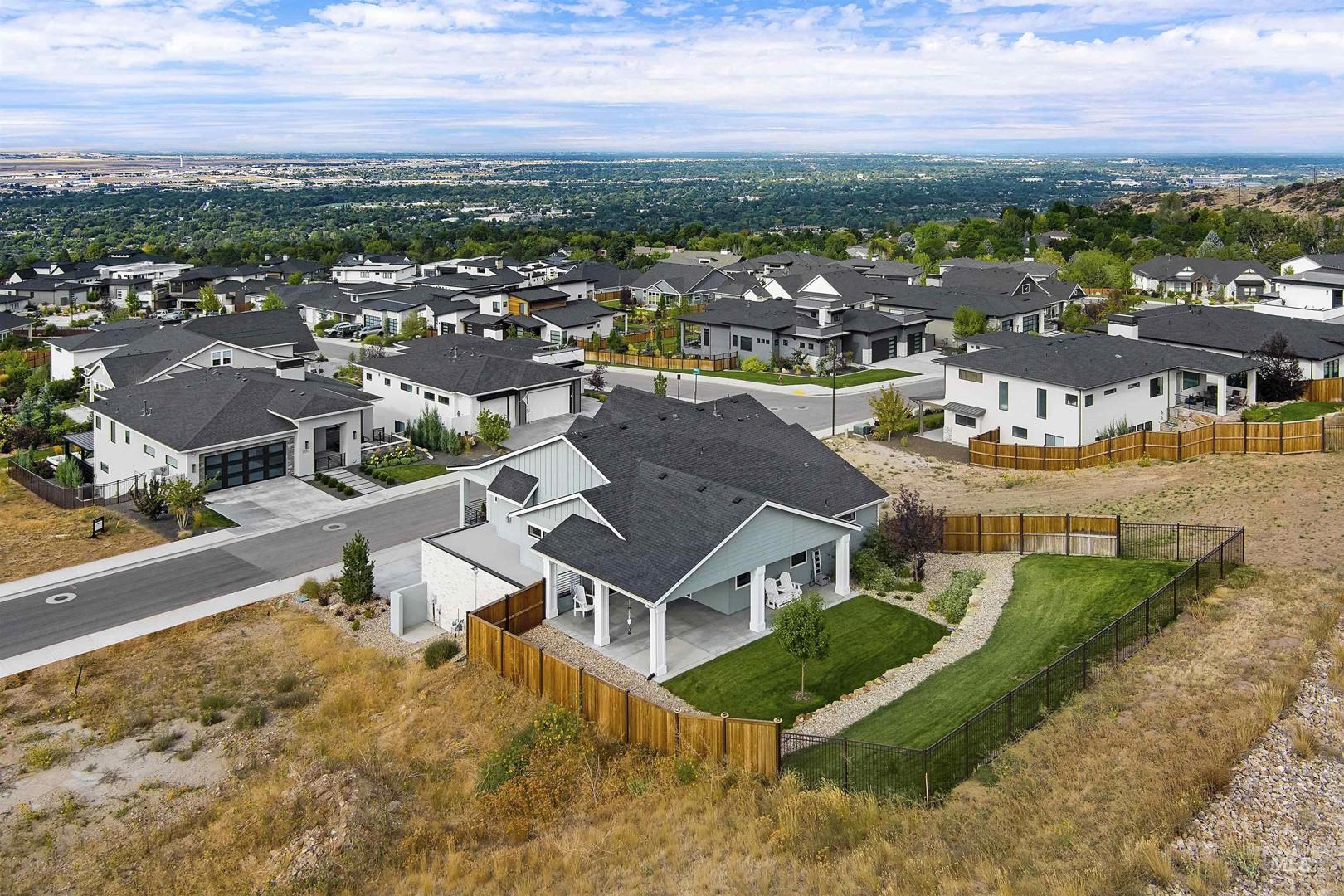 Stunning Todd Campbell custom home in Boulder Point, perfectly positioned below Table Rock with no back neighbors. This thoughtfully designed, perfect condition home blends modern elegance with timeless craftsmanship. A vaulted great room welcomes you into an airy open floor plan that flows seamlessly to a covered patio and spacious backyard that embraces all the foothill beauty. To the south, a second covered deck offers sweeping views of Barber Valley. The bright kitchen is a showpiece, featuring Thermador appliances, full-height cabinetry, and a sprawling island perfect for gathering. Upstairs, a secure primary suite and office create a private retreat, while the lower level is built for entertaining with a large family room, two bedrooms, and a full bath - ideal for guests or multi-generational living. Located in the Boise foothills near hiking and biking trails, the Boise River, Greenbelt, Micron, Lucky Peak, and downtown. This home offers a perfect blend of style, privacy, recreation, and modern luxury.