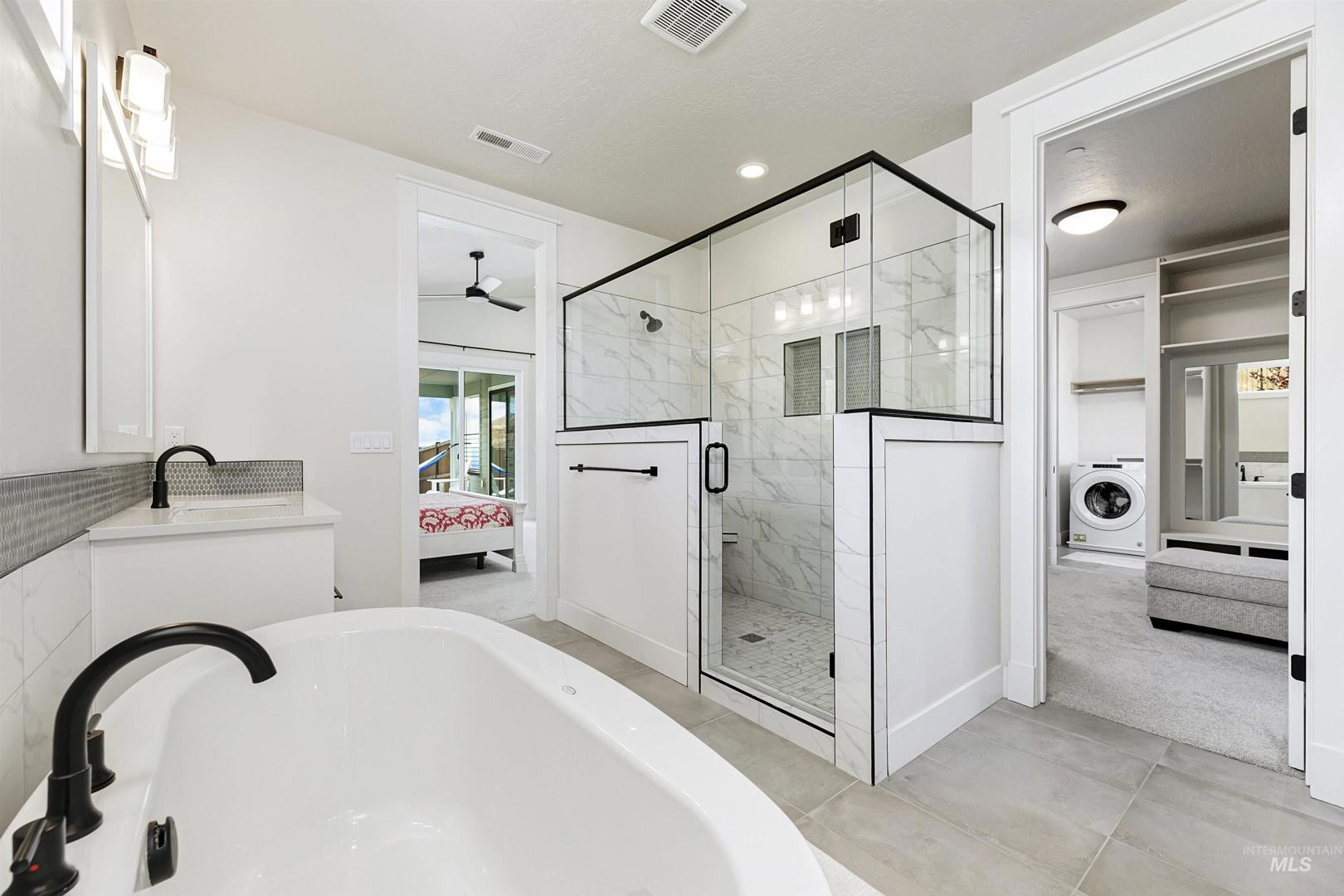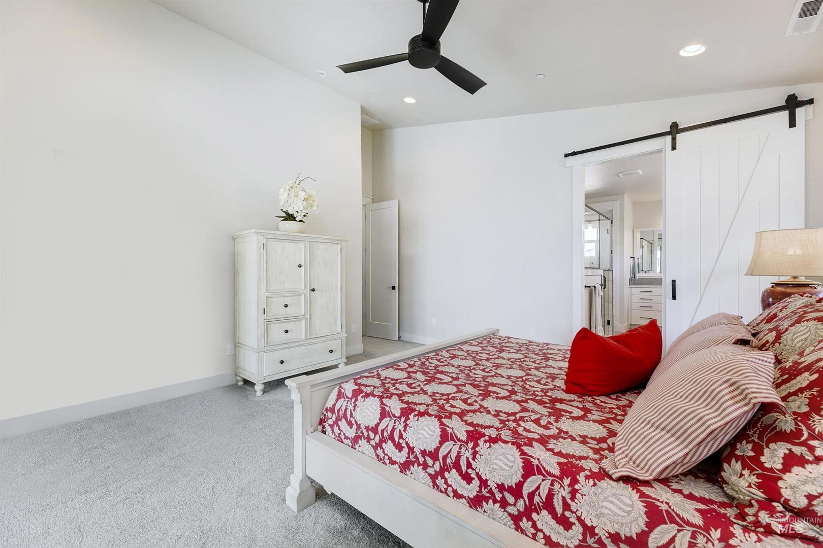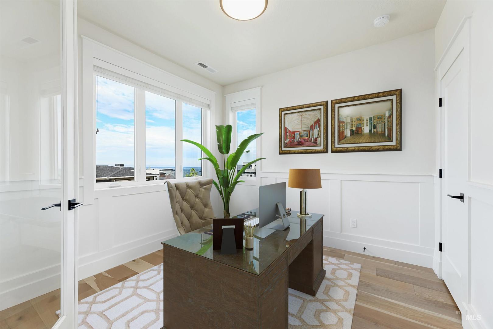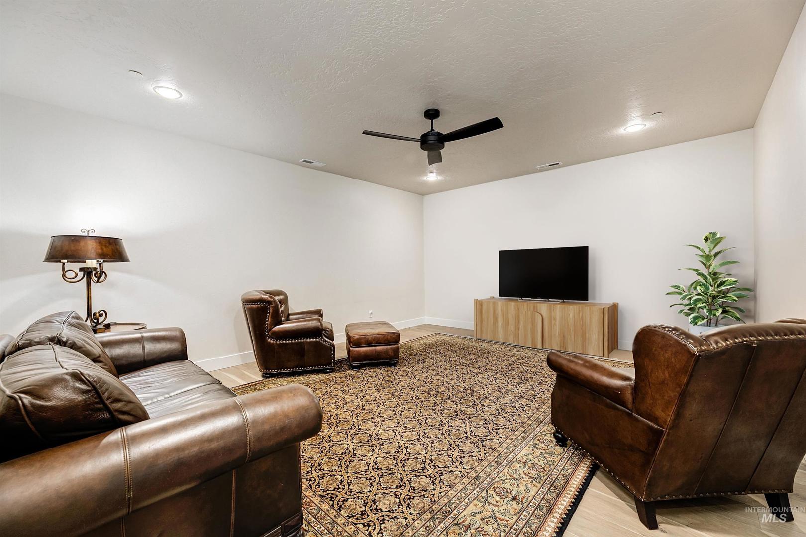 Stunning Todd Campbell custom home in Boulder Point, perfectly positioned below Table Rock with no back neighbors. This thoughtfully designed, perfect condition home blends modern elegance with timeless craftsmanship. A vaulted great room welcomes you into an airy open floor plan that flows seamlessly to a covered patio and spacious backyard that embraces all the foothill beauty. To the south, a second covered deck offers sweeping views of Barber Valley. The bright kitchen is a showpiece, featuring Thermador appliances, full-height cabinetry, and a sprawling island perfect for gathering. Upstairs, a secure primary suite and office create a private retreat, while the lower level is built for entertaining with a large family room, two bedrooms, and a full bath - ideal for guests or multi-generational living. Located in the Boise foothills near hiking and biking trails, the Boise River, Greenbelt, Micron, Lucky Peak, and downtown. This home offers a perfect blend of style, privacy, recreation, and modern luxury.