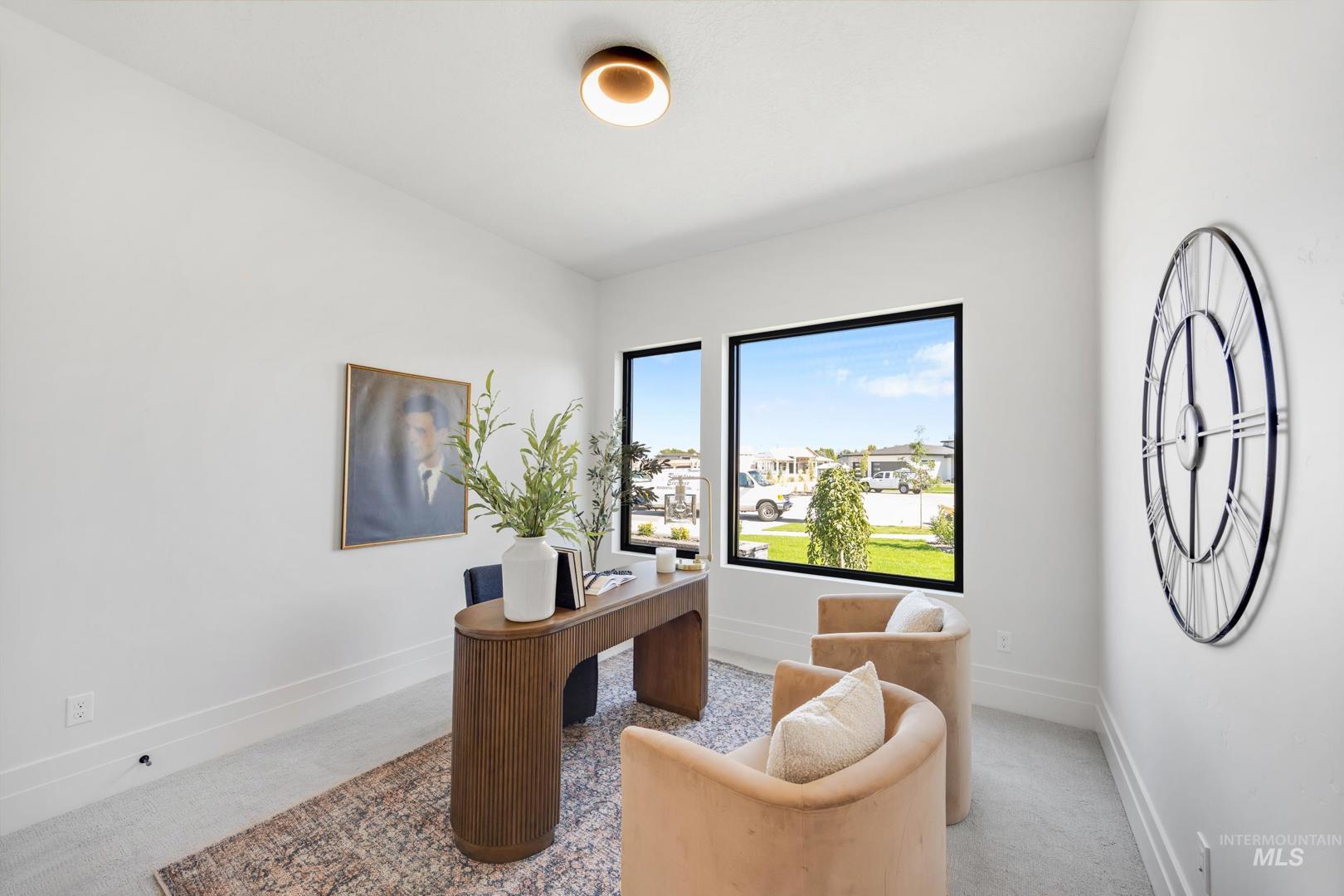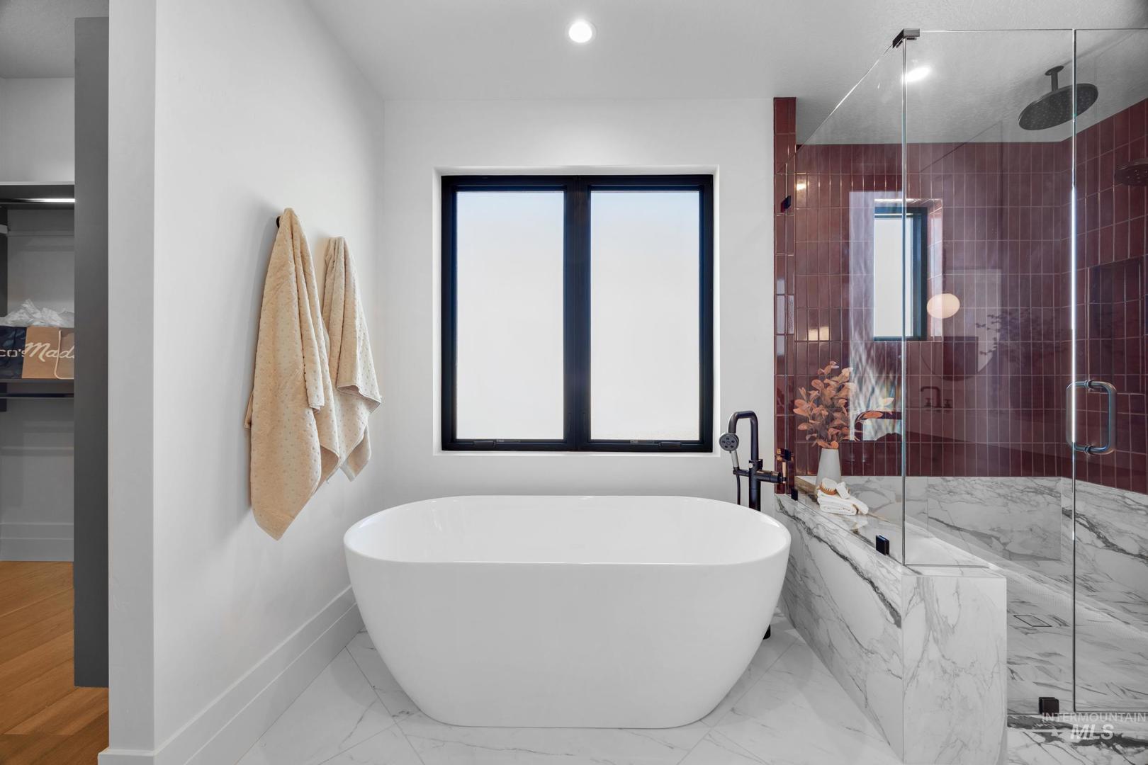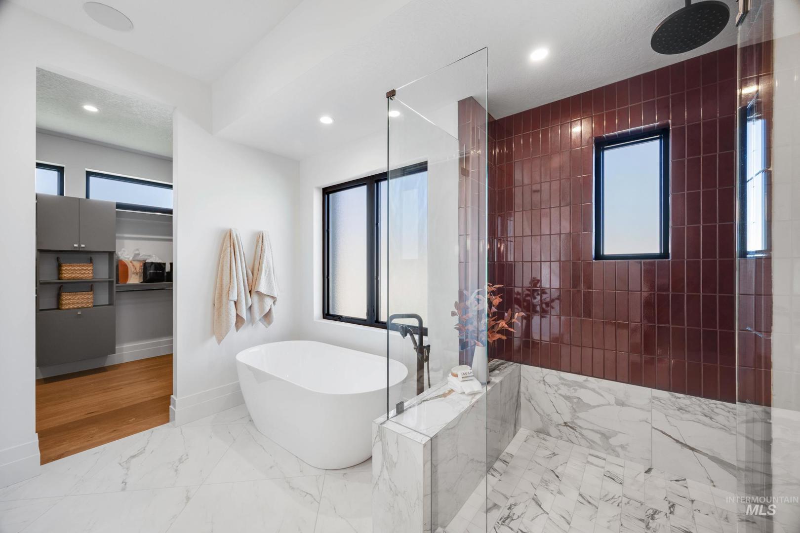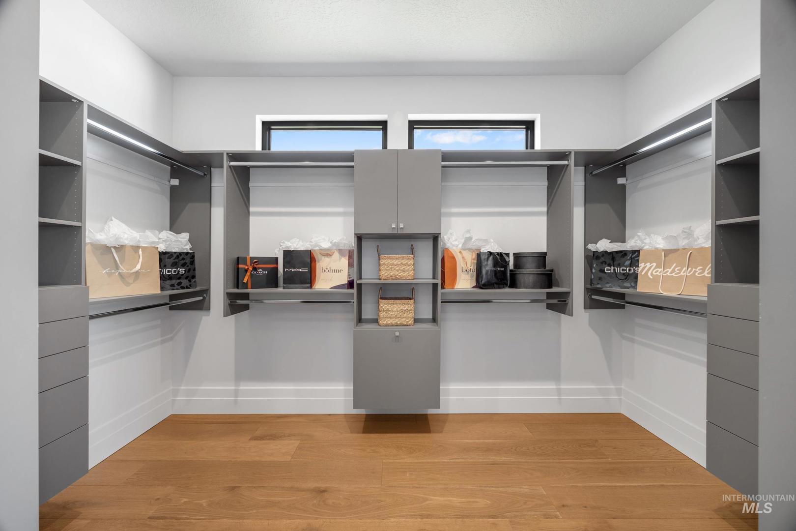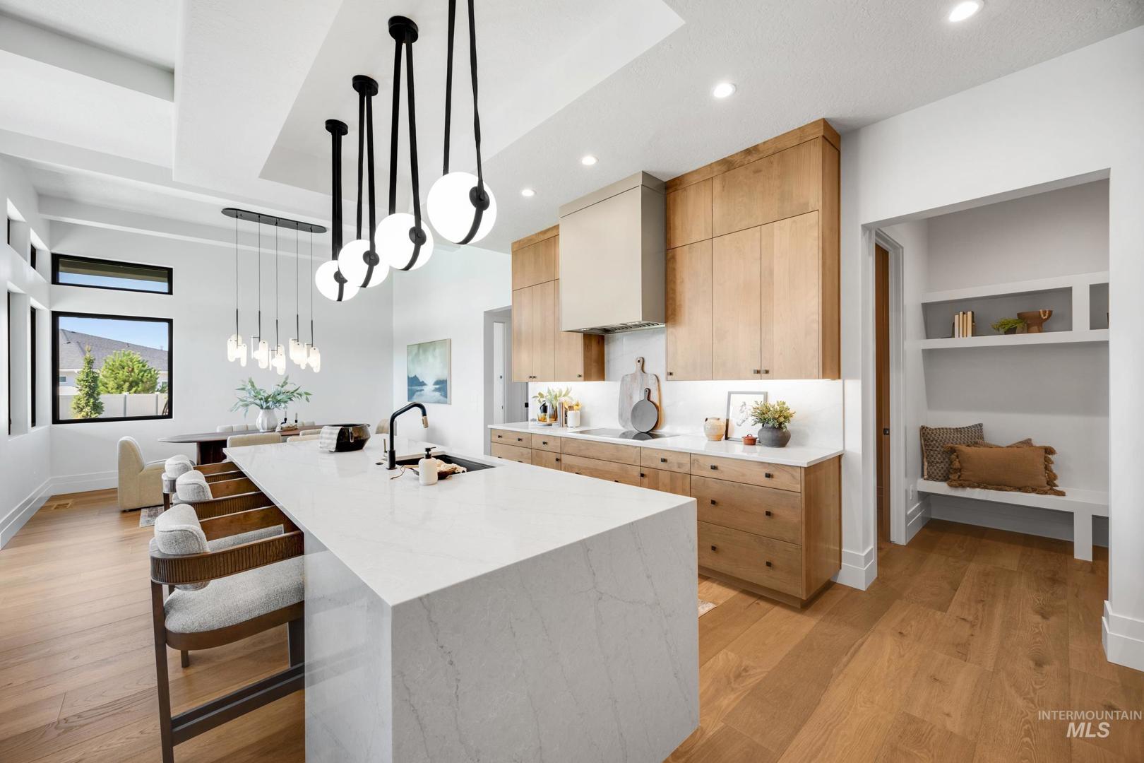 Open House, Saturday, November 1 from 12-3pm! 2025 Fall Parade of Home! Exceptional custom home by Zach Evans Construction in Eagle, ID’s serene Whitehurst Neighborhood. This stunning single-level retreat on a tranquil cul-de-sac spans a third acre, featuring 4 bedrooms, a flex room, and soaring beamed ceilings in the inviting great room. Flooded with natural light from expansive windows, it overlooks a picturesque southern backyard, exuding a warm, modern-rustic vibe with its elegant wood accents, sleek finishes, and cozy yet sophisticated ambiance—perfect for those who value a blend of natural beauty and contemporary style. The gourmet kitchen boasts a generous waterfall island with premium appliances, ideal for culinary enthusiasts, while the private master wing offers corner windows, a spa-like bathroom with a tiled shower and standalone tub, and a luxurious custom closet, appealing to those seeking a personal sanctuary. A guest suite with ensuite bath, two additional bedrooms with a shared bath, and a spacious garage with boat bay.