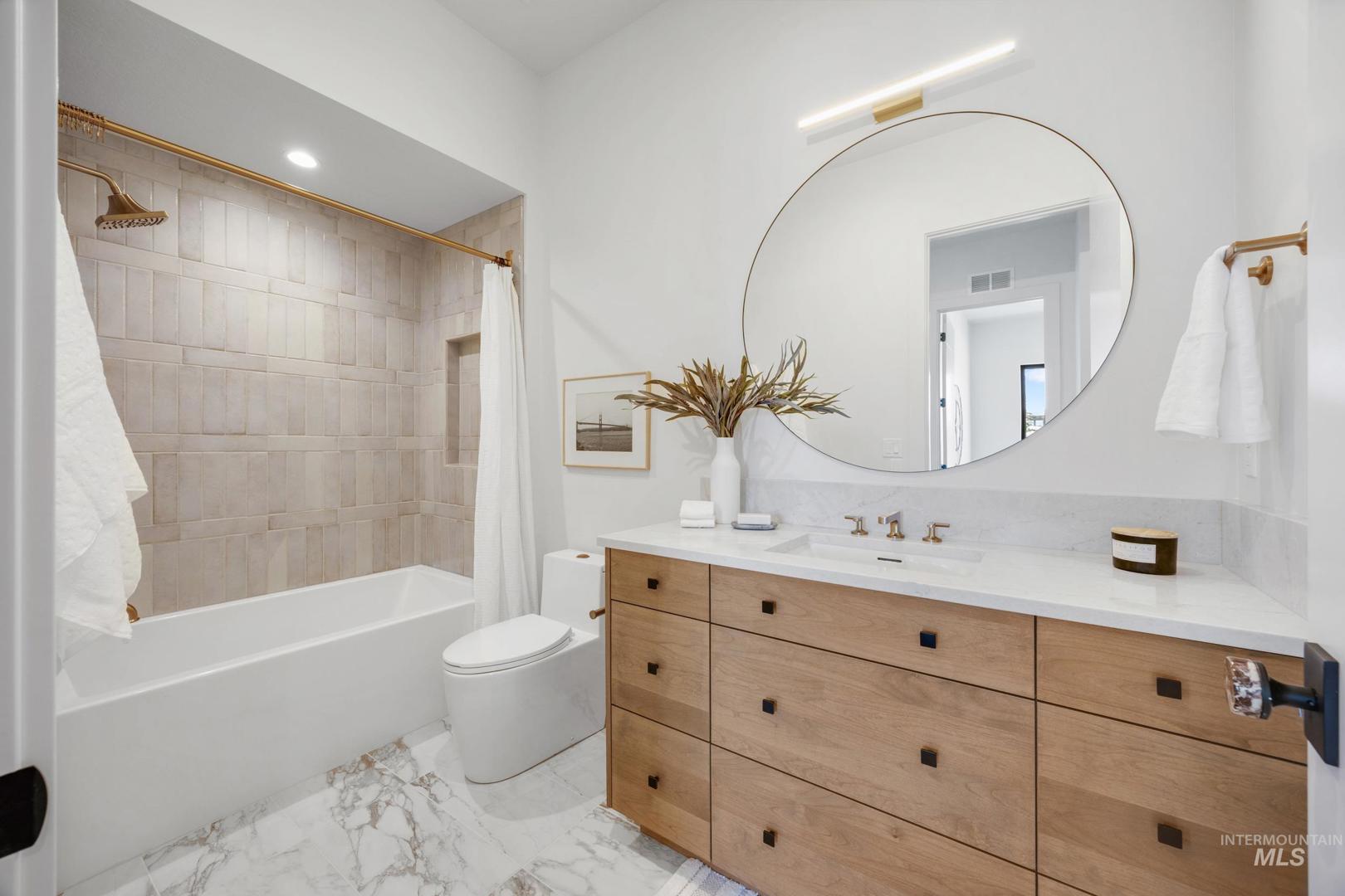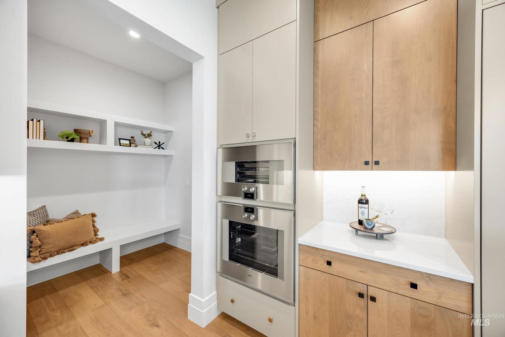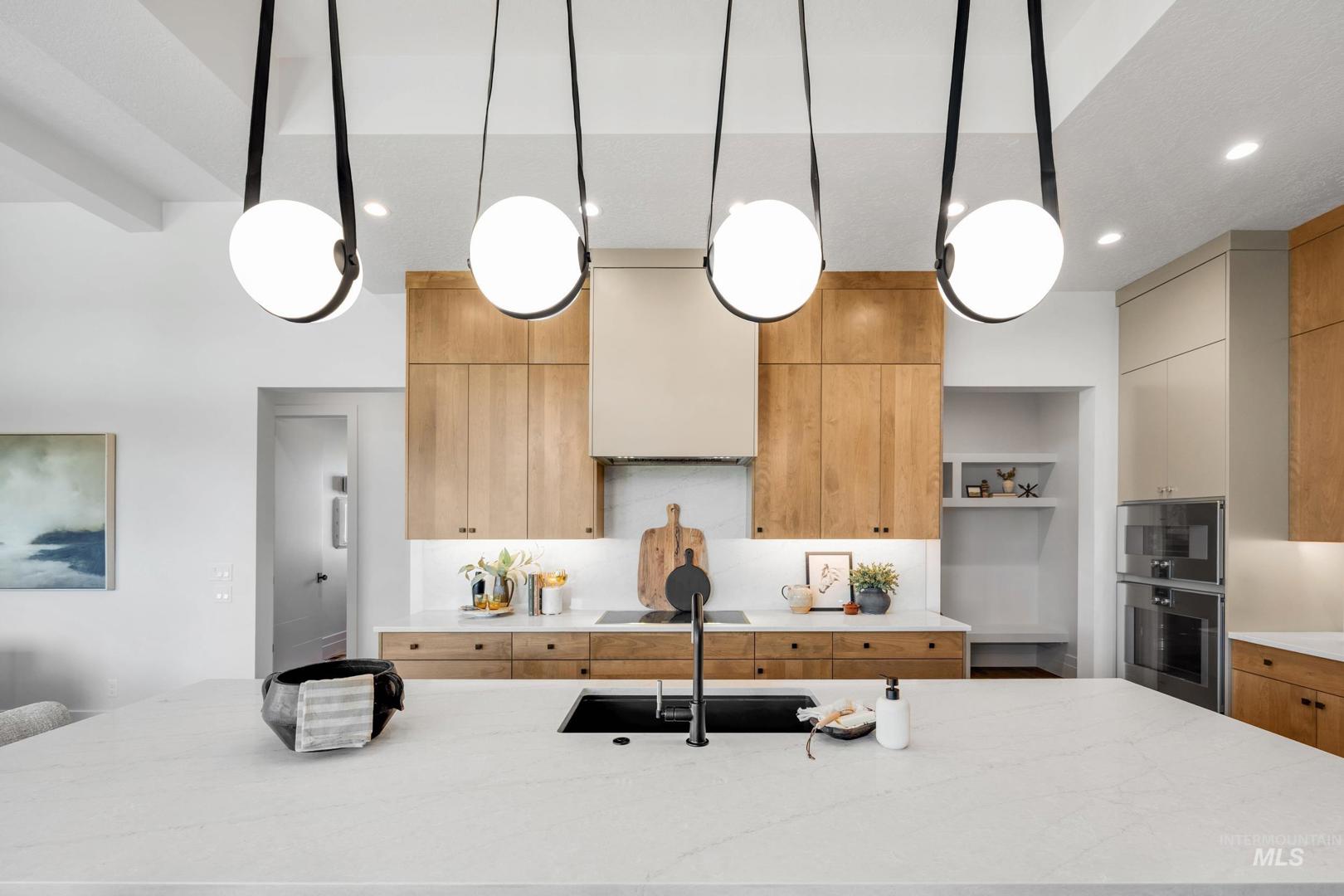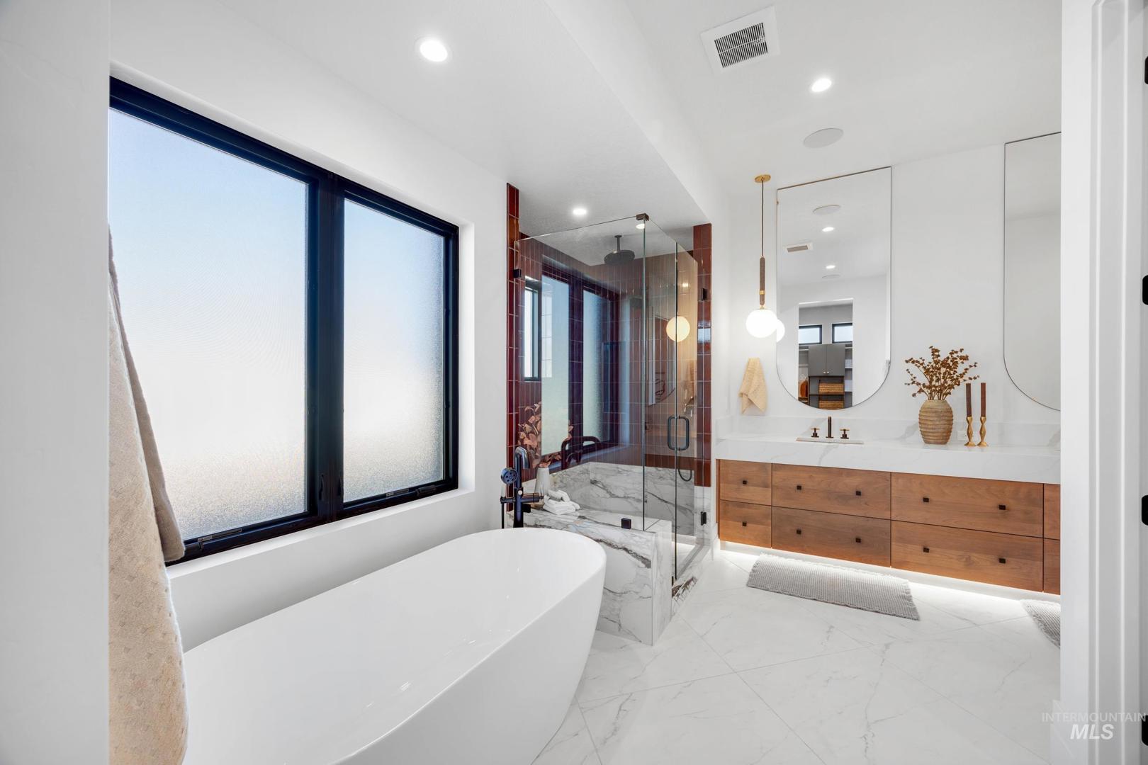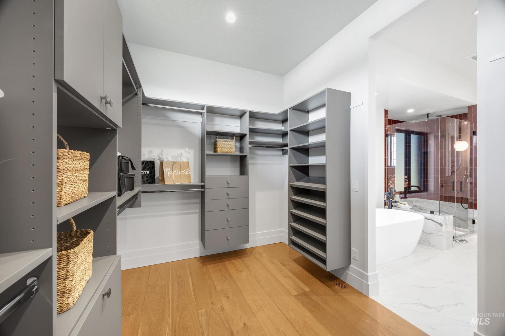 Open House, Saturday, November 1 from 12-3pm! 2025 Fall Parade of Home! Exceptional custom home by Zach Evans Construction in Eagle, ID’s serene Whitehurst Neighborhood. This stunning single-level retreat on a tranquil cul-de-sac spans a third acre, featuring 4 bedrooms, a flex room, and soaring beamed ceilings in the inviting great room. Flooded with natural light from expansive windows, it overlooks a picturesque southern backyard, exuding a warm, modern-rustic vibe with its elegant wood accents, sleek finishes, and cozy yet sophisticated ambiance—perfect for those who value a blend of natural beauty and contemporary style. The gourmet kitchen boasts a generous waterfall island with premium appliances, ideal for culinary enthusiasts, while the private master wing offers corner windows, a spa-like bathroom with a tiled shower and standalone tub, and a luxurious custom closet, appealing to those seeking a personal sanctuary. A guest suite with ensuite bath, two additional bedrooms with a shared bath, and a spacious garage with boat bay.