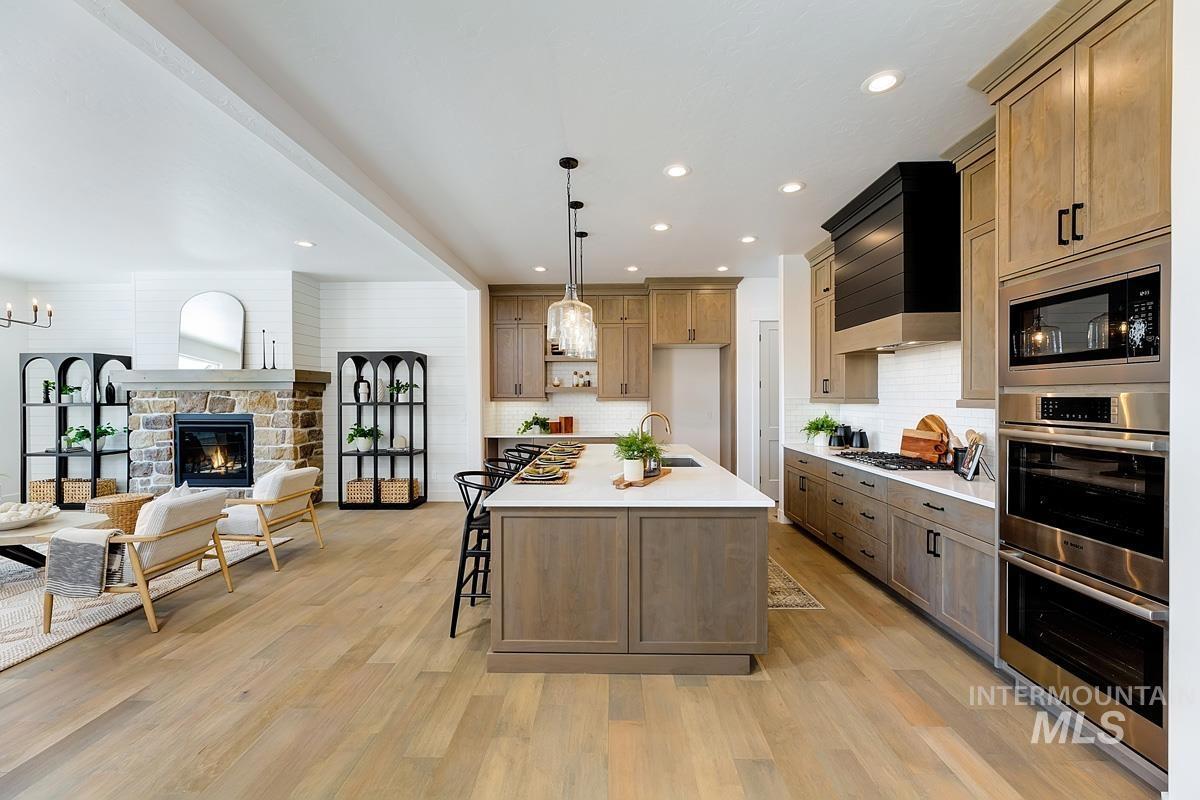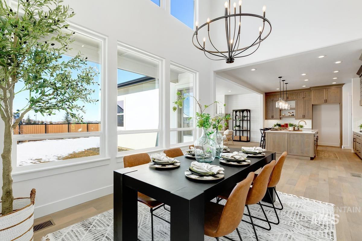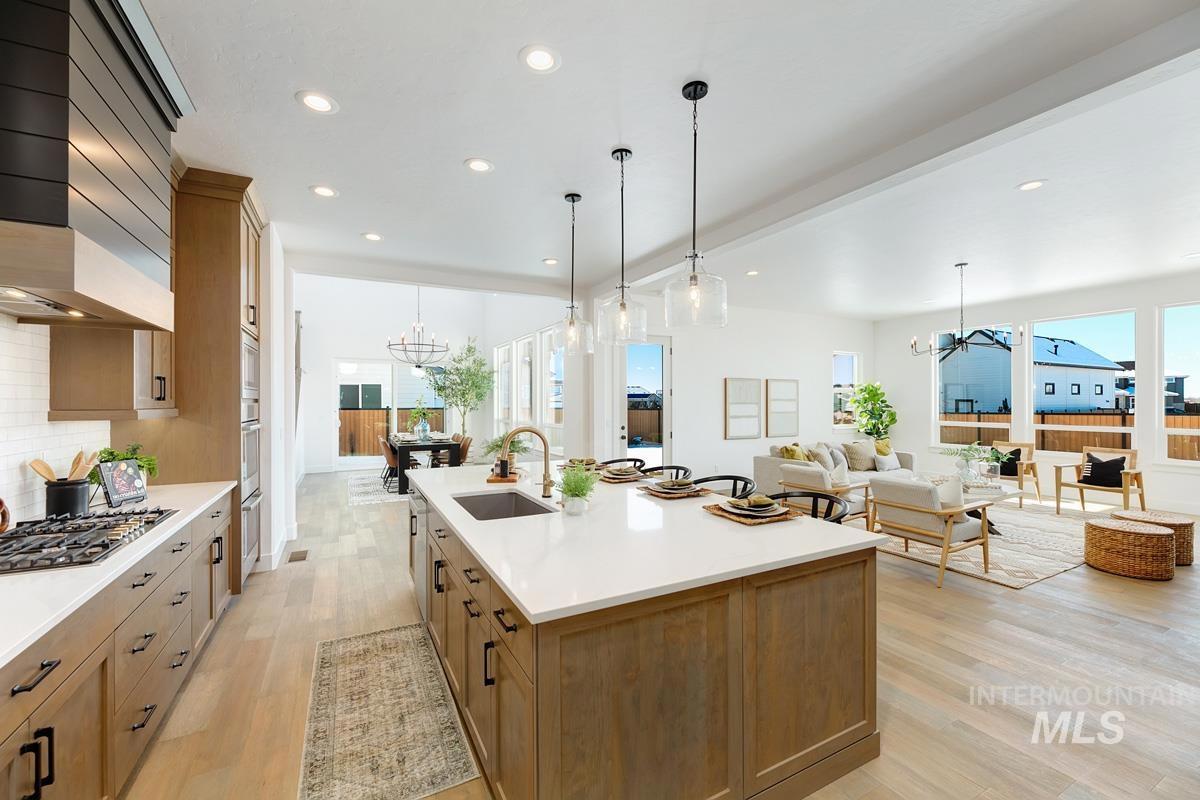 Ask about 3.49% interest rate with a 3-2-1 buydown on this home. You’ll love this fully-upgraded Highland floorplan with expanded rooms, extra bathrooms, and high-end finishes. Just inside, you’re greeted by high ceilings and a spacious and open entryway that guides you into the home’s main living areas. The massive great room features a statement fireplace that’s complemented by several west-facing windows, while the chef`s kitchen includes tall cabinets, ample storage, and a large island that enjoys plenty of natural light. The main-level guest suite offers private garage entry, upgraded bath, and a nearby office with access to the wraparound patio. Upstairs, the oversized primary suite offers luxury finishes, including a free-standing tub, tiled shower, and a large walk-in closet. Coming soon, the River Park Estates Clubhouse will offer pickleball, swimming, and more, all within walking distance of the Boise River. Home is ready now.