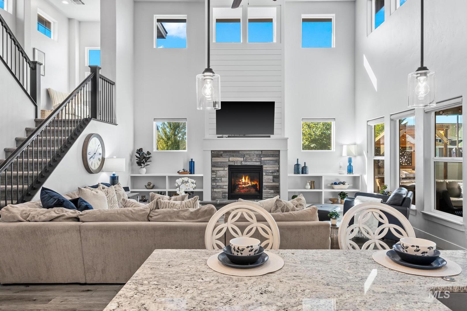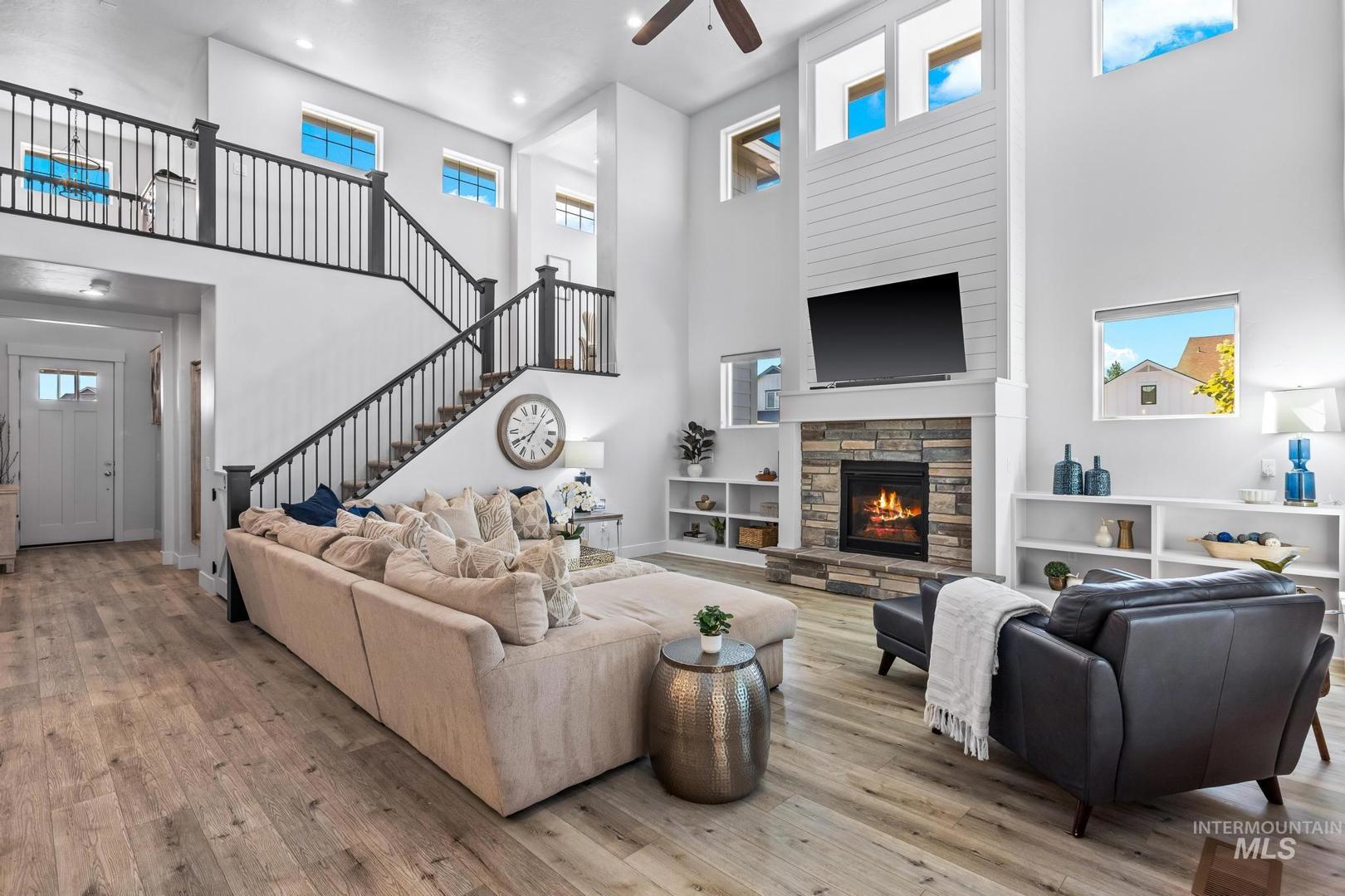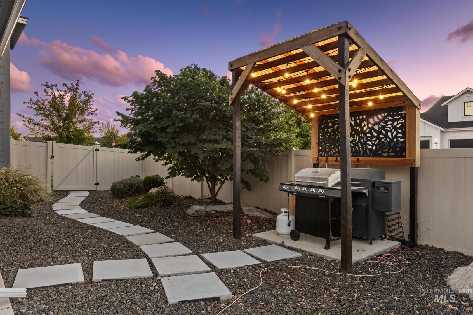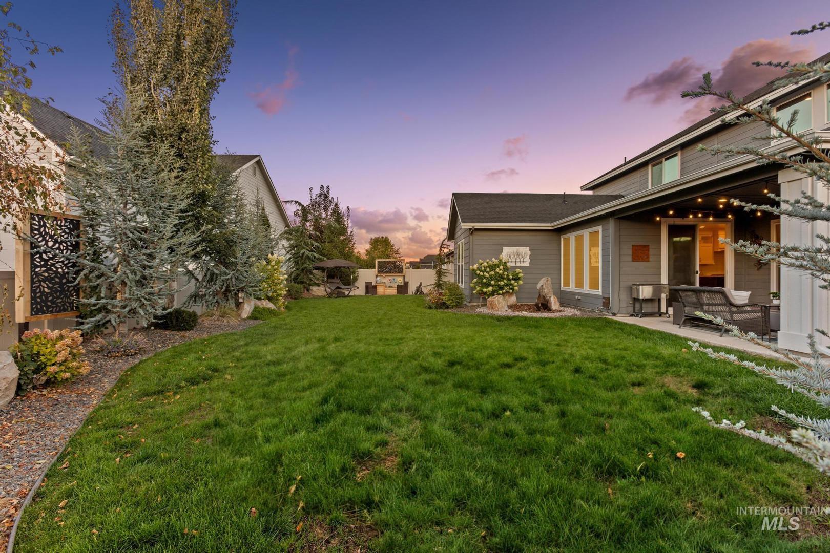 Welcome to the sought-after Houston plan by Boise Hunter Homes, where luxury and location come together. A dramatic two-story entry opens to a sunlit great room with soaring windows and an open layout designed for gathering. The gourmet kitchen features an oversized island perfect for entertaining, while the main-level primary suite offers comfort and privacy. Upstairs includes three bedrooms, two bathrooms, and a spacious loft/bonus. The main level also features a versatile office/guest room with closet, full bath access, and a hidden “secret room” for play or storage. Outdoors, the backyard has been transformed into an entertainer’s paradise with lush landscaping, a tranquil water rock feature, built-in Traeger, garden beds, and a storage shed. The 4-car garage with epoxy floors adds both function and style. Ideally located near the new Albertsons Marketplace, Discovery Park, and YMCA in West Ada School District. Community amenities include 2 infinity pools, playgrounds, basketball courts, and walking paths