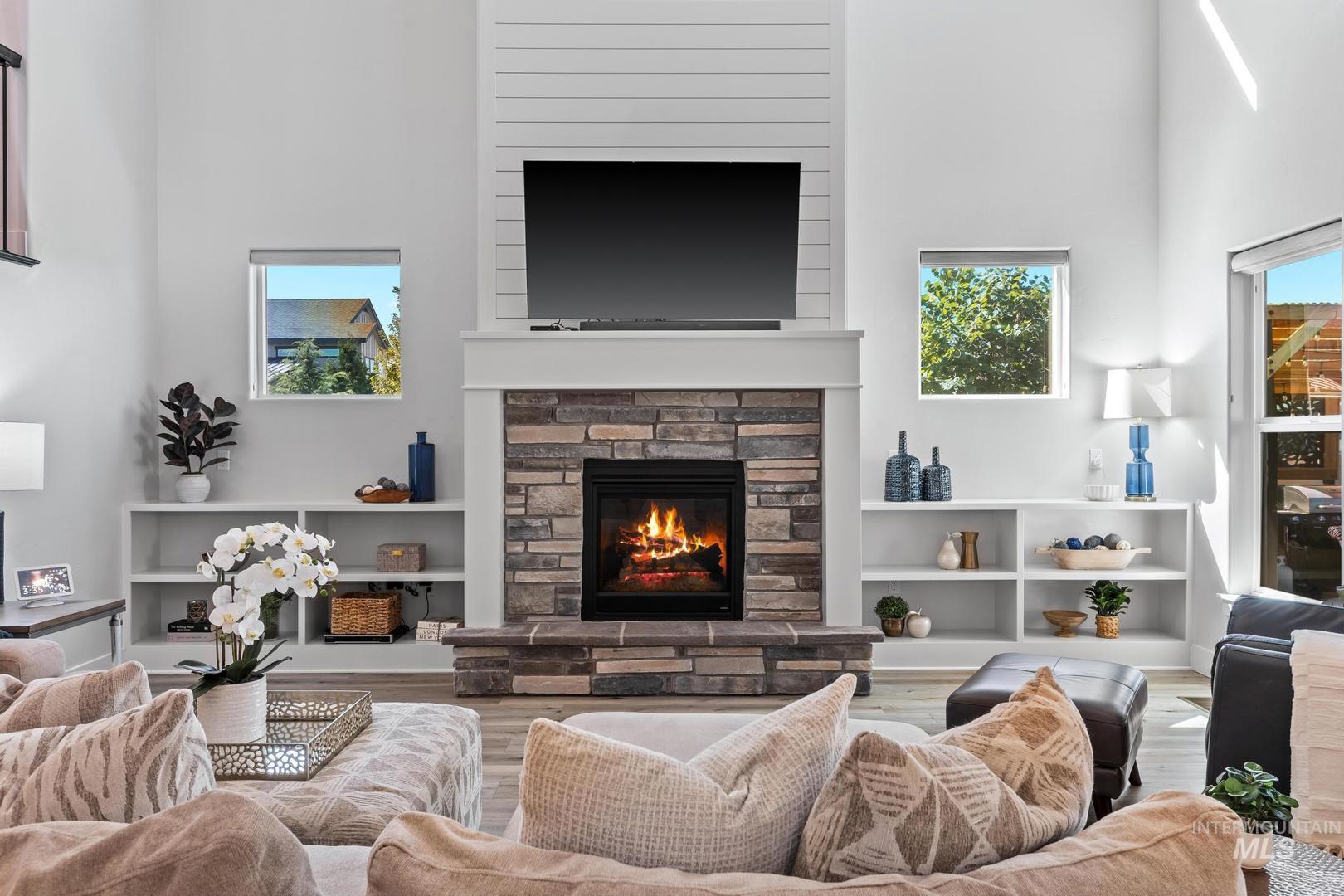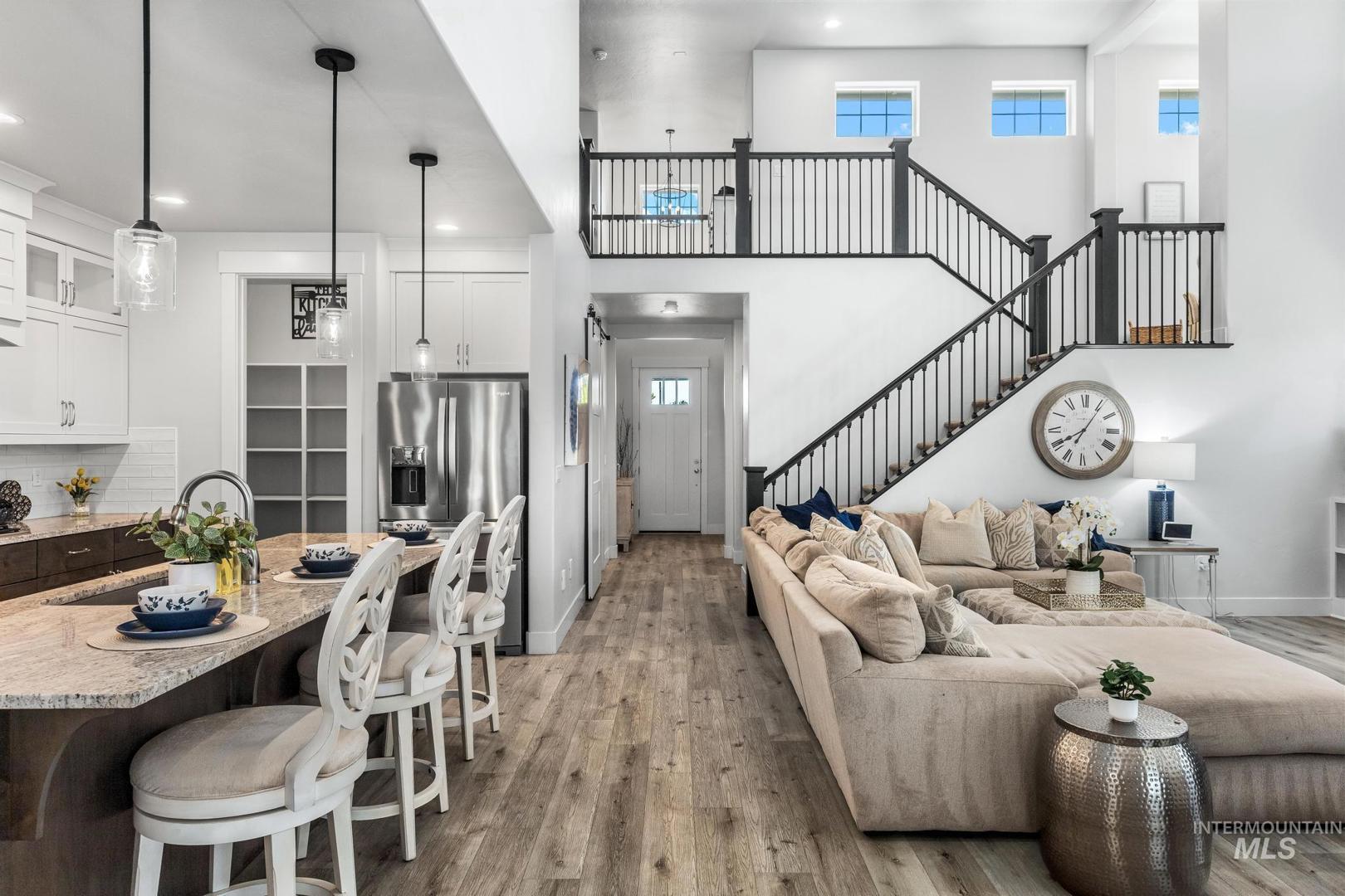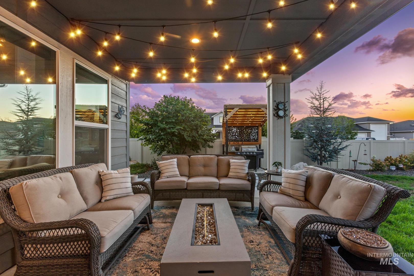 Welcome to the sought-after Houston plan by Boise Hunter Homes, where luxury and location come together. A dramatic two-story entry opens to a sunlit great room with soaring windows and an open layout designed for gathering. The gourmet kitchen features an oversized island perfect for entertaining, while the main-level primary suite offers comfort and privacy. Upstairs includes three bedrooms, two bathrooms, and a spacious loft/bonus. The main level also features a versatile office/guest room with closet, full bath access, and a hidden “secret room” for play or storage. Outdoors, the backyard has been transformed into an entertainer’s paradise with lush landscaping, a tranquil water rock feature, built-in Traeger, garden beds, and a storage shed. The 4-car garage with epoxy floors adds both function and style. Ideally located near the new Albertsons Marketplace, Discovery Park, and YMCA in West Ada School District. Community amenities include 2 infinity pools, playgrounds, basketball courts, and walking paths