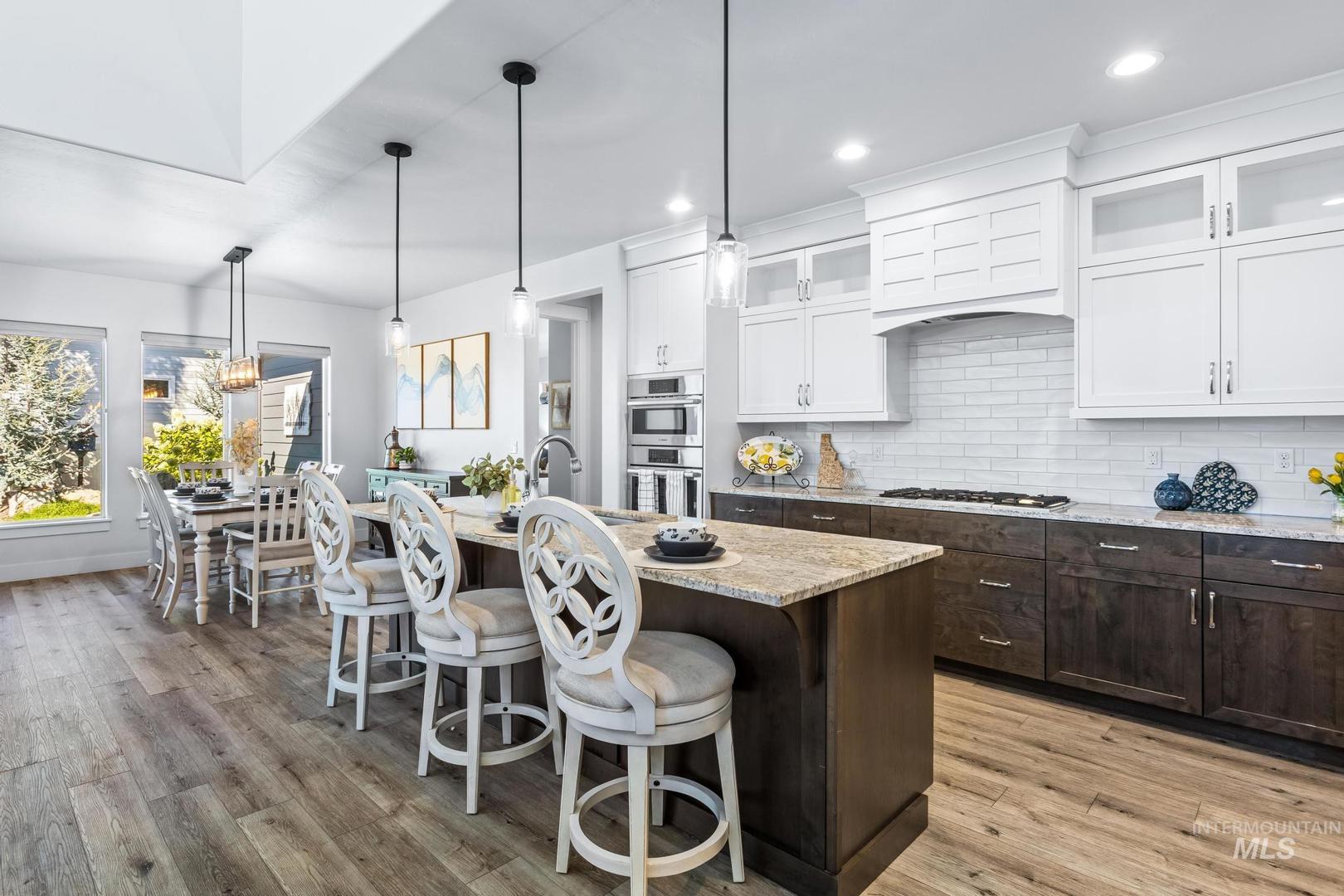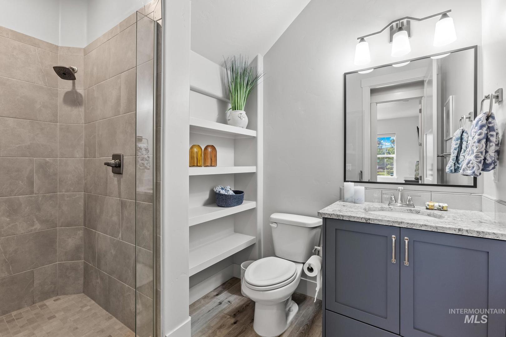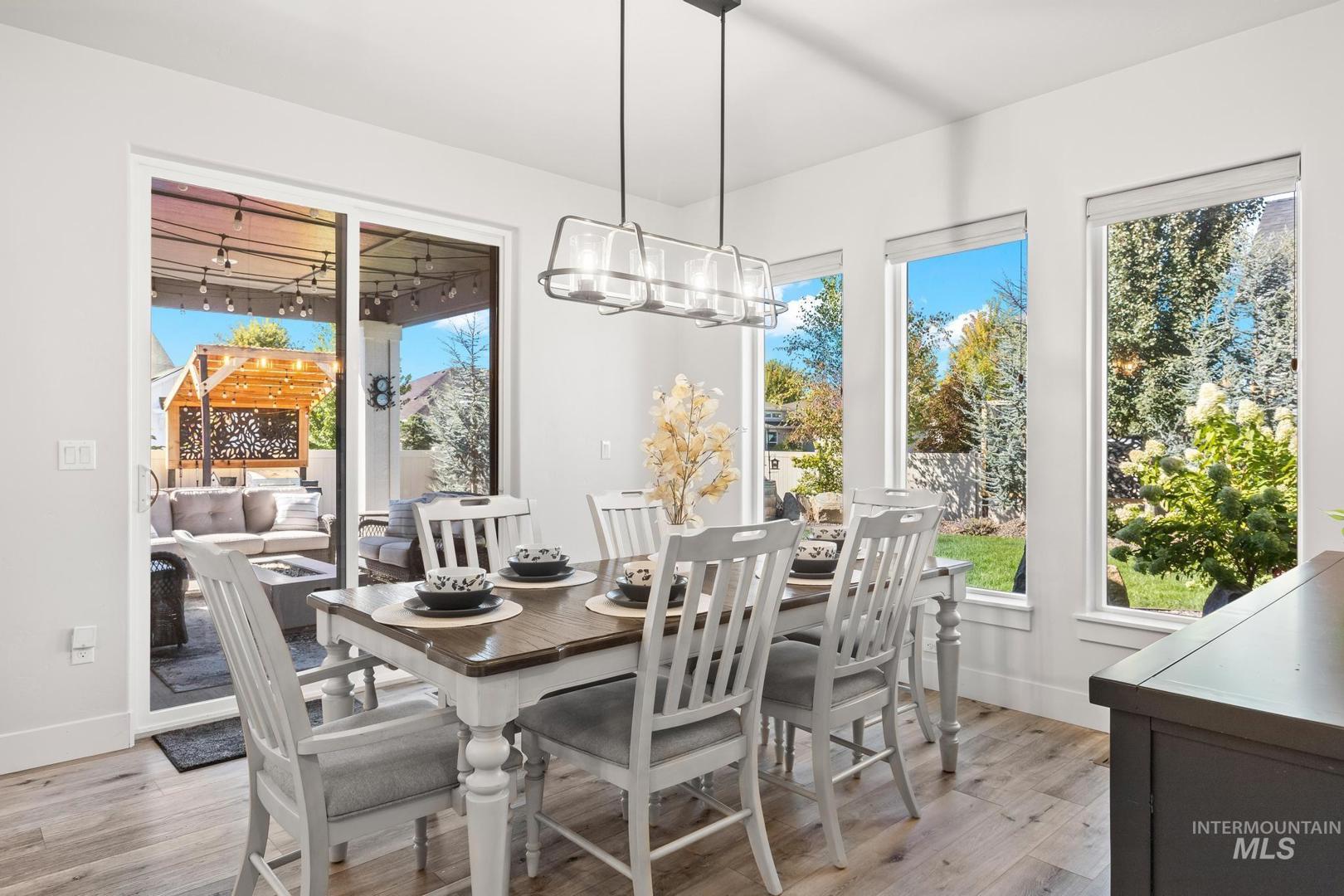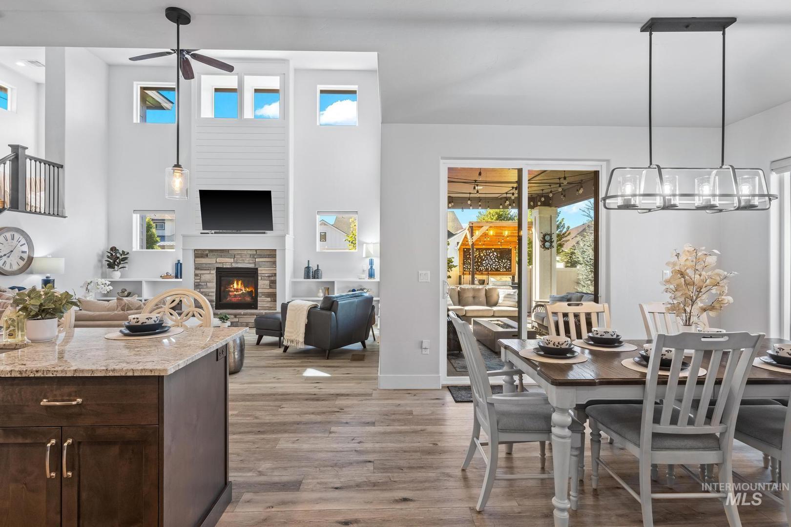 Welcome to the sought-after Houston plan by Boise Hunter Homes, where luxury and location come together. A dramatic two-story entry opens to a sunlit great room with soaring windows and an open layout designed for gathering. The gourmet kitchen features an oversized island perfect for entertaining, while the main-level primary suite offers comfort and privacy. Upstairs includes three bedrooms, two bathrooms, and a spacious loft/bonus. The main level also features a versatile office/guest room with closet, full bath access, and a hidden “secret room” for play or storage. Outdoors, the backyard has been transformed into an entertainer’s paradise with lush landscaping, a tranquil water rock feature, built-in Traeger, garden beds, and a storage shed. The 4-car garage with epoxy floors adds both function and style. Ideally located near the new Albertsons Marketplace, Discovery Park, and YMCA in West Ada School District. Community amenities include 2 infinity pools, playgrounds, basketball courts, and walking paths