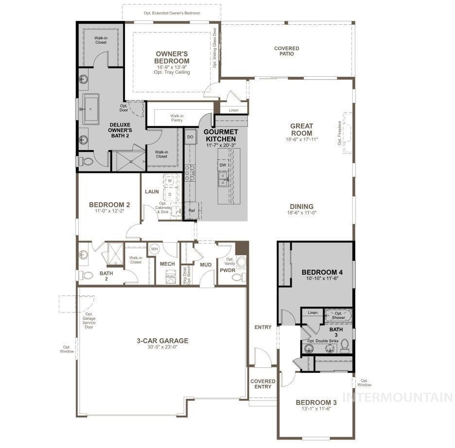 "The Powell / Dual Primary Suites" by Richmond American Homes, available this December. This home is available to tour daily from 10 AM to 6 PM, and you don’t need an appointment to visit. You can stop by the Information Center at 967 N Falling Water Way, Eagle, ID 83669, where we have the full inventory of completed and upcoming homes, as well as limited build-to-order opportunities. Please feel free to ask about our current builder special offers and financing options. This beautiful community has a premier Eagle location close to dining, shopping, and recreation. The Portfolio collection homes feature elegant luxury finishes such as 10-foot ceilings, gourmet kitchens with quartz countertops, gas fireplaces, covered patios, upgraded soft-close wood cabinets, and deluxe primary baths. All homes come with tankless water heaters, are HERS rated for superior efficiency and low utility bills, and include front and back landscaping, sprinklers, and fencing. Restrictions apply. PHOTOS SIMILAR