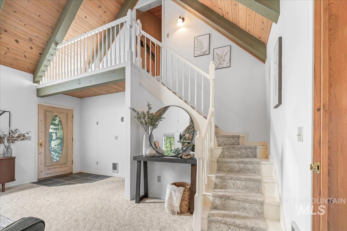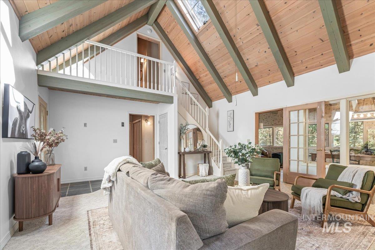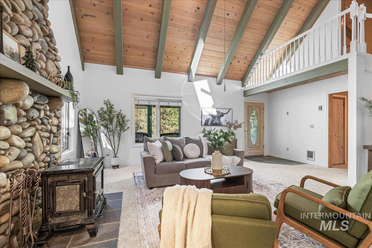 YOUR MOUNTAIN HIDEAWAY--Just 1 hour from Boise limits and 45 minutes from Tamarack! Nestled on 2.5 wooded acres in Smith’s Ferry, this cabin is the perfect place for relaxation & adventure. Enjoy instant access to dirt bike, side by side & snowmobile trails, as well as whitewater rafting on the Cabarton stretch (takeout w/in walking distance of the house). Daily wildlife visitors include: Mule & Whitetail Deer, Elk, Turkey & Red Fox, plus enjoy seasonal foraging of huckleberries & morel mushrooms! Vaulted ceilings, exposed beams & natural light fills the home, with new, bright paint throughout. The huge kitchen comes equipped with all of the modern day conveniences, plus an electric stove w/ a wood-burning stove top ensures you can enjoy a warm meal no matter the weather! The root cellar provides extra storage for homestead-style living or spare adventure gear. Step onto the covered front porch to take in the mountain views, or wander down to the nearby Payette River, just a 5 minute walk away. The large shop is ready for all your outdoor gear, or use the space as an additional hang-out area year round. A convenient circular driveway makes access easy for all types of vehicles. This property has room for everyone, with ample space for RVs & camping on the property. With privacy, character, & space to breathe, this cabin is an ideal retreat for year-round mountain living.