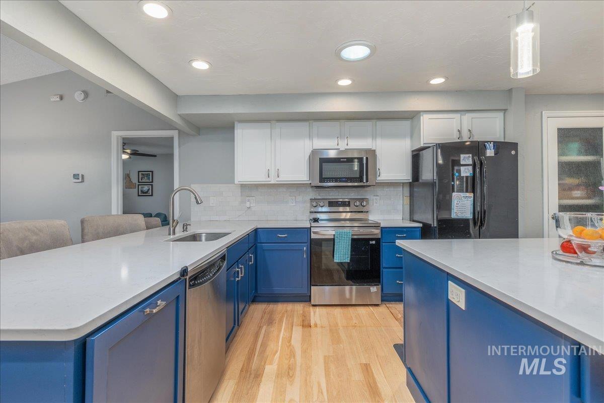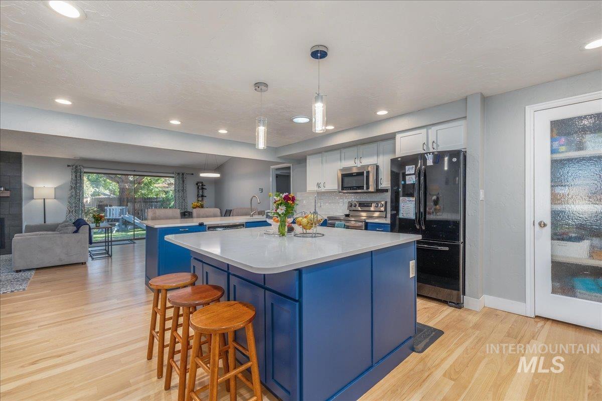 Beginning with a quiet cul-de-sac setting, this updated, single level home has a little something for everyone. Tucked into the tree-filled Lakewood community, the central location offers the ease of Boise living - walking paths, lush landscaping, and quick access to highly rated schools, shopping, the Boise River, foothills and the bustling downtown scene. The kitchen has been designed with cooking and entertaining in mind and is a gorgeous central hub to the home. The primary suite offers a wonderful flex space that can be a family room, home office, or media room. Bring your ideas! Off the kitchen you’ll find a workout room and a 2nd on-suite, great for guests or multigenerational living. The yard is spacious, offering unique areas for hanging out or gardening with incredible privacy. Enjoy peace of mind with an updated roof, and the furnace, AC and water heater were all replaced in 2021. See the link for the virtual tour and floor plan.