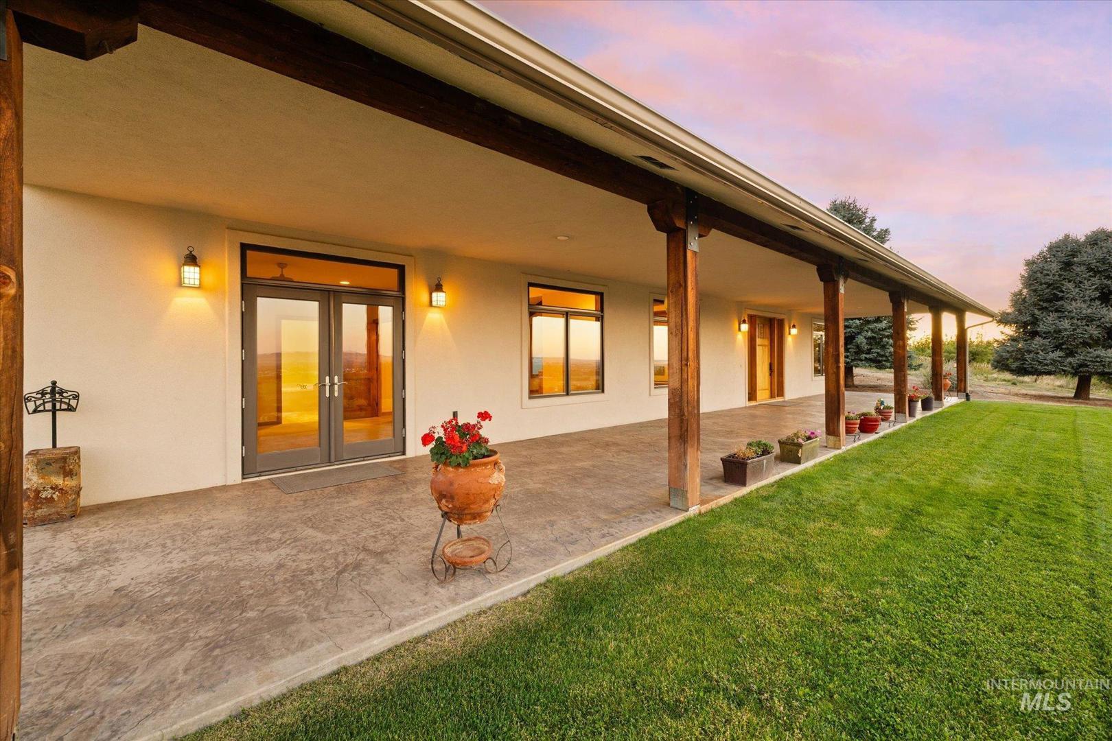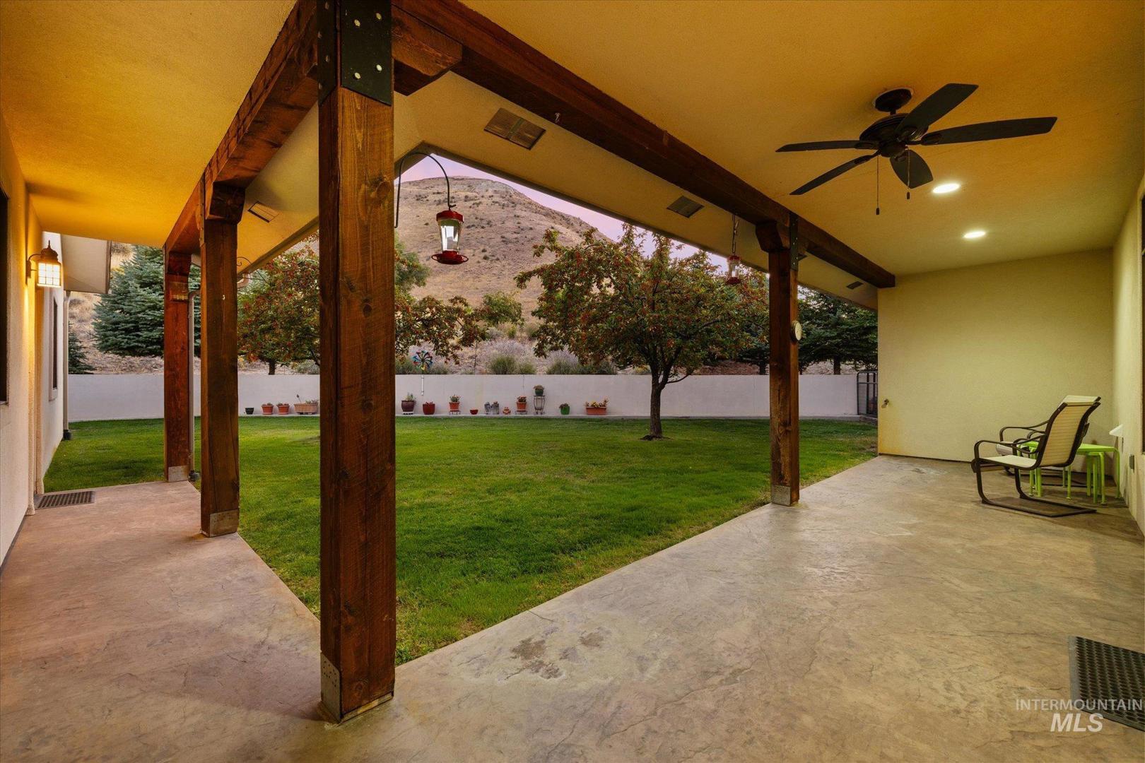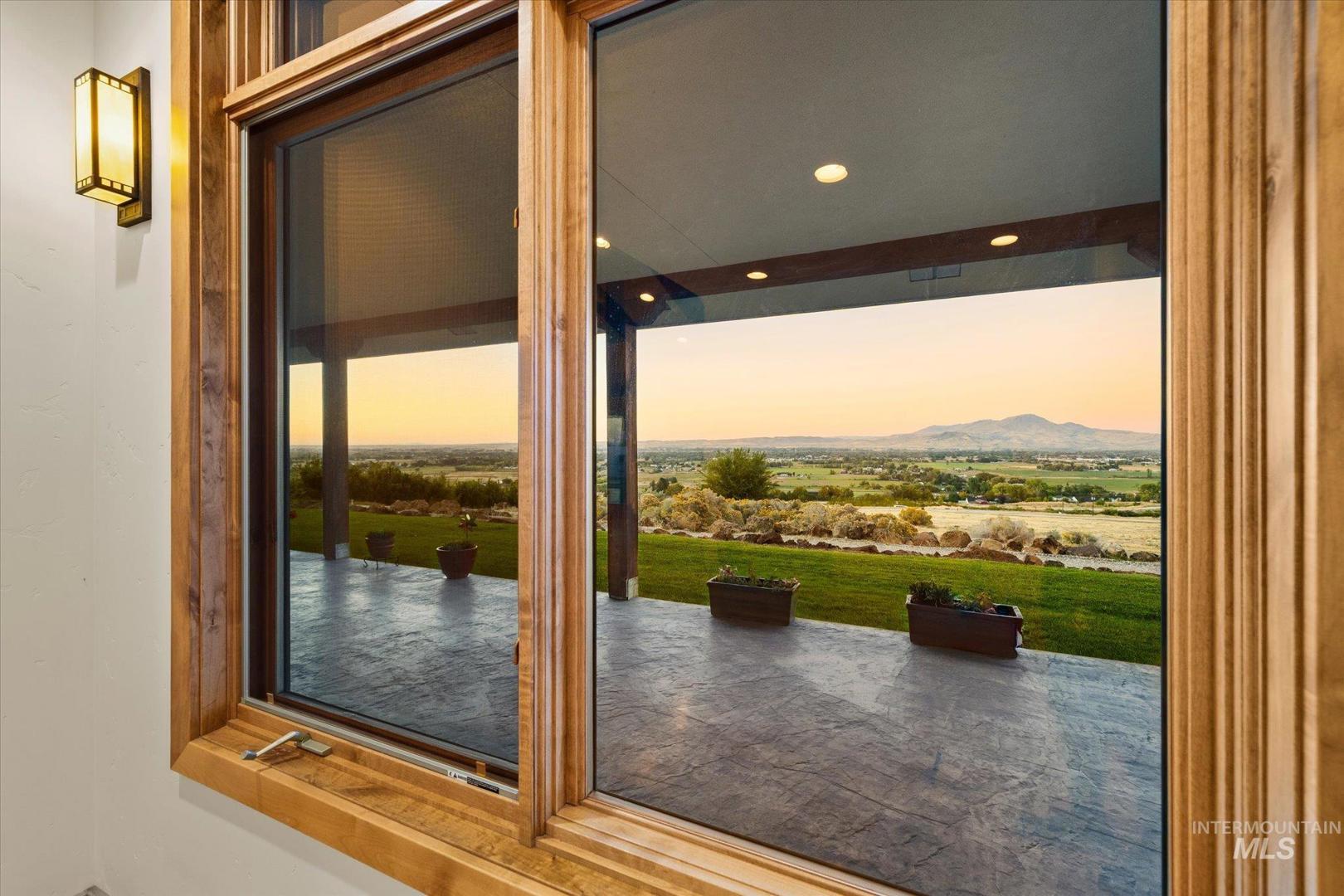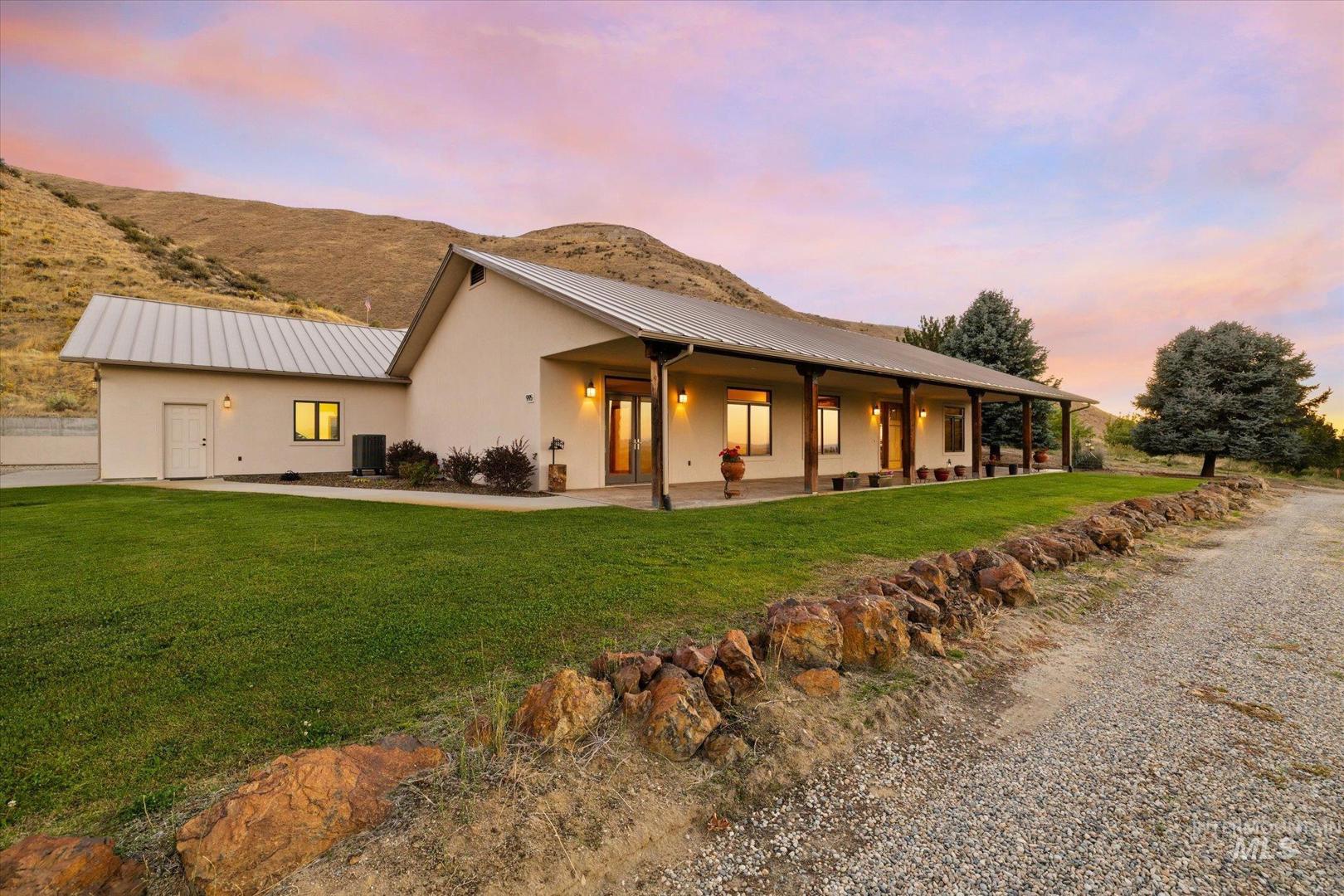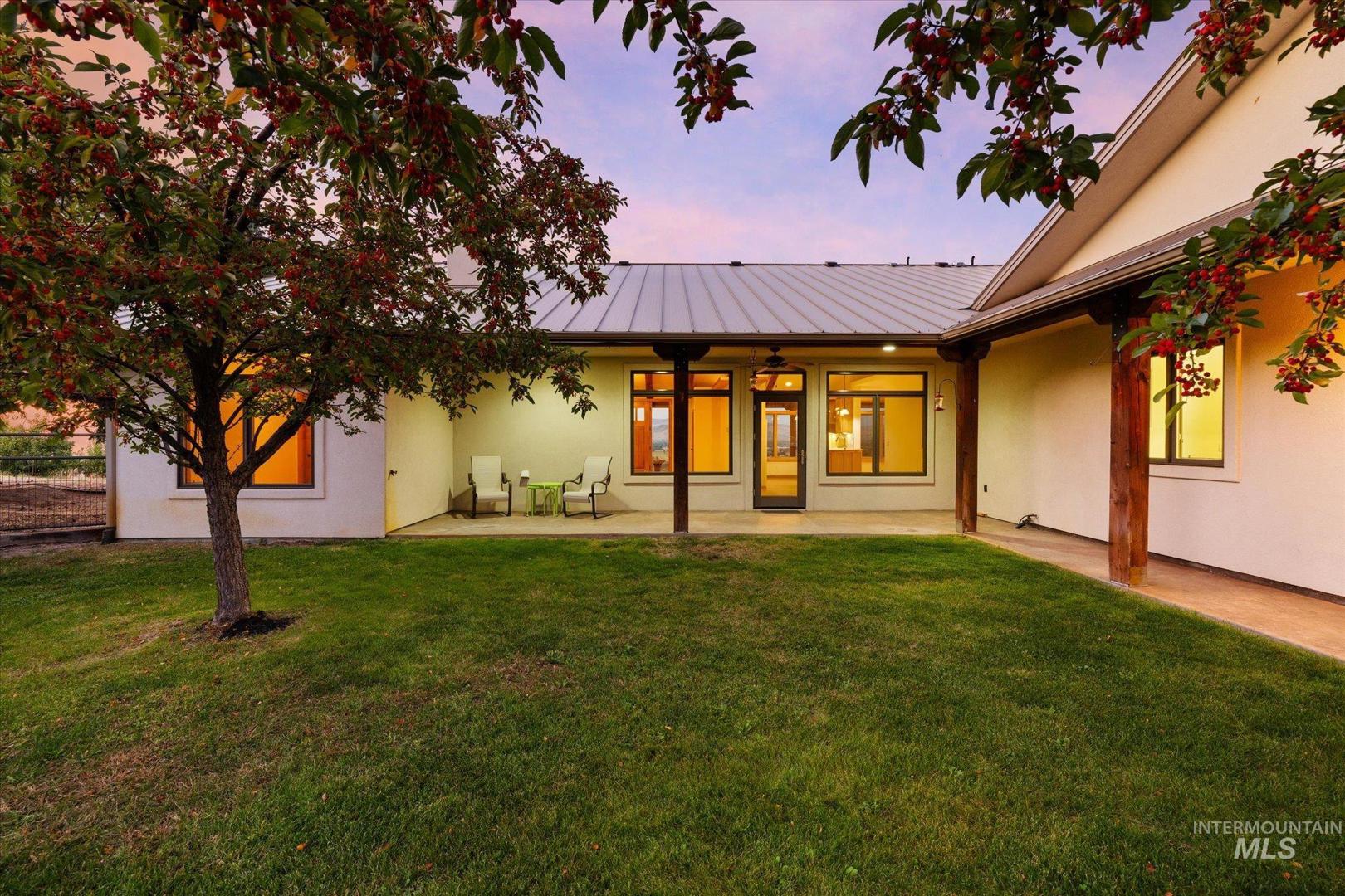 Incredible 5-acre view property on the South Slope offering panoramic mountain and valley views. This beautifully crafted 2,020 sqft custom home features 3 bedrooms, 2.5 bathrooms, & is filled w/ high-end finishes throughout. The gourmet kitchen is a chef’s dream w/ quartz countertops, built-in appliances, & custom cabinetry. A split-bedroom floor plan provides privacy & functionality, w/ soaring ceilings, solid core doors, & a wall of windows that bring in abundant natural light. The luxurious primary suite includes a spa-like bathroom w/ walk-in shower, Soaker tub, dual vanities, & an oversized walk-in closet. Two additional bedrooms are located on the opposite side of the home & share a full bathroom. The open-concept living area offers a cozy fireplace, built-in shelving, & custom front door that leads to a fully covered patio—perfect for relaxing or entertaining while taking in the incredible views. The north-facing front yard delivers exceptional privacy & some of the best scenery in the valley, while the fully fenced backyard provides additional space and seclusion. Ideal for RV owners, hobbyists, or extra storage, the property includes a massive 40x50 attached RV garage w/ three large roll-up doors, plus a 40x30 detached shop. Tucked away on a private drive alongside a apple orchard, this home offers unmatched tranquility. Please use the driveway closest to the apple orchard