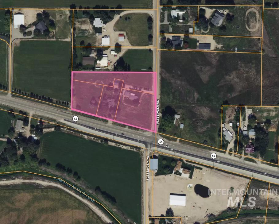 Almost 4 acres of developable land one parcel away in multiple directions for annexation into the City of Star. Commercial designated land use per City`s comprehensive plan. Property consists currently of 2 rental homes, 2 pastures and a barn. Variety of different commercial uses compatible. High Frontage, Hard Corner, Visibility, Access and High Growth Area. Make money while you plan or wait! Do not bother tenants.