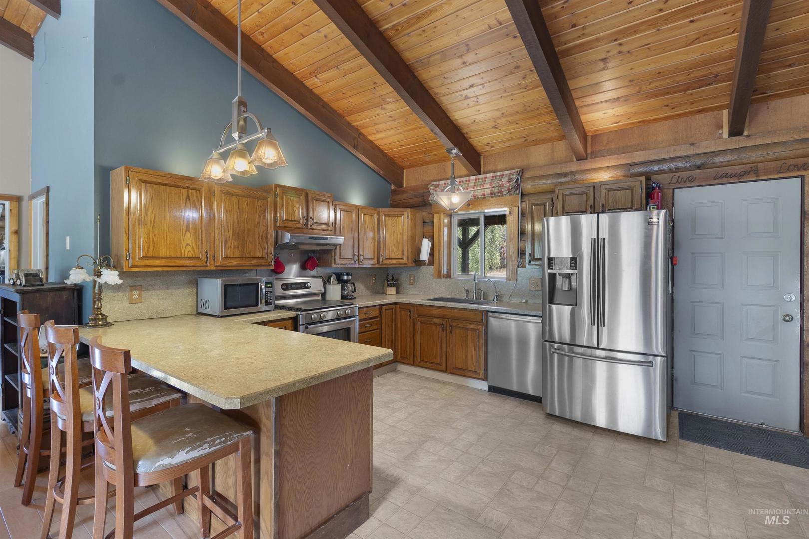 Beautifully Crafted Log Home on 20 Peaceful Acres Just Outside of Kendrick! This beautifully maintained 3-bedroom, 2-bath single-level log home was thoughtfully designed and built by a former WSU professor of engineering, with quality and efficiency in mind. Using the durable dove-tail construction method and strategically positioned to capture passive solar heat during the winter, this home showcases craftsmanship and smart design throughout. Step inside to vaulted ceilings, exposed beams, and an inviting open kitchen. Cozy up by the fireplace or step out back to take in the stunning natural surroundings. Enjoy your morning coffee on the covered front porch while soaking in the serenity, or wander up the drive to pick berries and spot wildlife near the gravity-fed pond. The property features multiple fruit trees, blackberries, and black caps—frequently visited by deer, birds, and other wildlife—making it ideal for nature lovers, photographers, or hunters alike. A 10k-watt propane-converted backup generator provides peace of mind, and the private 5 GPM well ensures reliable water access. With plenty of room to build a shop, start a garden, or park your RV, this property perfectly blends self-sufficiency, comfort, and country charm—all just a short drive from town!