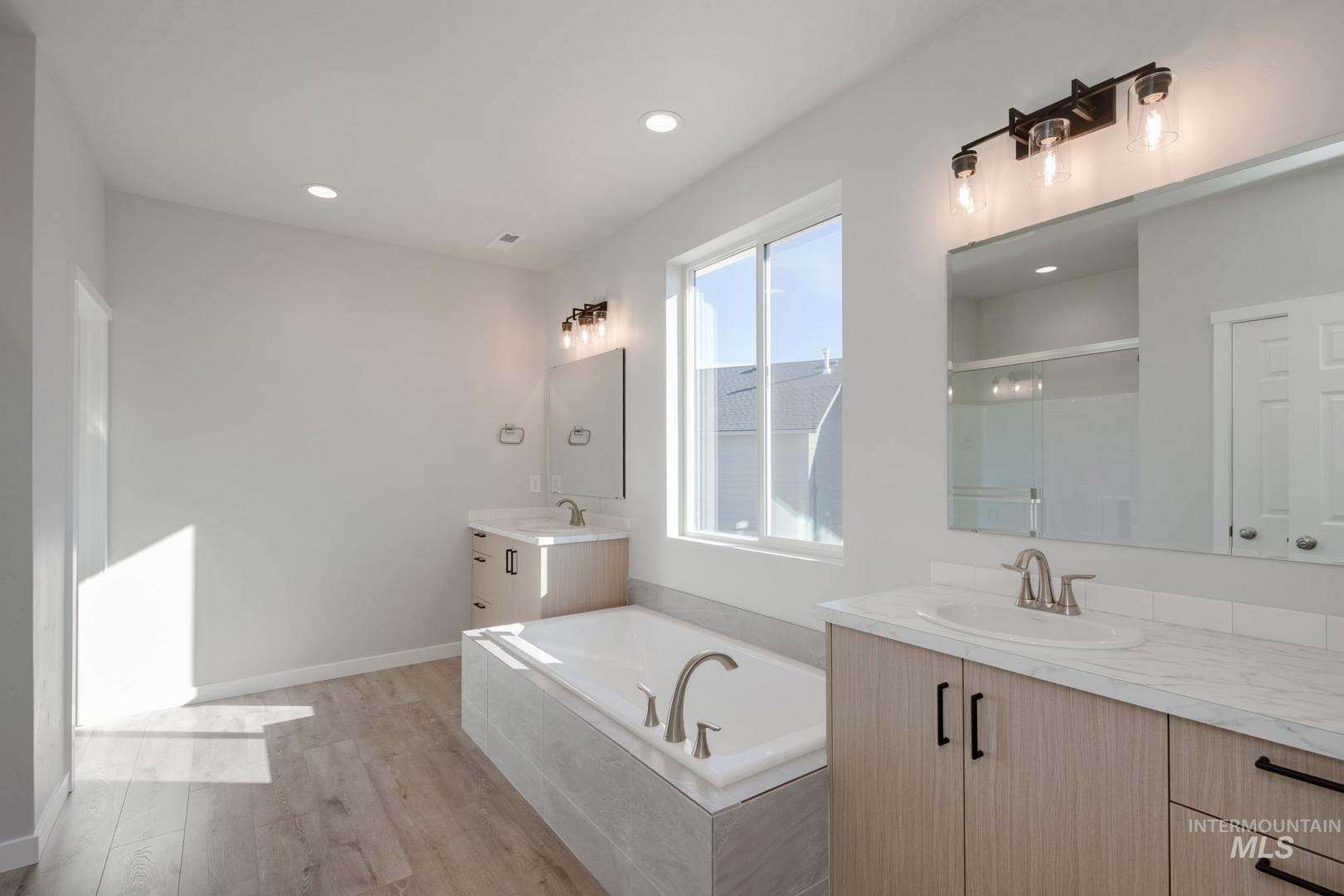 Get up to $30K now thru 12/31/2025 with the Festival of Homes Promo! Embrace the comforts of a brand new home in Mountain Home, Idaho. The Riverbirch 2626 floorplan is thoughtfully designed for both function and comfort. With four bedrooms and a desirable half bath in addition to two full baths, it offers convenience for families and guests alike. A versatile room off the main living space is ideal as a home office, craft area, reading nook, or homework station. The open-concept layout connects the spacious kitchen, dining area, and great room to the back patio, perfect for entertaining or everyday relaxation. The kitchen comes with stainless steel appliances and stylish solid surface countertops, adding both functionality and aesthetics to the kitchen. The primary suite is tucked away for privacy and features a soaker tub, a generous en suite, and closet. A unique front-facing garage bay is separated from the main garage, offering additional storage, parking, or workspace flexibility. With smart use of space and flexible living areas, the Riverbirch supports a lifestyle of ease and adaptability. Photos are of the actual home!