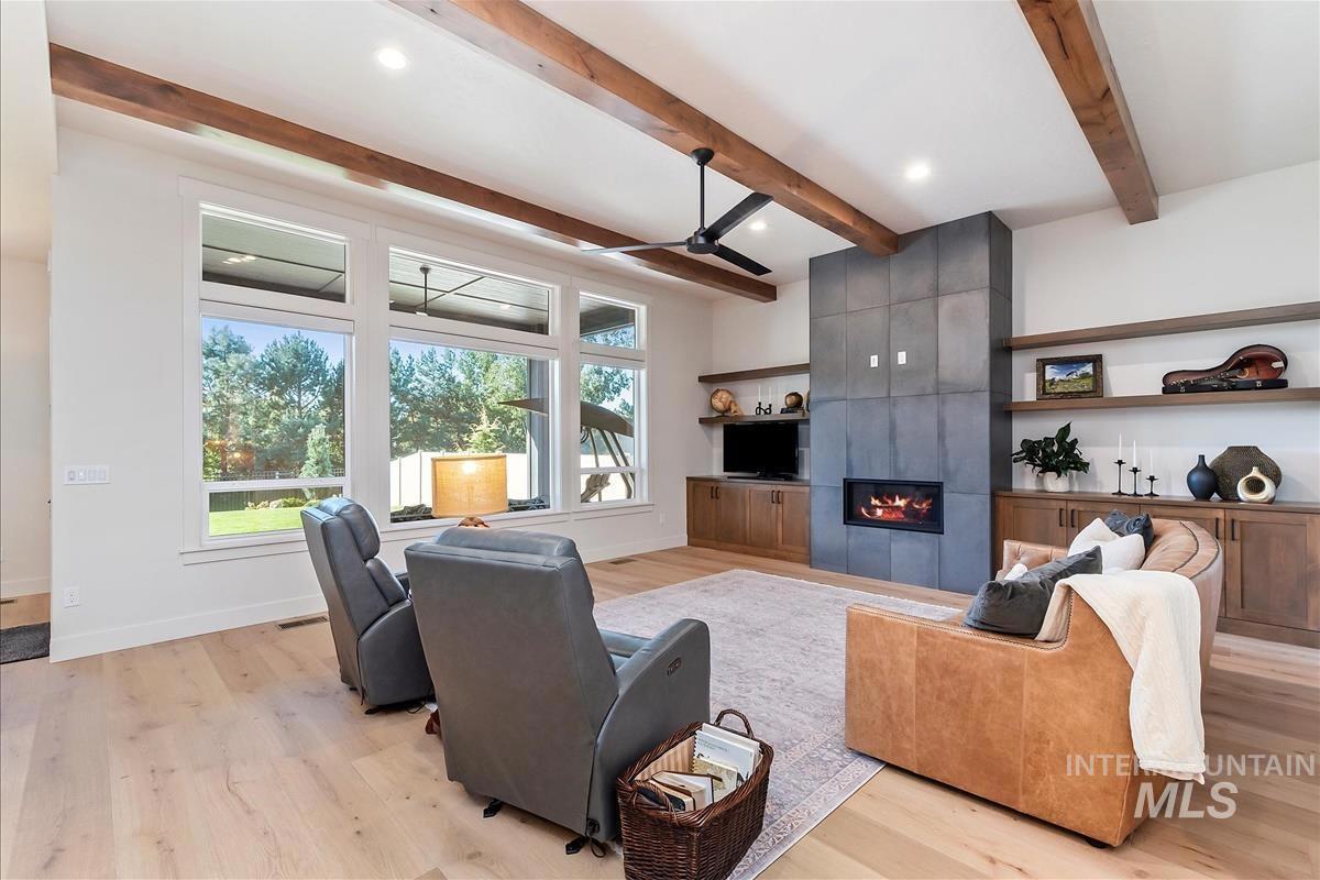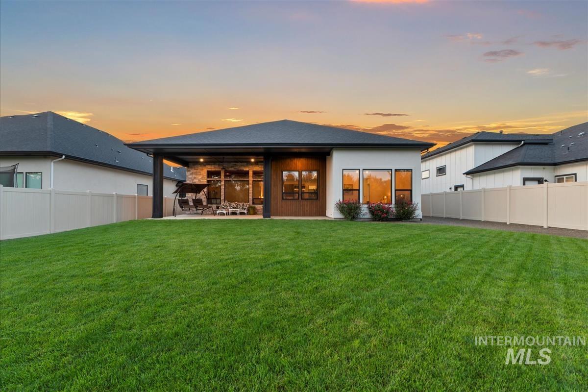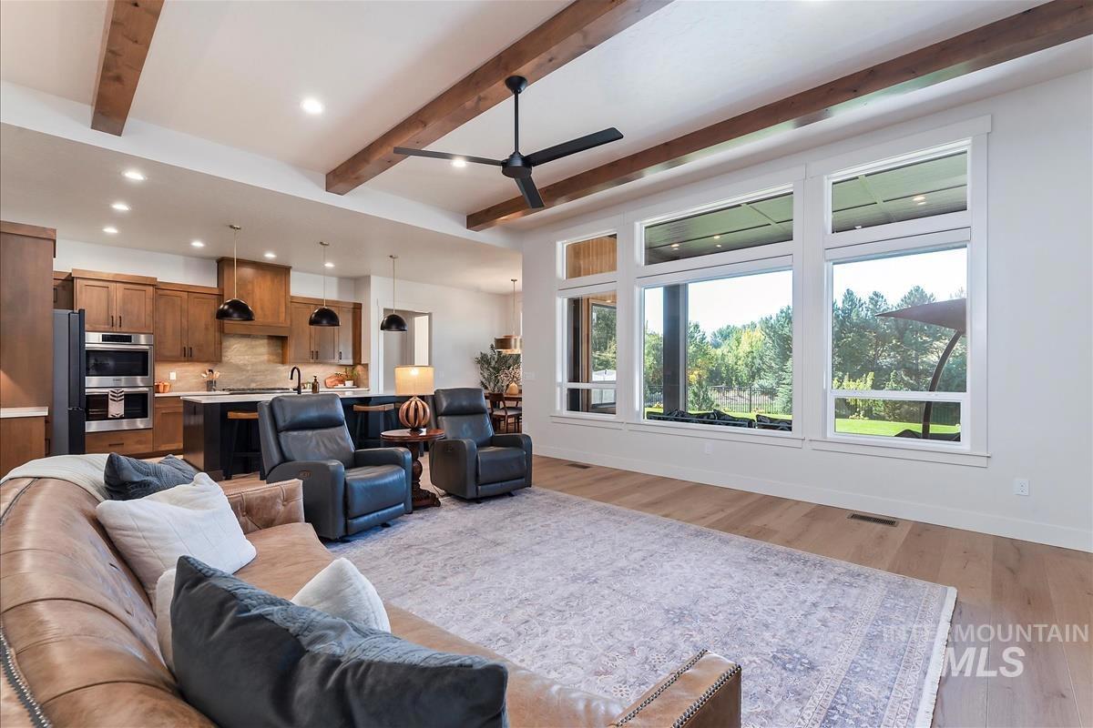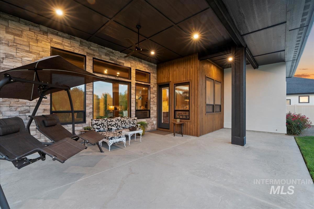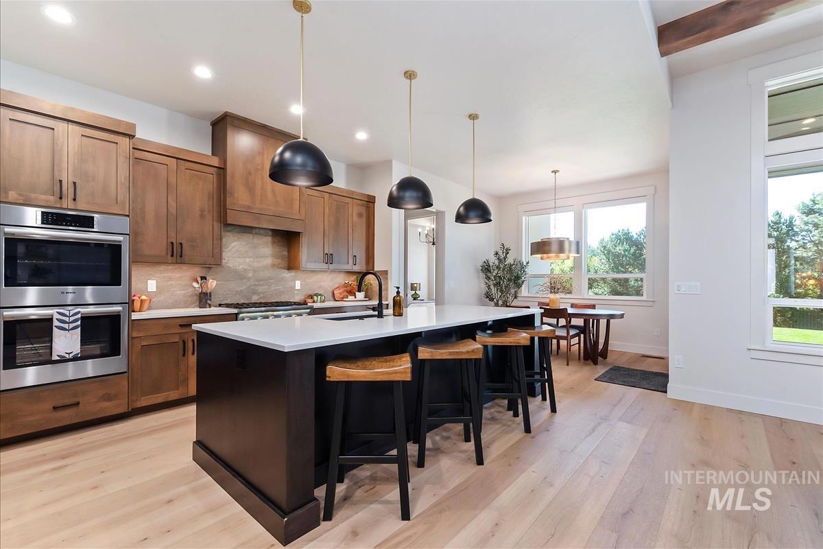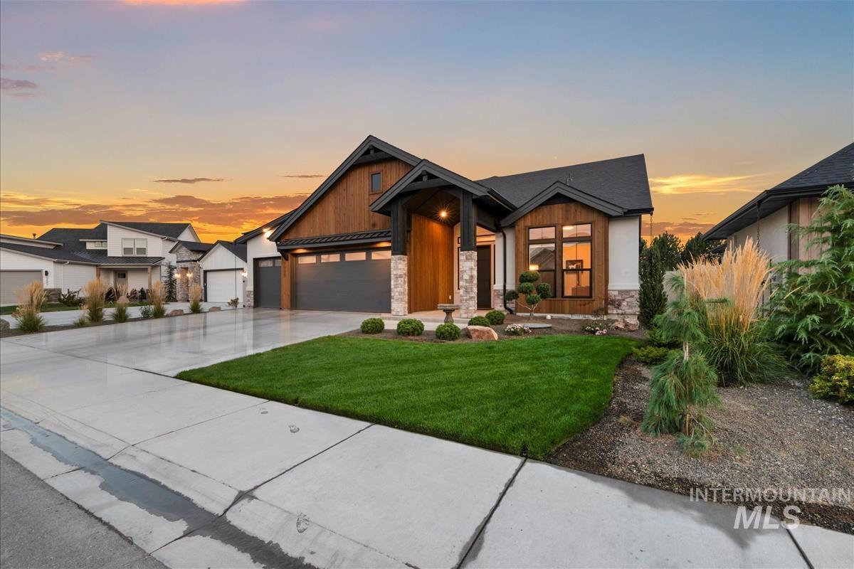 The home you’ve been dreaming about! The massive covered patio overlooks mature trees & open space – it feels like you’re looking at a forest! No back neighbors means peaceful living in your backyard! This home blends thoughtful design & loads of quality upgrades! Window tinting added to all South-facing windows. Floor outlets add convenience in Great Room & front bedroom/office. Extra soffit outlets for Christmas lights & gas stub for patio ceiling heaters. CAT5 data ports installed in the Great Room, laundry/office, primary & front bedroom. The entryway & garage benefit from privacy obscure glass. Luxury LVP extends through the main living spaces & large mudbench off the garage entry. Upgraded wood cabinet boxes with soft close doors/drawers, quartz countertops, double ovens, built-in gas cooktop & oversized pantry with countertop & extra outlets. A barn door enhances the usability of the front bedroom, creating flexibility for work or guests. Every detail in this home balance everyday function with elevated finishes.