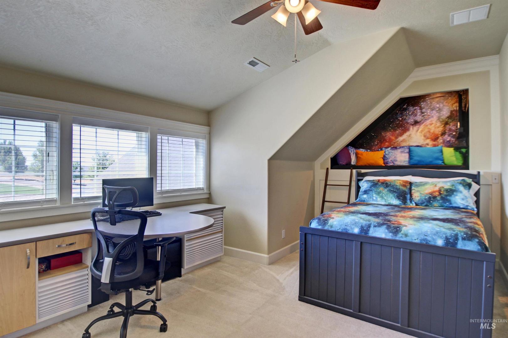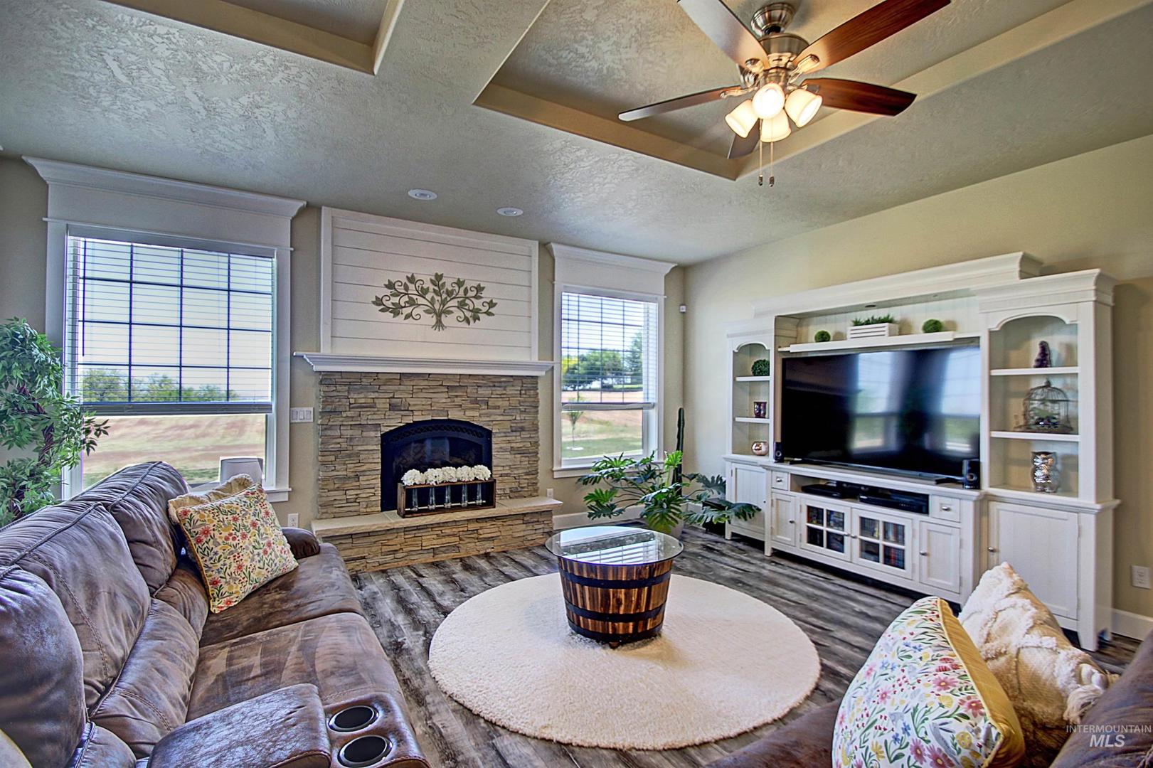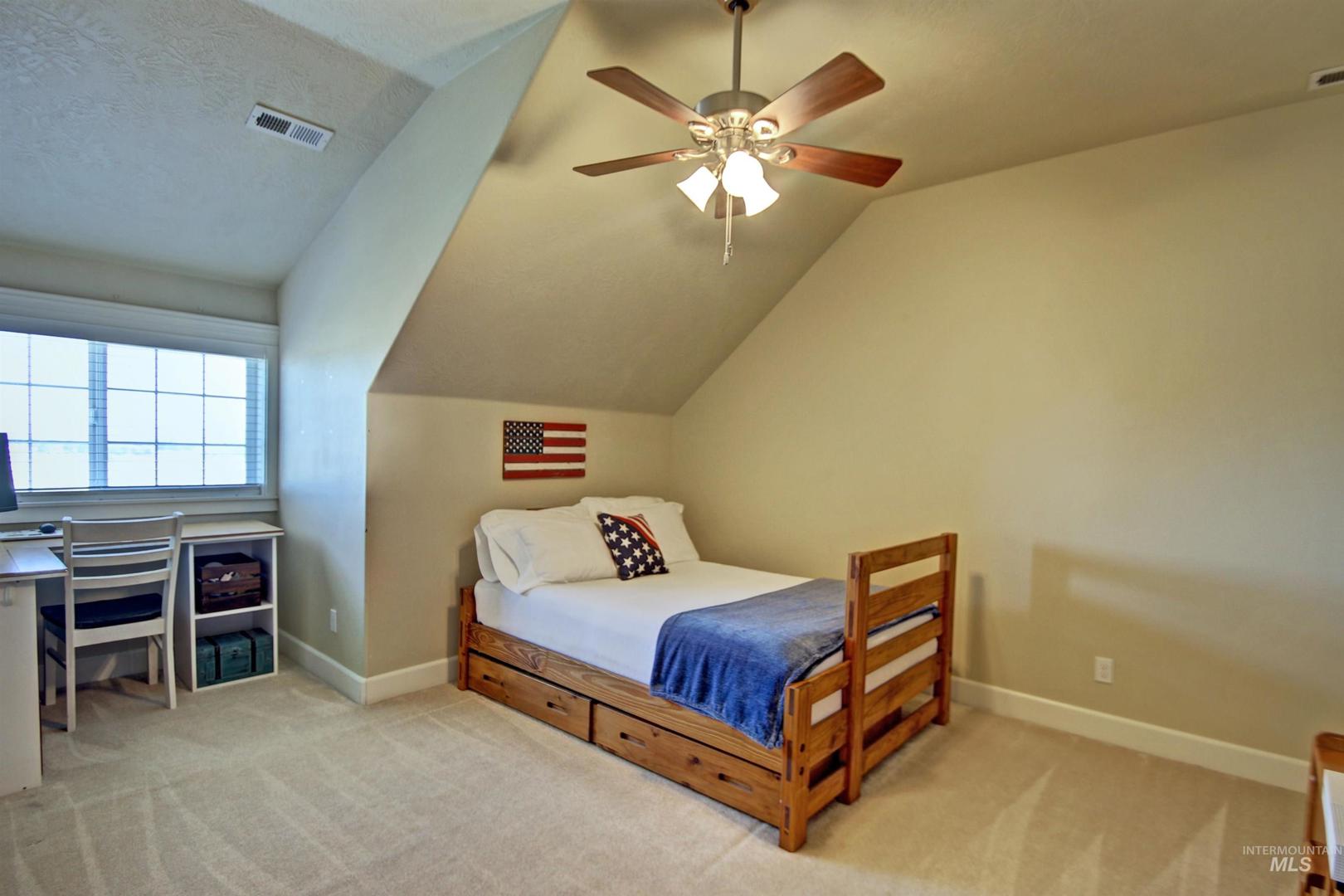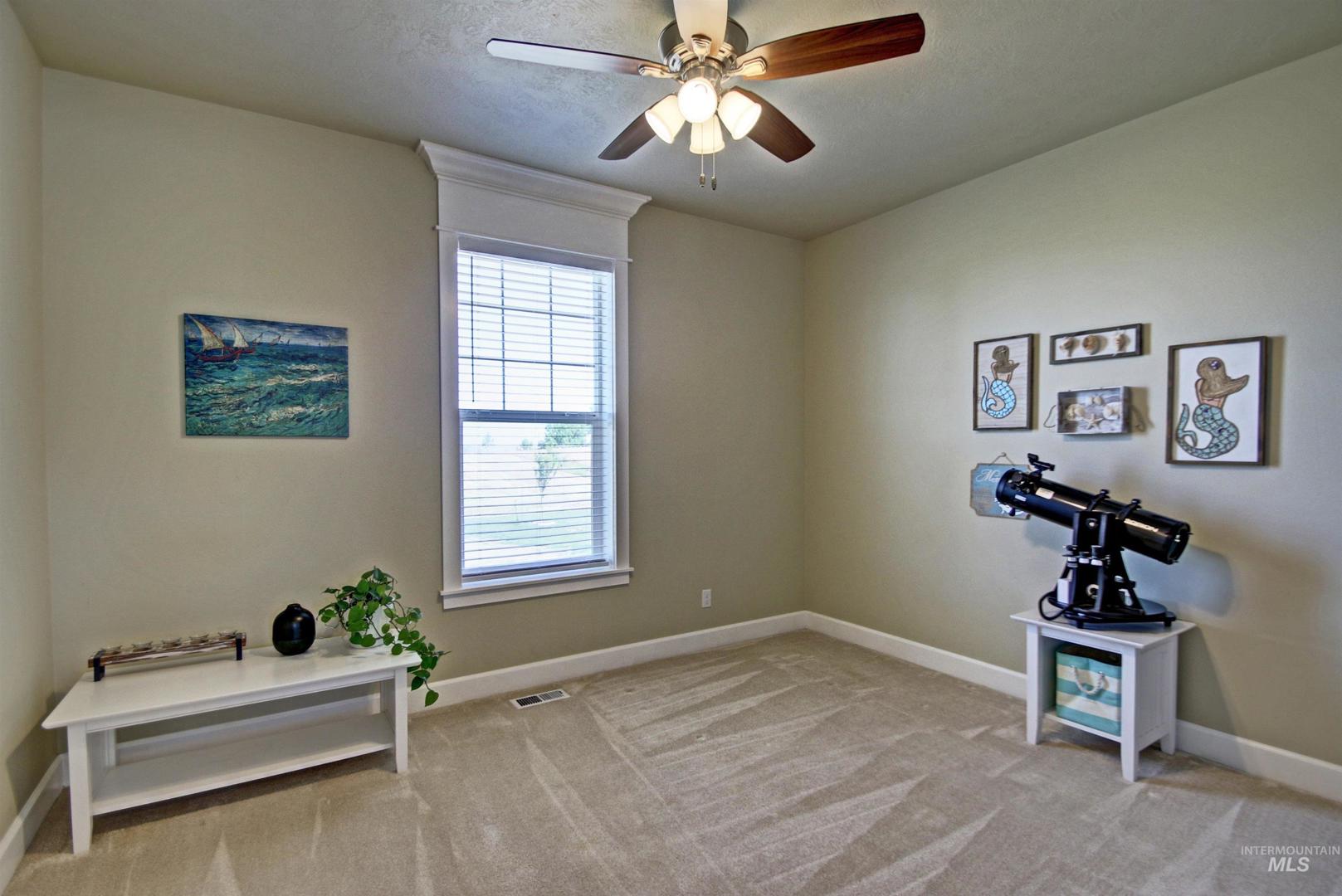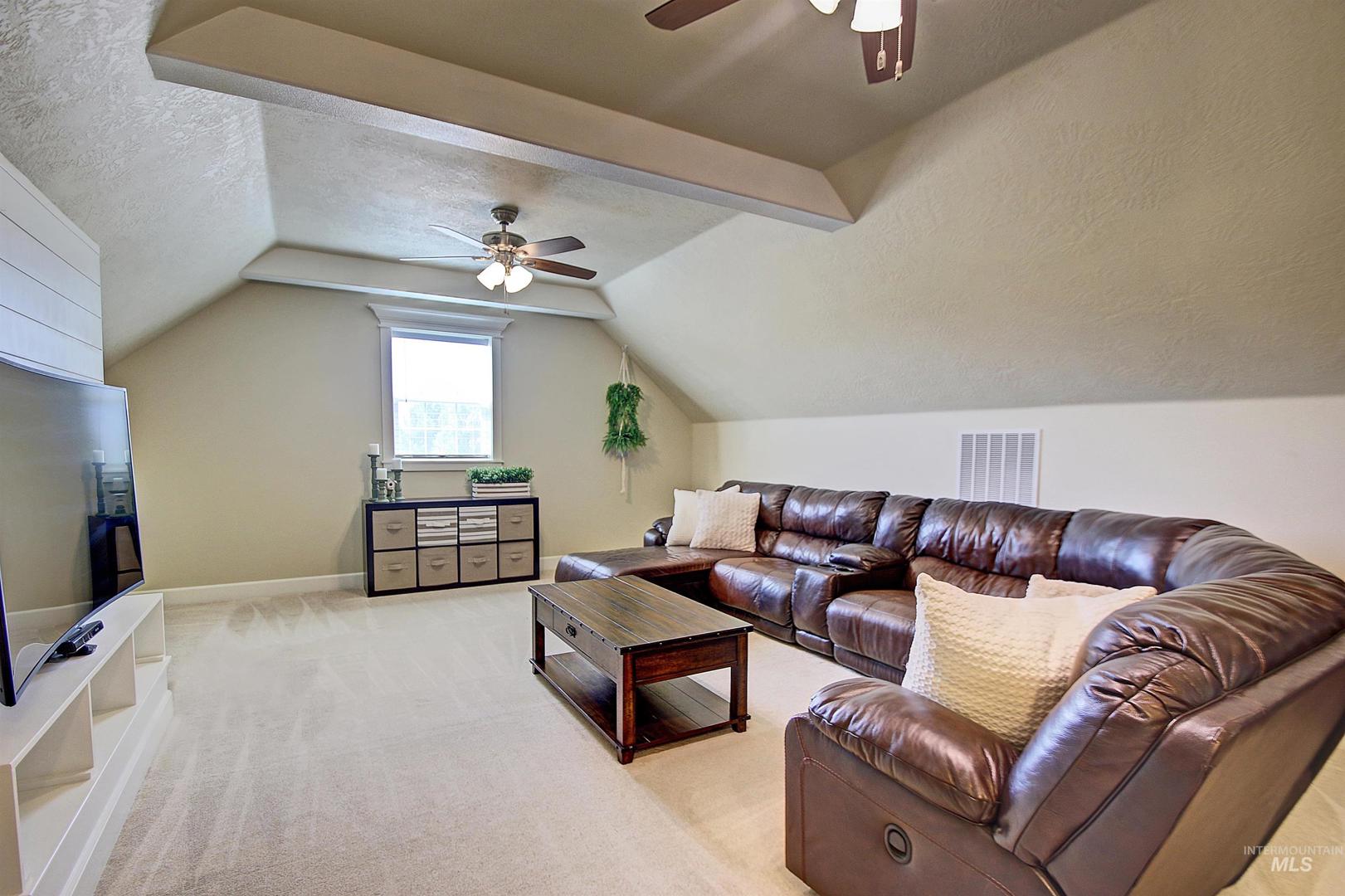 Beautiful home with views of the entire valley! Newer remodeled kitchen w/custom soft-close cabinetry, lighting, double oven, granite counters & island. Walk-in pantry & beautiful easy care LVP flooring flow to a large Family Rm built for entertaining w/cozy fireplace & expansive windows. Extensive millwork & HVAC appx 2 years old. Main level includes office w/closet, 2 great sized bedrooms w/ceiling fans & luxurious Primary boasts new carpet, fully tiled walk-in shower, dual vanity & private water closet. Upstairs find HUGE Bonus & 3 additional bedrms+2nd laundry hookup in storage closet. N facing backyard w/fruit trees, greenhouse w/concrete floor & raised garden beds. Fully insulated 1000sqft, 40x25 shop w/pull through RV/boat doors. Sep power w/220 outlet, RV 30 Amp plug, 2 electric heaters, surrounded by parking. Finished garage w/tons of storage options. 3.55 acres taxed as AG. Possible 1,500 sqft ADU could be built. Pvt well & septic. Solar panels for low ID Power bill. No HOA/CCRs!