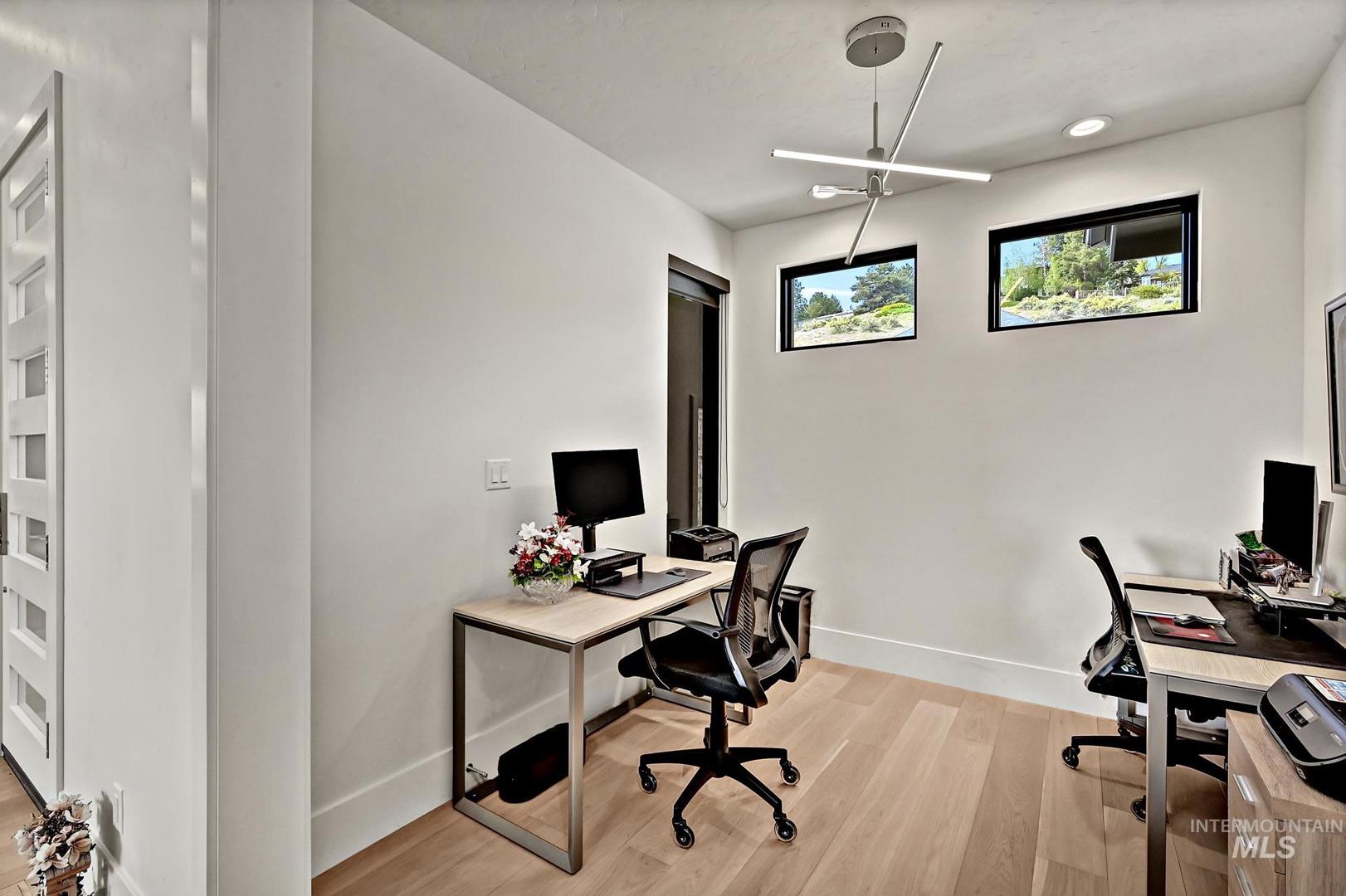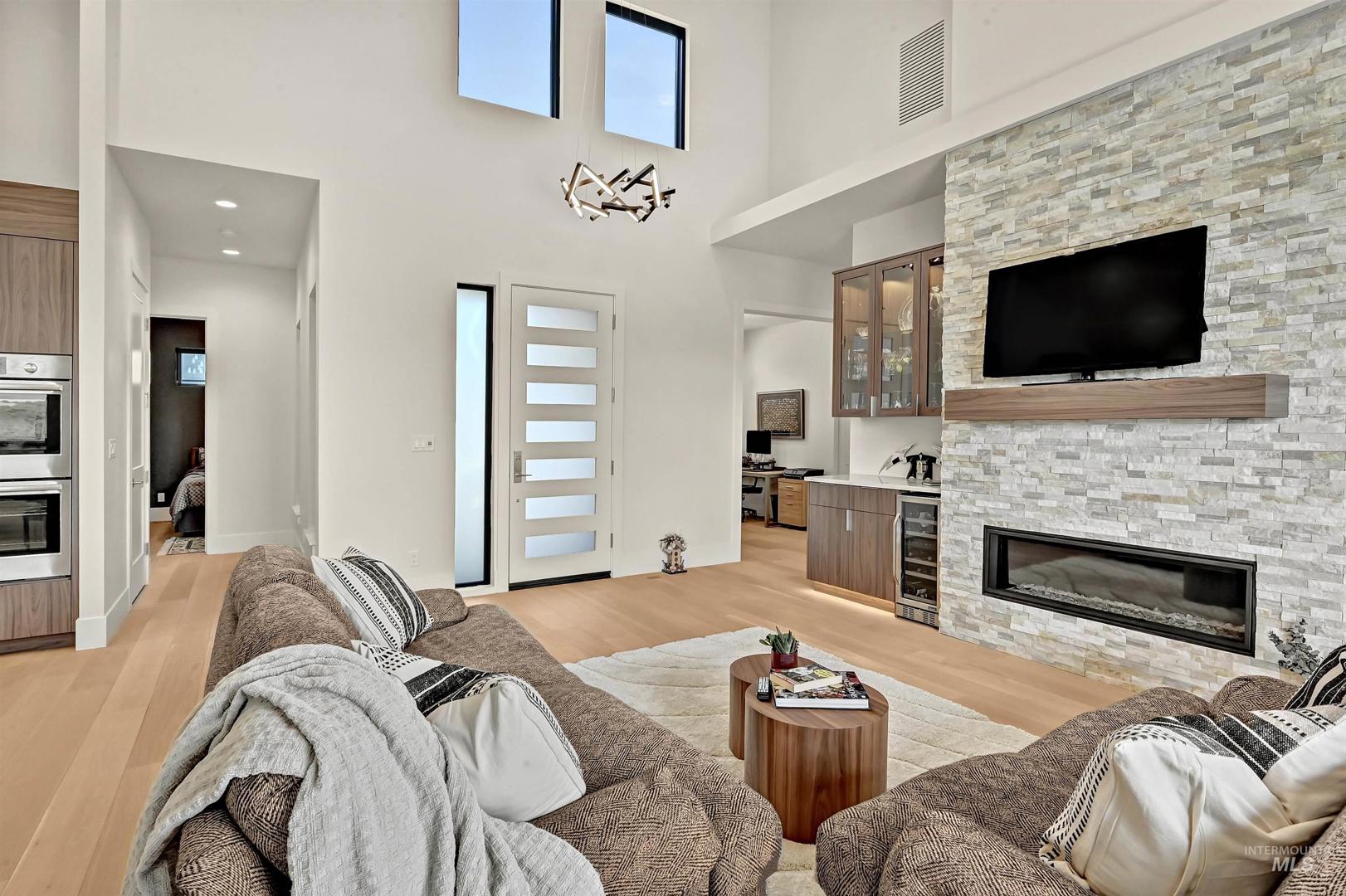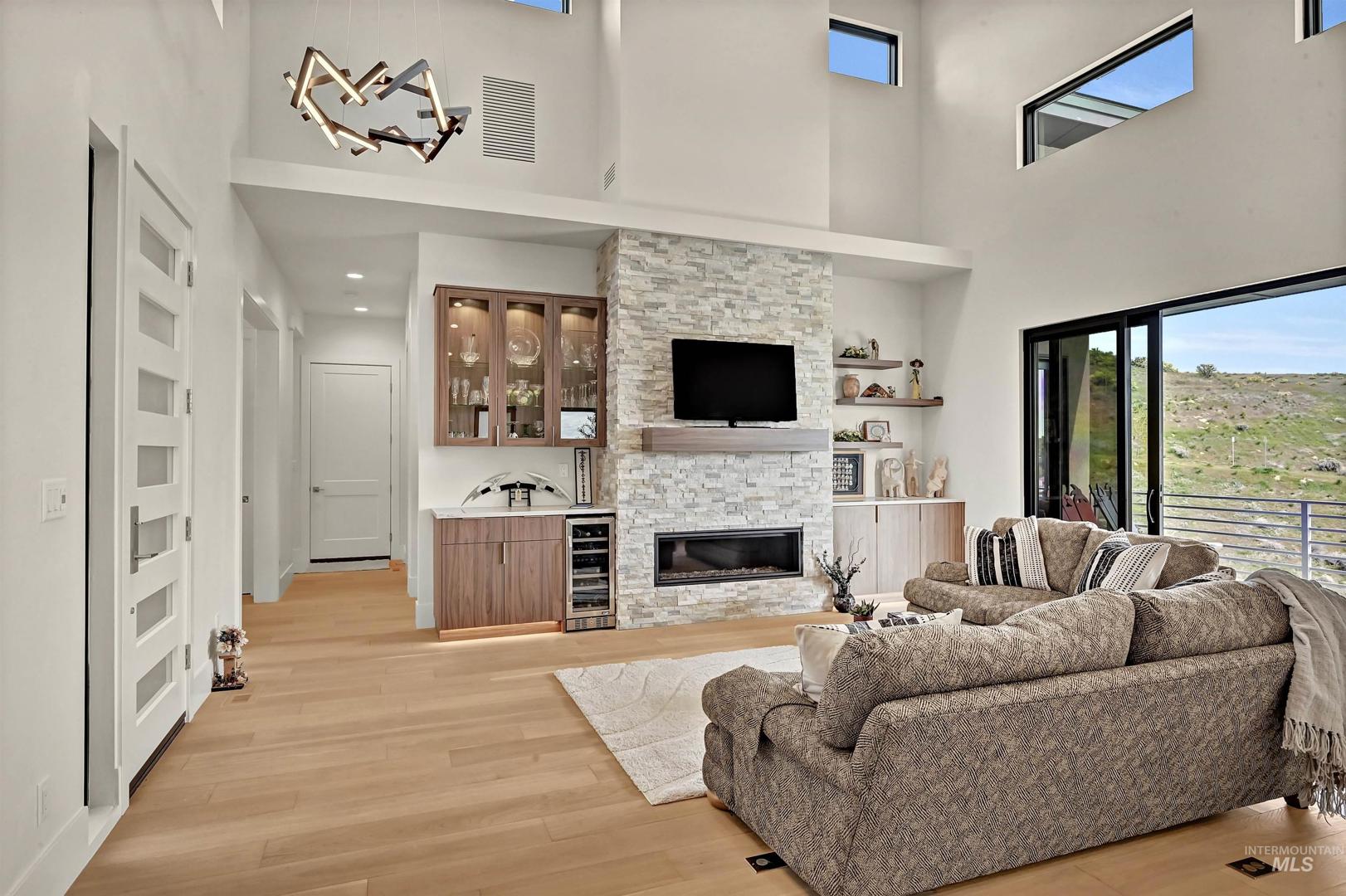 Views for miles! Gaze out at the Owyhee Mountains, the foothills, and a striking skyline from this gorgeous single-level home perched above Crane Creek Golf Course (private membership) where this location offers a rare chance to be moments from downtown, and steps from the foothills trail system. This almost-new Conner Construction build delivers flexibility for executives, downsizers, or as a lock-and-leave second home. A spacious center island anchors the open layout, with vaulted ceilings stretching across the living areas. Savor double ovens, a gas cooktop, custom cabinets, and a versatile pantry roomy enough for storage, prep, and hiding appliances. A cozy office and two secondary bedrooms provide options for guests or flexible use, while the primary suite brings spa vibes with a curbless shower and a California Closet system, & can be customized. You’ll love the separate laundry room, extra-wide 3`x8` interior doors, and 3-car garage—all in a modern package. A gas backup generator offers peace of mind.
