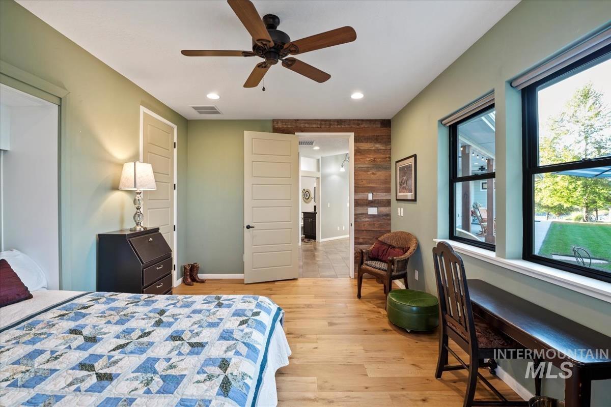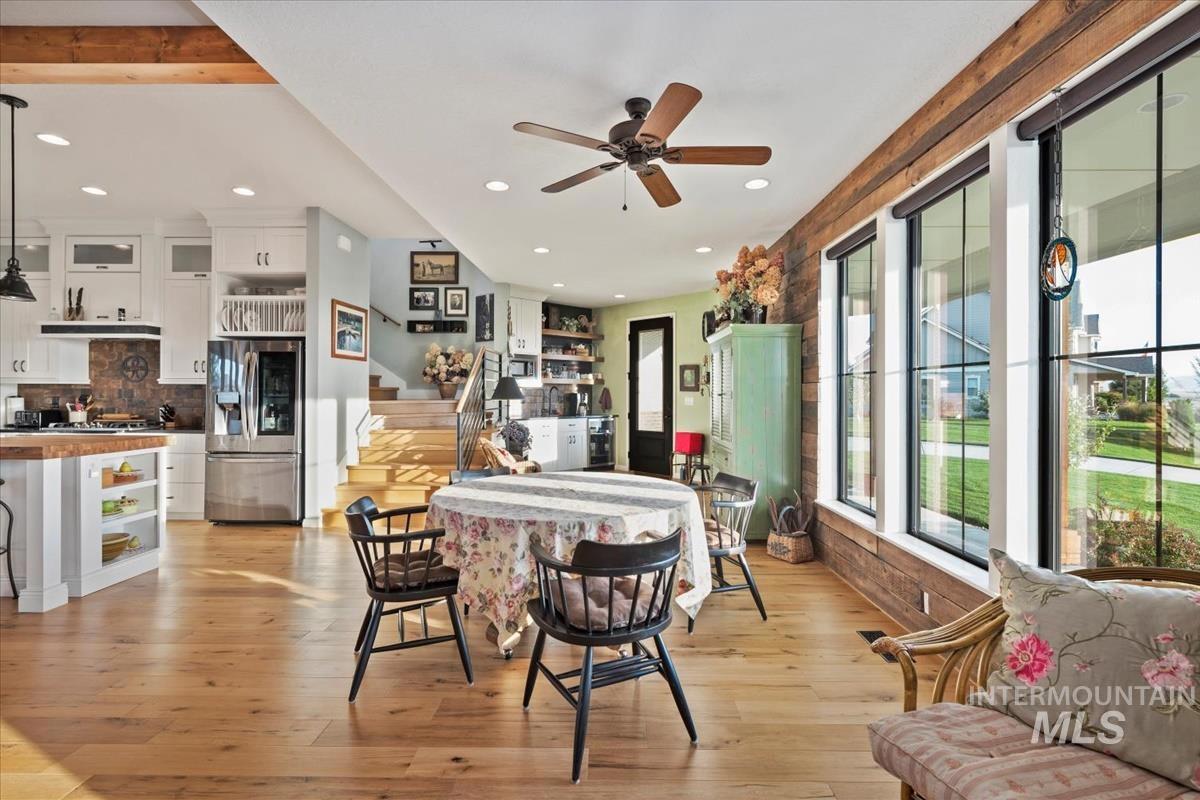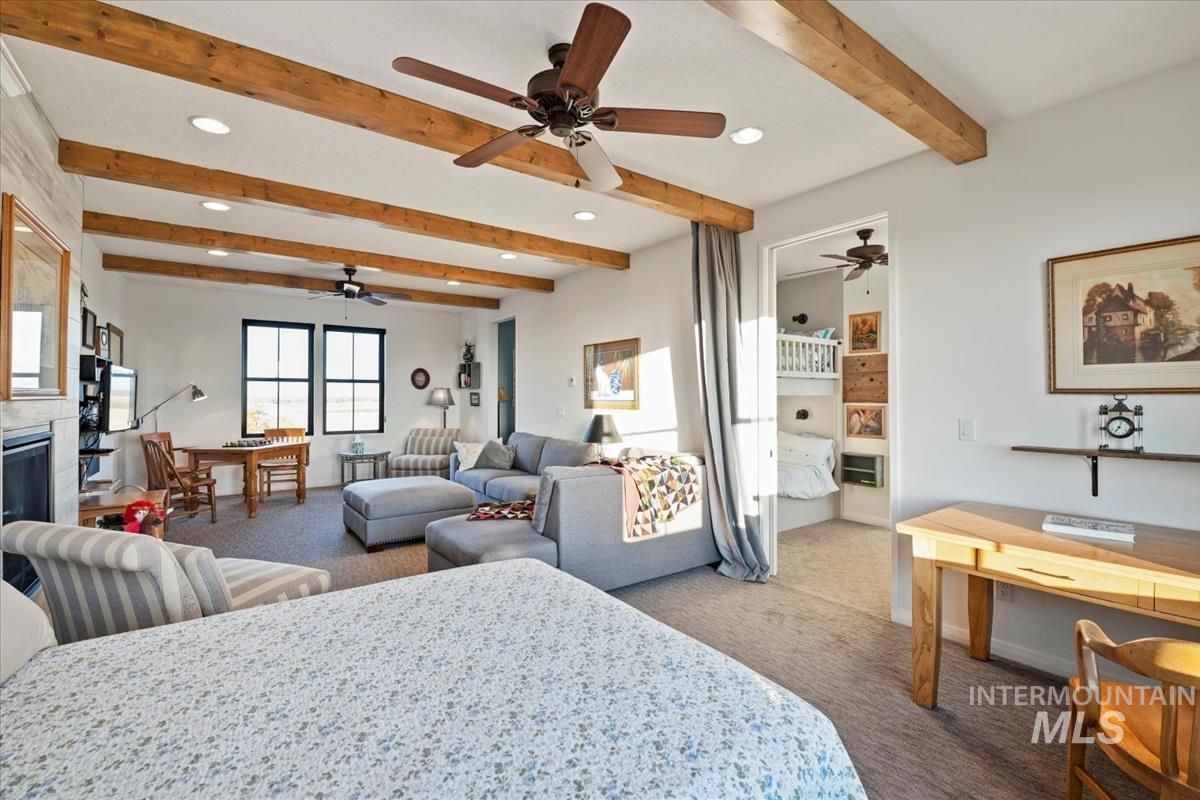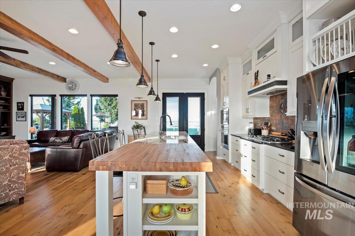 Resort like living on this sprawling 1.37 acre Caldwell estate! Immerse yourself in expansive views of the Snake River valley with some of the best sunsets around. This custom home features a wonderful open concept floorplan with tons of natural light and a beautiful blend of rustic and modern finishes. Entertain family and friends in your gourmet kitchen with an enormous island, gas (propane) cooking, granite, butcher block & soapstone counters and coffee/drink & snack bar. Retreat to your main floor primary suite with a fully tiled shower, luxurious soaking tub, radiant floor heat and valley views. Main floor guest bedroom includes a built in Murphy bed and its own outdoor access. Upstairs features a living area, built in Murphy bed, 4 built in bunk beds and private bath making this the perfect space for guests. Stunning outdoor living with fully covered patio, easy to maintain in-ground pool, hot tub, impeccably maintained mature tress and landscaping make you feel like you`re living on a resort every day. Attached 3 car garage and RV Parking. 2 tankless water heaters, humidifier, attic fan, closed crawlspace with a fan and so much more. Pool & hot tub equipment/chemicals all included. This is a must see to appreciate all this has to offer! **Mortgage savings be available for buyers of this listing.