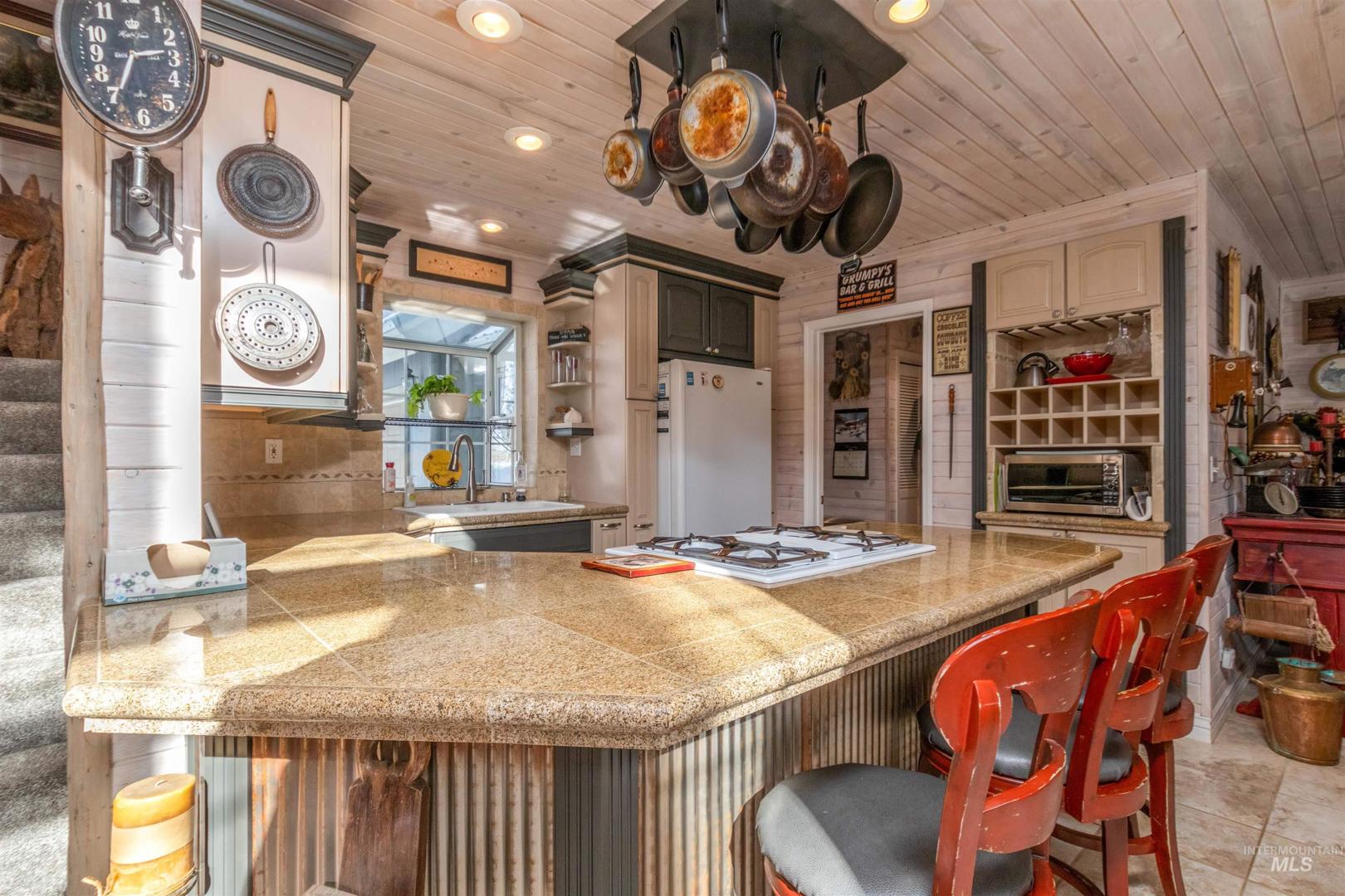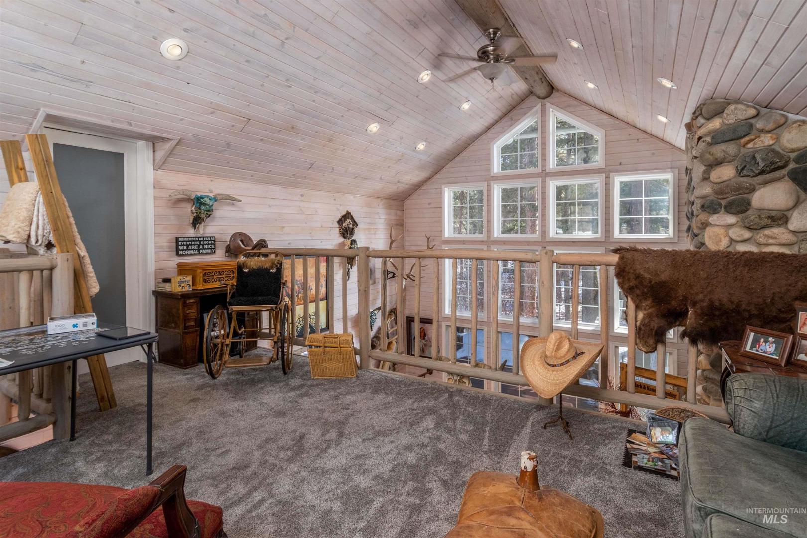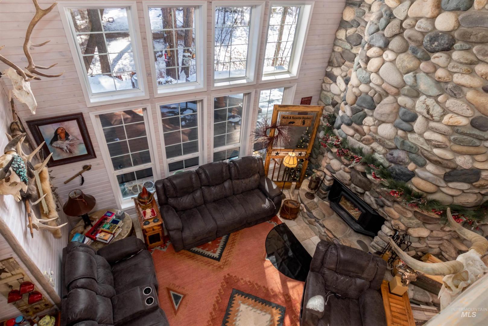 Large Private Home located towards the end of the Road. Just 7 miles to Brundage Ski Resort, and 2 miles to snowmobile & Mountain Bike trails off Last Chance Rd. The back of the home will be your favorite spot to listen to the creek pass by and host the most entertaining company. A new wood burning stove insert was put in and comfortably heats the home in the winter. In addition to a new HVAC to cool the home in the summer. There is a three car garage attached to the home and a one car garage/ detached, plenty of room to store all your outdoor gear. The main bedroom on the first floor has a private bathroom and is across the home from the other two bedrooms downstairs. There is a 2nd main bedroom on the 2nd floor with a private bath and a separate fireplace.