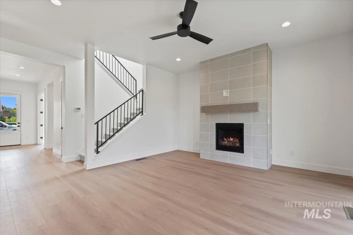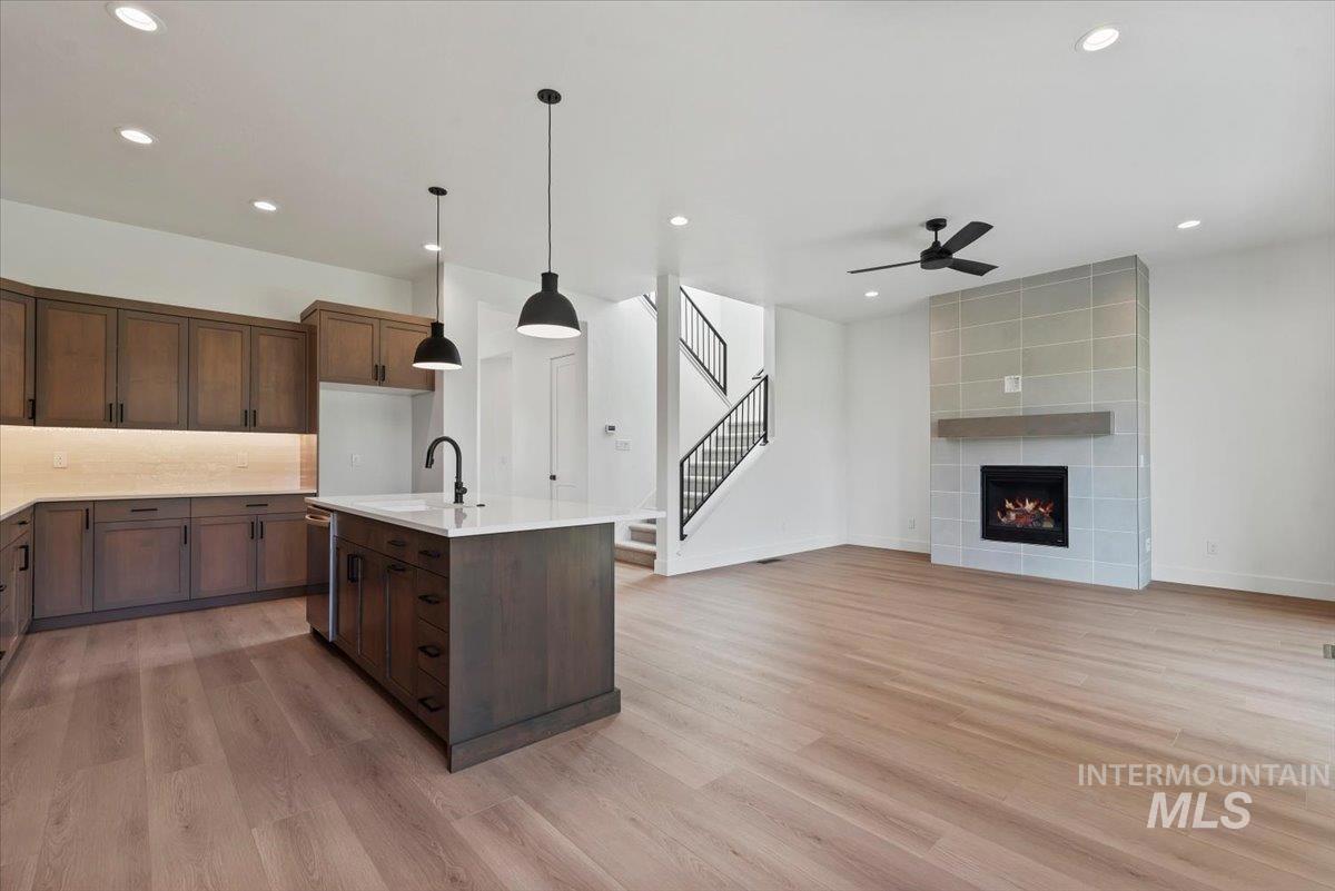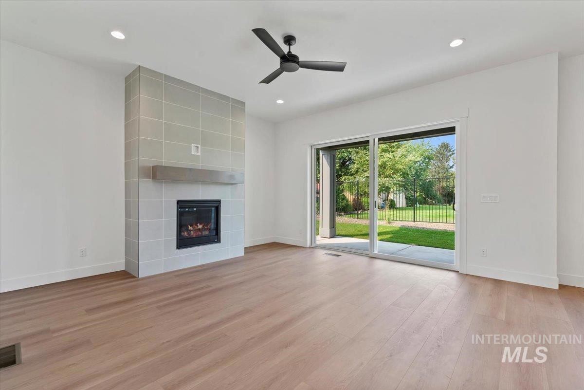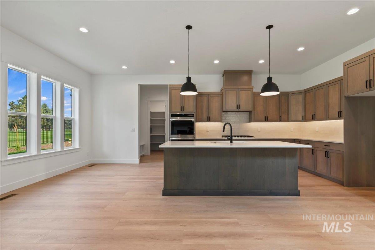 Ask about our Fall interest rate promotions. Don`t miss out on this Golf Course home opportunity. Residence 13 by Sterling Homes is a beautiful 2,306 sq ft 3 bedroom 2.5 bath with a main level office/bedroom is an open concept layout with the feel of a much larger home. The kitchen features a center island with quartz countertop, beautiful wood cabinetry, built-in stainless steel appliances with modern lighting. Oversized sliding glass door opens to a beautiful covered patio right on the 16th green made for enjoying relaxing moments with friends and family. The main suite offers a bath complete with a frameless glass shower, soaker tub, and a dual sink vanity all complete with black hardware. The extra deep 2 car tandem garage provides storage for all your needs. Come out and view this beautiful home on the golf course. We only have a few golf course lots left in Sterling Heights so don`t miss this opportunity. Come visit us today and learn more about Sterling Heights a beautiful premier community adjacent to Eagle Hills Golf Course and view our available homes. Visit our Sales Office located at 2358 E Monhegan Drive, Eagle. Open daily from 10am-6pm.