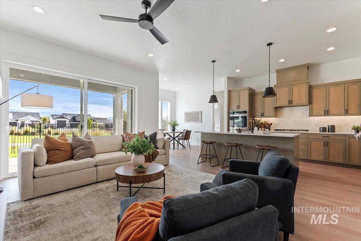 Ask about our Fall interest rate promotions. Ask our onsite Home Advisors for more information. Residence 12 by Sterling homes is a beautiful 2,453 sq. ft 2 story home provides you with a main level office/den. The kitchen features an island topped with quartz, built in stainless steel appliances beautiful wood cabinetry and a walk in pantry. The great room opens to a covered patio for relaxing moments with friends and family while over looking our community green space. The primary suite offers views of the foothills with a bathroom complete with a frameless glass shower, soaker tub, and a dual sink vanity. If you are seeking a home with no rear neighbor, this is the home for you. Come out and view this ready to move in home with all the high-end upgrades you want! Visit us today and learn more about Sterling Heights a beautiful premier community adjacent to Eagle Hills Golf Course and view our available homes. Visit our Sales Office located at 2376 E Monhegan Drive, Eagle - available daily or by appointment between 10am-6pm.