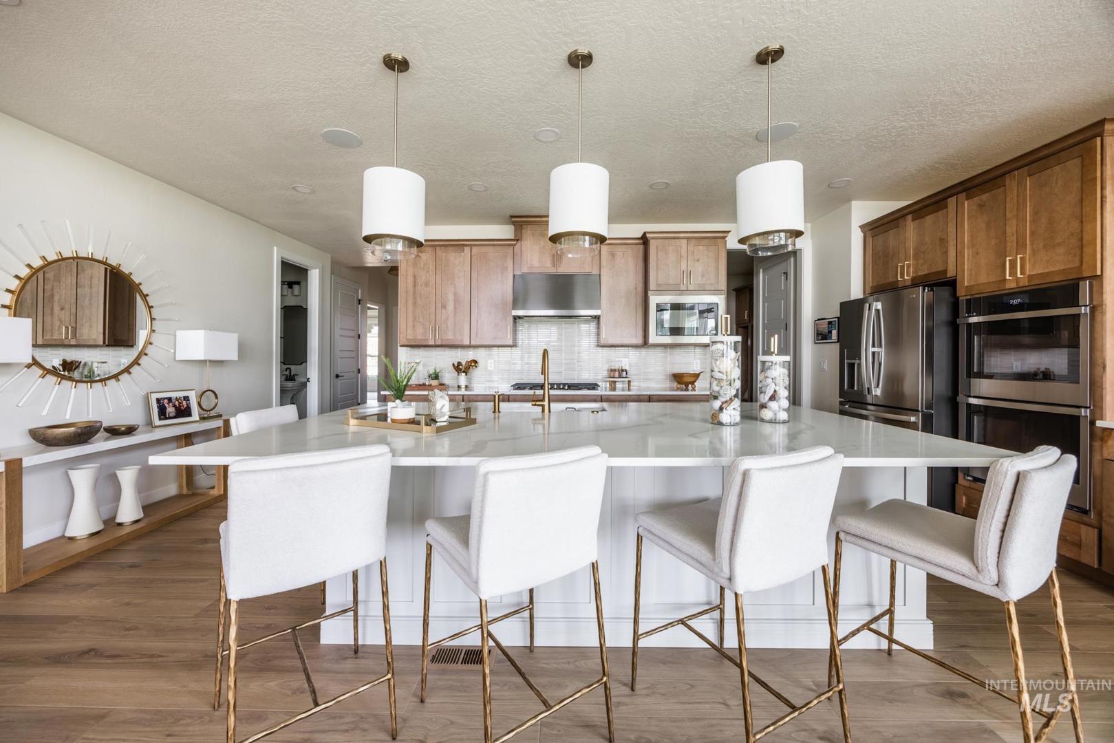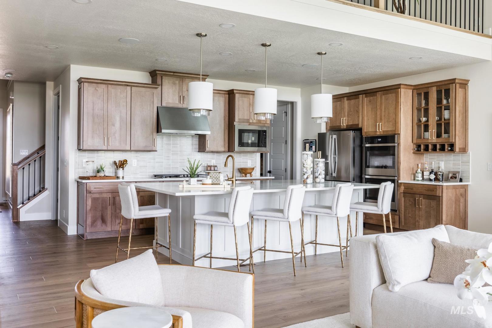 **MODEL LEASEBACK OPPORTUNITY** The Monterey RV by Schell Brothers is our STUNNING MODEL HOME and Sales Center in Terra View. Purchase this home and receive all the furnishings, decor and the premium sound and security by Infinite Technologies INCLUDED in the price. This beautiful 5,000sqft home with a 16`x40` RV Bay garage is 3 stories and features a FULL BASEMENT. Over 1800sqft of downstairs living includes a HUGE rec room, bedroom and full bath, a fully functioning HOME THEATRE, ping pong table, a WET BAR with TV, sink, fridge and ice maker. The main floor features a SUNROOM and vaulted great room, allowing TONS of natural light to fill the home. The main floor features the primary bedroom, one additional bedroom, 2.5 bathrooms, and home office. Upstairs you`ll find an open loft, and bedroom with full bath. All this PLUS 500sqft of unfinished STORAGE space! Step out back to the spacious paver patio courtyard featuring a built in gas grill, covered space and firepit. We have crafted this model home to be warm and inviting, to have exquisite finishes, and maximum everyday functionality. Contact Alyssa to discuss the leaseback terms or to arrange a private showing. This home is open every Thursday- Monday from 12pm-5pm, come see it for yourself.