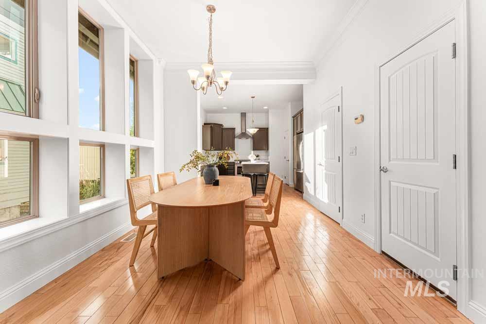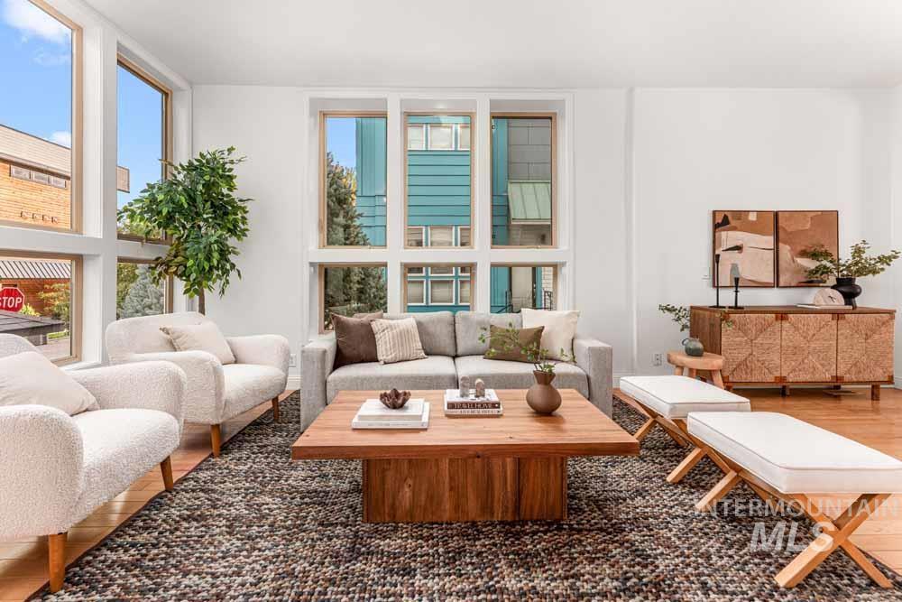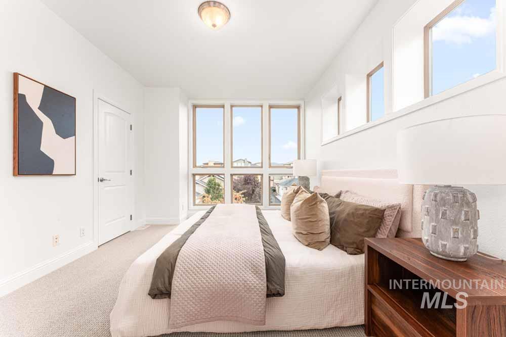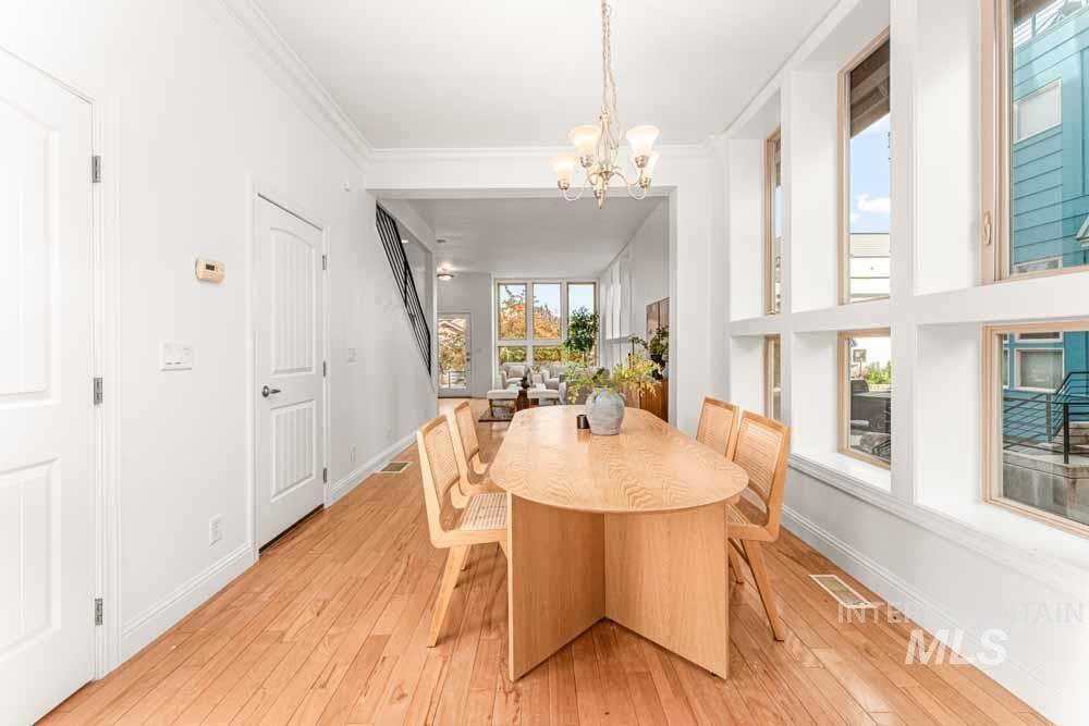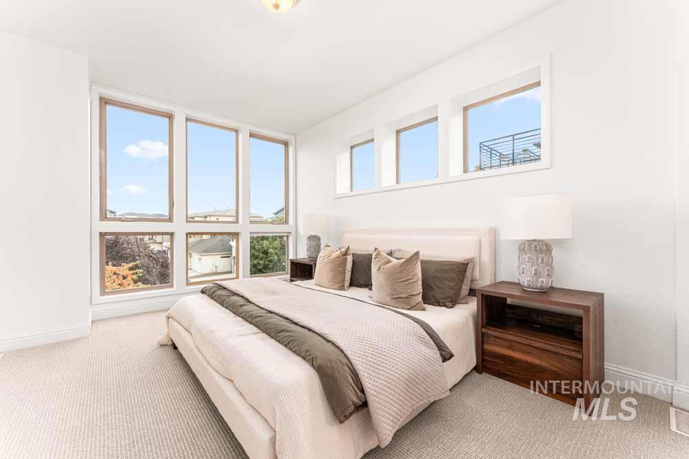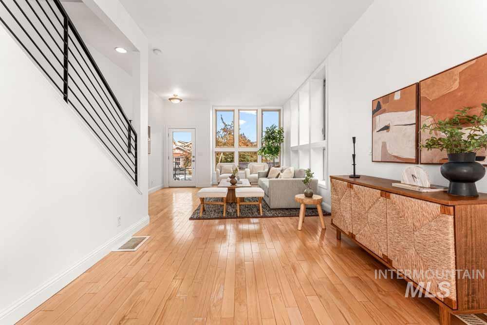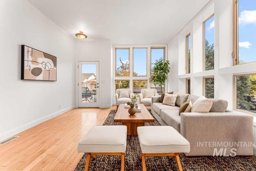 Welcome to your stunning riverfront retreat, just steps from the Boise River. From the rooftop deck, take in breathtaking views of Downtown Boise, or unwind by the private community pool and clubhouse overlooking the water. Enjoy direct access to the Boise Greenbelt, a nearby kayak and surf park, and an array of local dining options. This rare end-unit townhome features soaring ceilings, expansive floor-to-ceiling windows, abundant natural light, and hardwood floors throughout. The chef’s kitchen is equipped with stainless steel appliances, quartz countertops, a prep island, and a spacious pantry. The primary suite includes dual vanities, a spa-like bath, and an oversized closet. Blending luxury with convenience, this low-maintenance, lock-and-leave home offers the very best of Boise riverfront living.