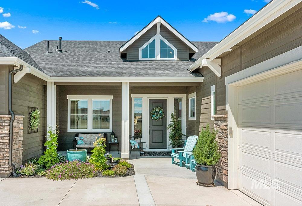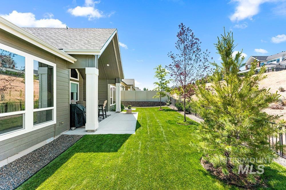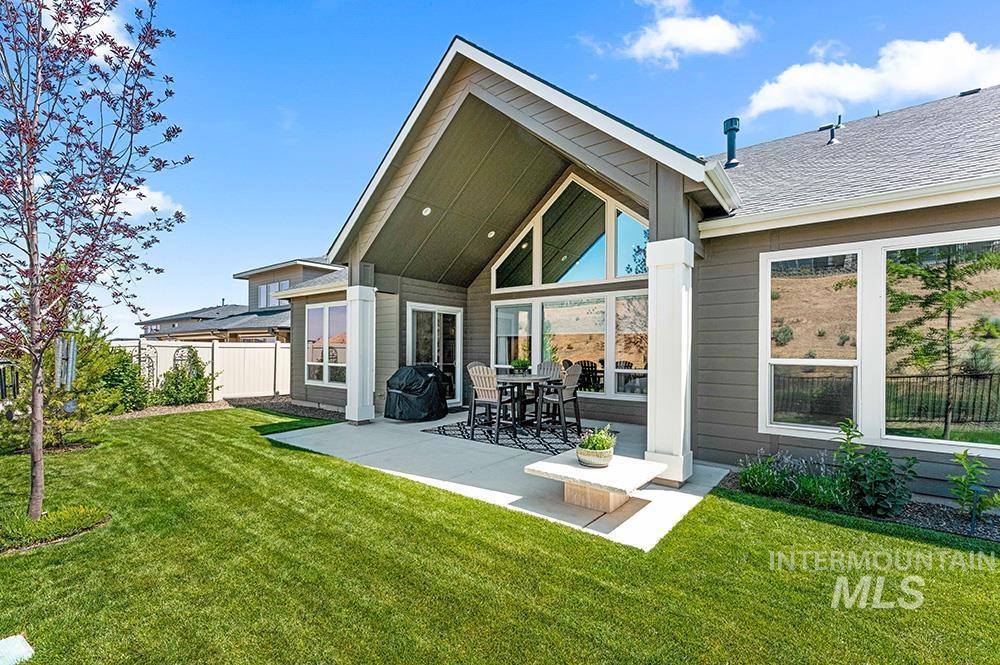 A stunning & stylish single-level home in sought-after Sky Mesa! This luxury community features infinity-edge pools, outdoor sport courts, neighborhood parks & playgrounds, and miles of paths – all easily accessible just moments from the front door. Built in 2023 with superior craftsmanship and high-quality finishes, this is your opportunity to own a new home without experiencing the arduous building process. Vaulted ceilings extend from entry to great room – where the gourmet kitchen’s Bosch appliance suite inspires culinary creativity. Sliding glass doors invite you out to a large covered patio – enjoy mature landscaping illuminated by extensive outdoor lighting, open the back gate to step onto a meandering neighborhood trail. Experience the best of Meridian living in Sky Mesa, a community built for comfort, connection, & an active lifestyle with unbeatable access to parks, shopping, top schools, outdoor adventure, & the I-84 corridor for a quick commute to wherever you need to be in the Treasure Valley.
